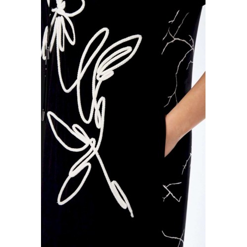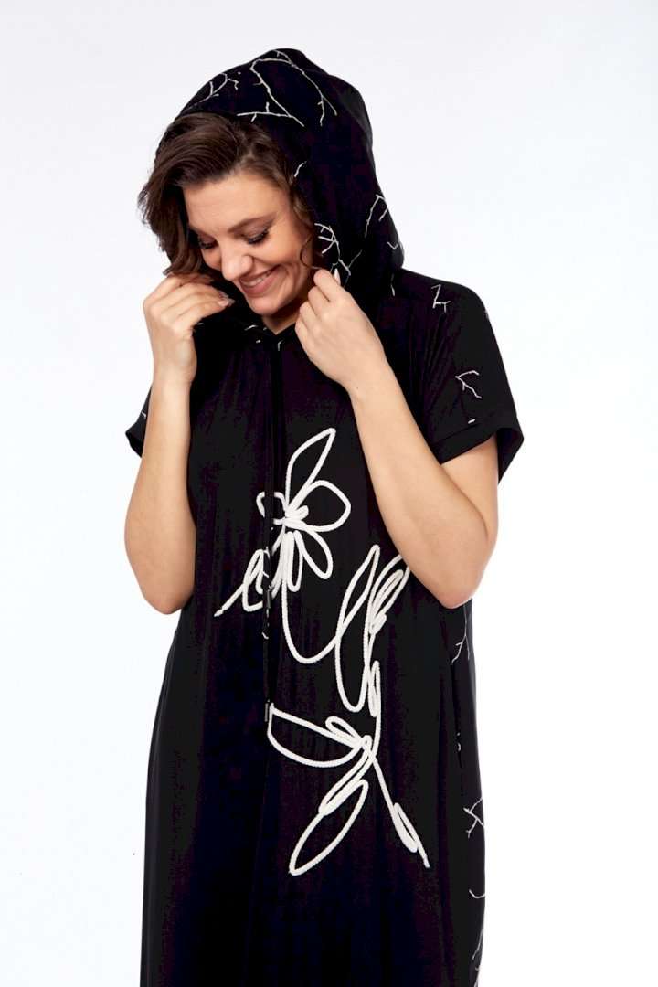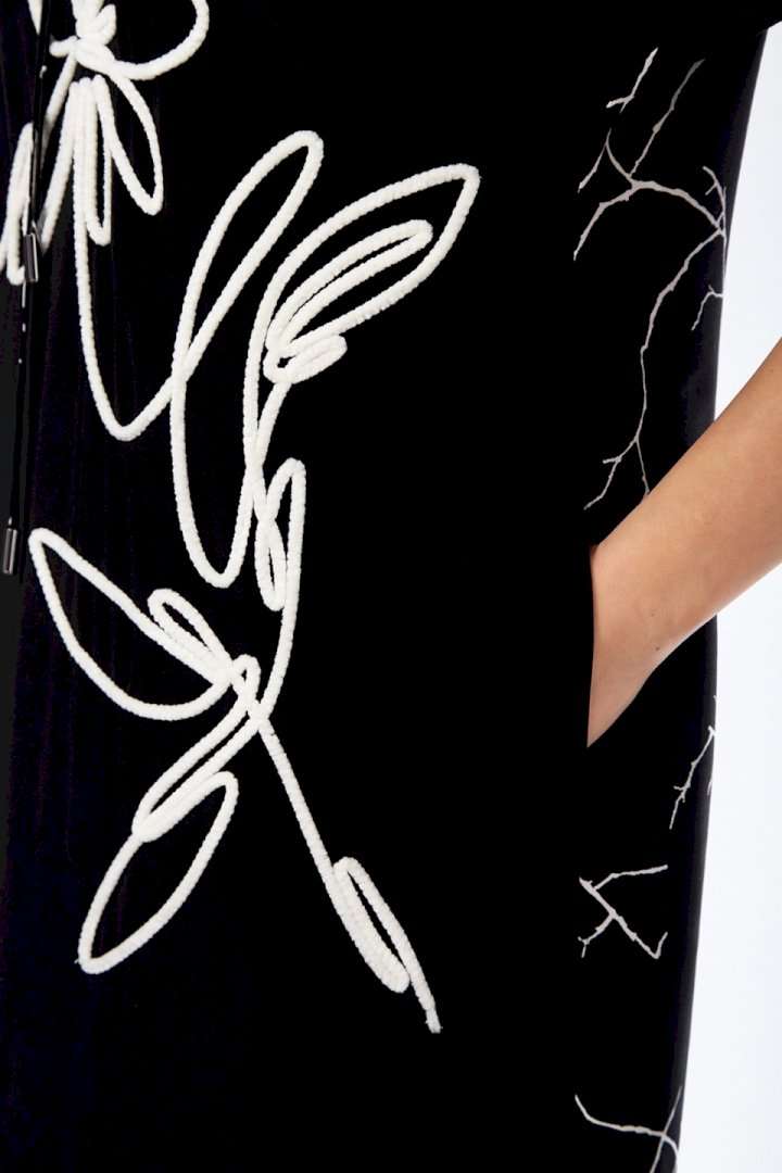 Платье 3514 Jurimex из коллекции бренда Jurimex — это стильное и удобное решение для повседневного гардероба. Созданное из вискозного трикотажа и принтованной вискозной ткани, платье обеспечивает комфорт и легкость движения. Прямой силуэт и длина платья в 128 см позволяют подчеркнуть утонченный вкус, а капюшон добавляет оригинальность образу. Декоративные элементы, такие как дизайнерская вышивка и боковые карманы с разрезами, делают это платье уникальным. Черный цвет изделия сочетается с яркими аксессуарами, что делает его идеальным для весенних и летних прогулок. Платье подходит как для повседневной носки, так и для вечерних выходов.