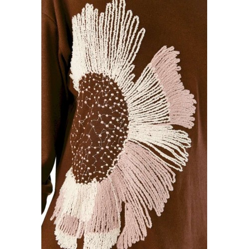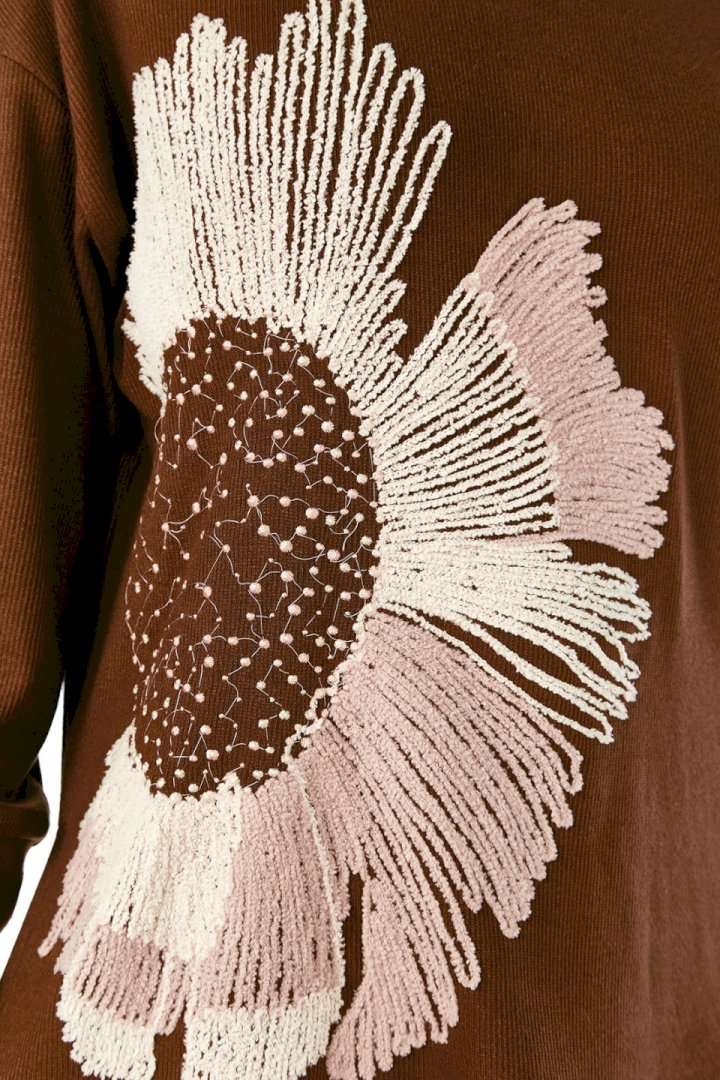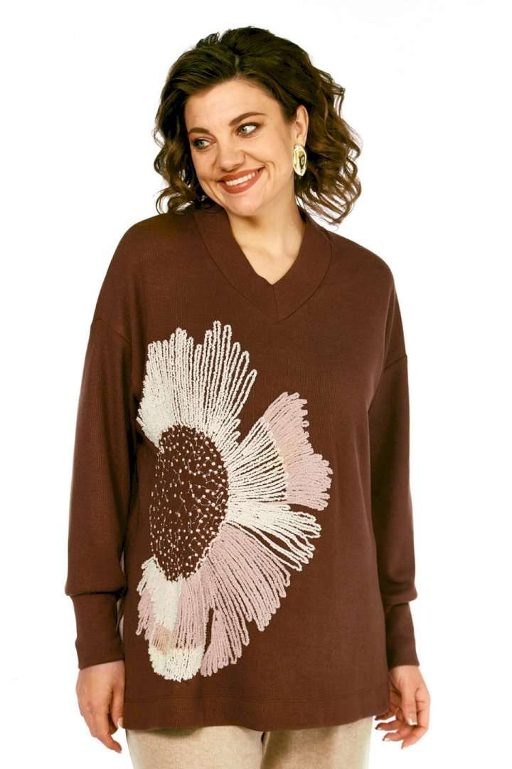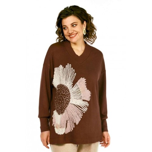 Джемпер свободного кроя, изготовлен из трикотажного полотна. Горловина V-образной формы. На полочке-вышивка. Спинка цельнокроенная. Рукава спущенные, с манжетами по низу. В боковых швах-разрезы. Обращаем Ваше внимание, что цвет на экране может отличаться от реального.