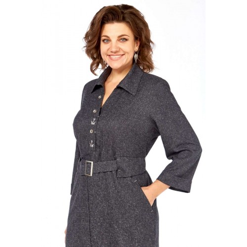 Платье женское прямого силуэта, изготовлено из плательной ткани. По переду нагрудные вытачки и фигурные подрезы с карманами в швах. Горловина оформлена планками с декоративной вышивкой и пуговицами, воротник стояче-отложной. На талии декоративные шлевки и съемный пояс с пряжкой. По спинке кокетка и средний шов. В боковых швах внизу обработаны шлицы декорированы пуговицами. Обращаем Ваше внимание, что цвет на экране может отличаться от реального. Подробное описание Длина платья по спинке — 110 см, длина рукава — 49 см. р.54 — ПОГ 58 см ПОБ 62 см, р.56 — ПОГ 60 см ПОБ 64 см, р.58 — ПОГ 62 см ПОБ 66 см.