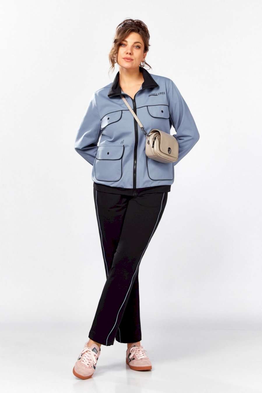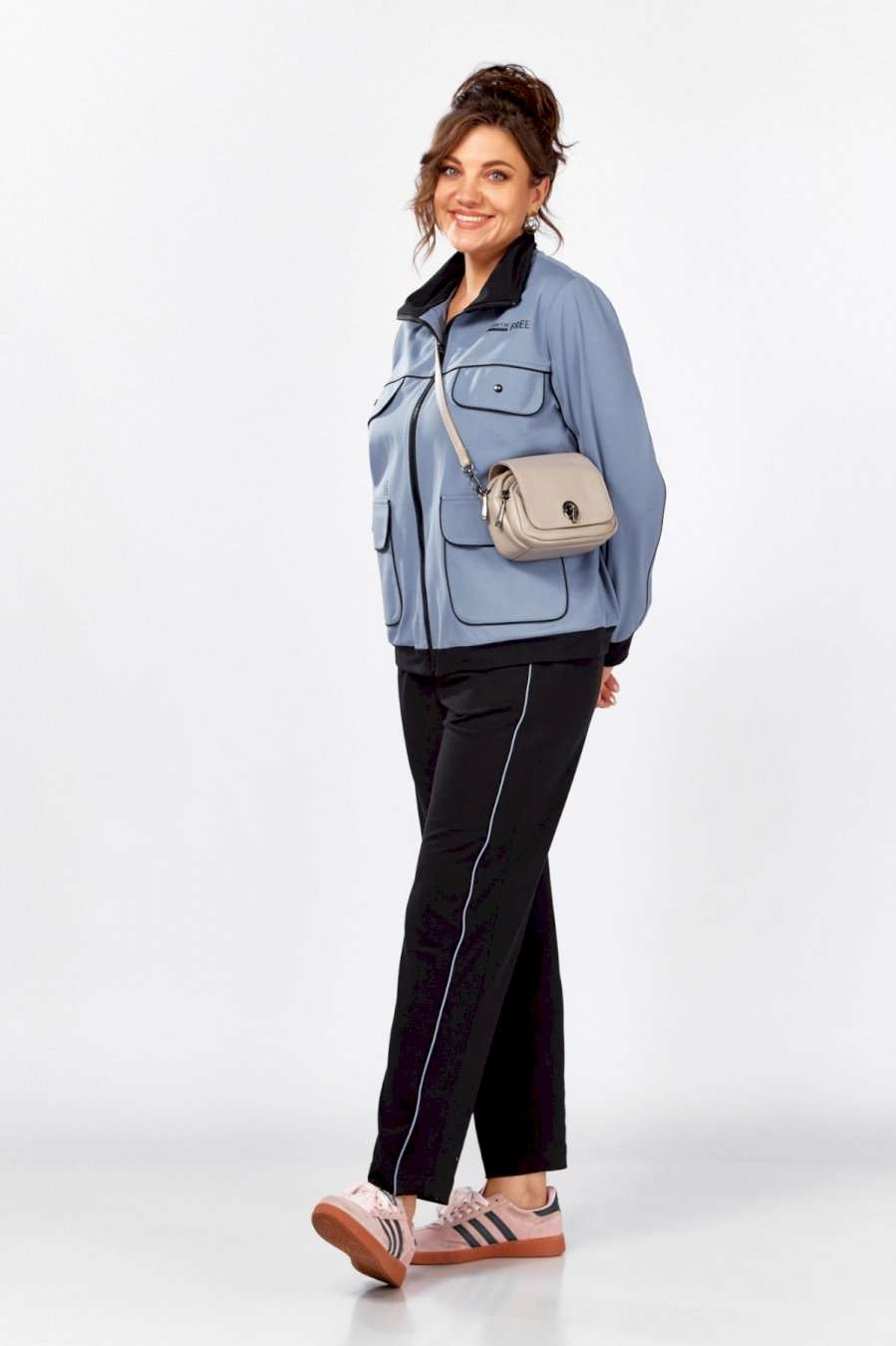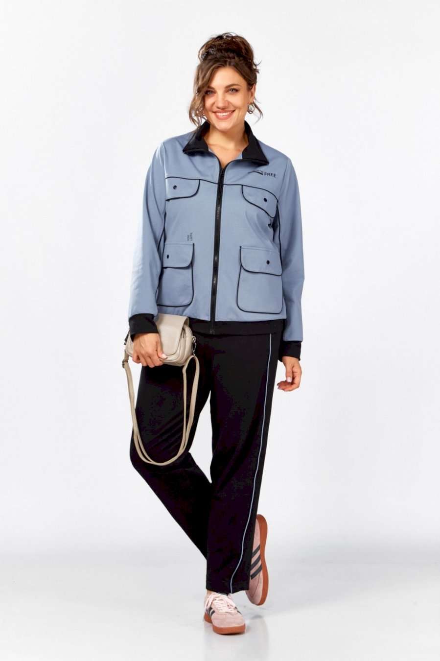 Стильный, удобный, трикотажный, спортивный костюм для активной повседневной жизни, в котором сочетаются модный дизайн и комфорт. Джемпер свободного силуэта на молнии, воротник отложная стойка. Накладные карманы, клапаны, кокетка и рукава декорированы отделаны контрастным черным кантом, в цвет брюк. Брюки на резинке с боковыми карманами и подрезами с декоративным кантом. Костюм отлично садится и скрывает недостатки фигуры из-за хорошо продуманных конструктивных линий и пропорций.