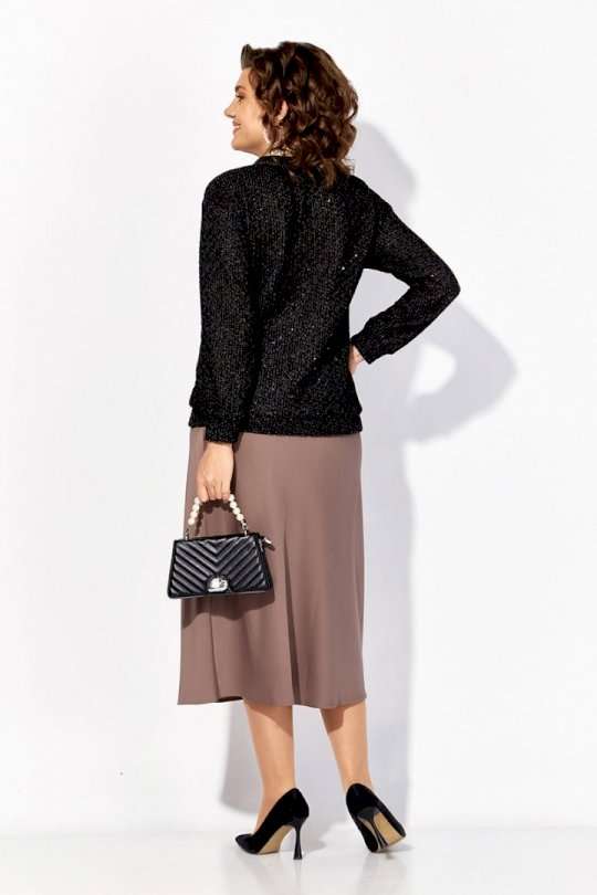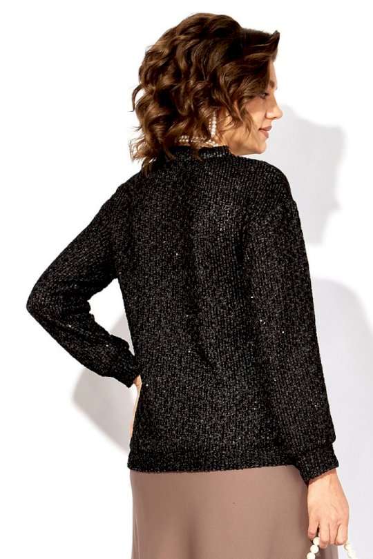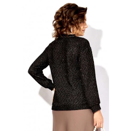 Вязанный жемчужно-лиловый джемпер с ажуром по вороту - это идеальный вариант для создания стильного и привлекательного романтического образа! Мягкий и нежный материал этого джемпера делает его очень приятным на ощупь, теплым и уютным, а легкое мерцание придает свою изюминку. Горловина v-образной формы приковывает взгляды к линии декольте. Рукав длинный, на спущенной линии плеча. Низ рукава, а также низ изделия оформлен мягкой трикотажной манжетой. Особенно актуальна данная кофточка на осенний и зимний период, за счет качественного состава, не пропускает холод обеспечивает тепло и комфорт! Длина по спинке – 65 см, рукав – 62 см.