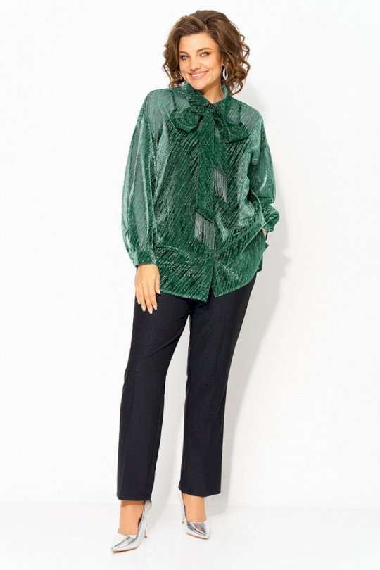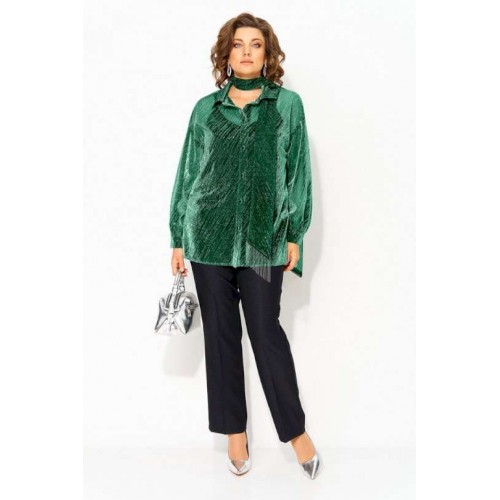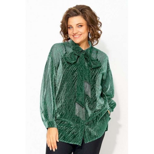 Трендовая блузка из легкой сетчатой ткани c эффектом мерцания станет стильным дополнением вашего гардероба. Ее можно комбинировать с различными элементами гардероба, накинуть поверх платья или топа. Модель выполнена с воротником-стойкой, который добавляет элегантности образу. Застежка центральная на петли и пуговицы. По бокам расположены разрезы. Свободный крой обеспечивает комфорт и подчеркивает женственность. Длинный рукав с манжетами делает ее универсальной для любого сезона, а удлиненный силуэт добавляет изысканности. В комплект входит съёмный пояс с декоративной бахромой, который может служить в виде шарфика и добавить элегантность образу. Изделие идеально подходит для повседневного ношения, офиса или вечернего выхода. Отлично сочетается с базовыми браками из коллекции от бренда «Лилиана». Длина по спинке – 70 см, рукав – 63 см.