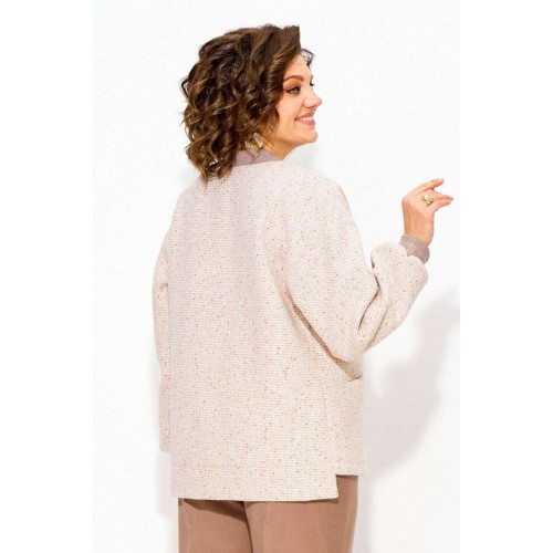 Женский твидовый жакет, по типу бомбера – стильная женская одежда на каждый день, которая станет отличным дополнением повседневного гардероба. Модель свободного силуэта, со спущенной линией плеча. Рукав длинный, с притачными манжетами по низу. Застежка центральная, на металлическую тесьму-молнию. Горловина обработана трикотажной планкой по типу – бомбера. Низ по полочке фигурный, по спинке удлинен. По полочке расположены рабочие карманы в шве! Свободная оверсайз модель подходит практически под любую фигуру. Модель на шёлковой подкладке!