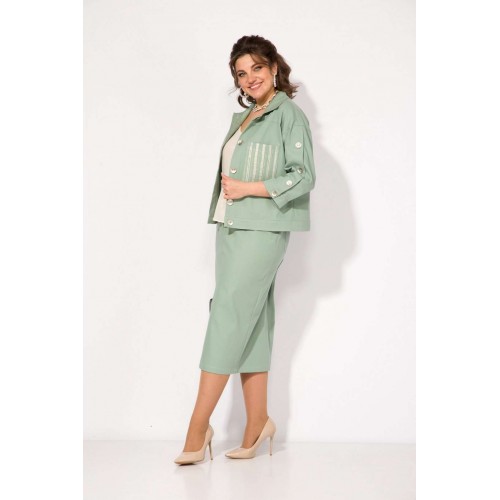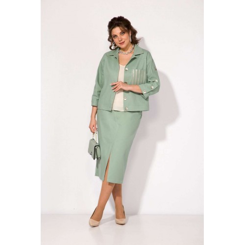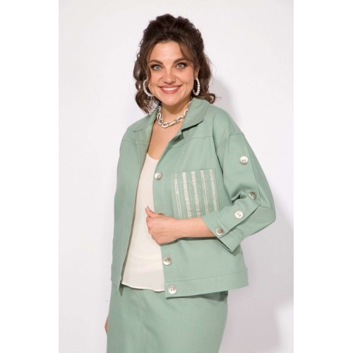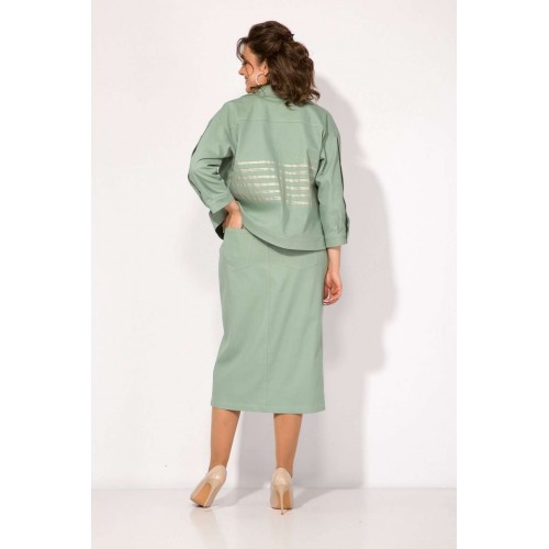 Представляем Вам стильный женский костюм из хлопкового денима (Джинс), состоящий из зауженной юбки и свободного жакета! Жакет свободного силуэта, выполнен их хлопка под Джинс. Воротник отложной; застежка центральная на петли и пуговицы. Рукав со спущенным плечевым поясом, длиной ¾-ти на притачной манжете. По центру рукава расположена декоративная застежка на петли и пуговицы. Перед с кокеткой, с ассиметричным накладным карманом. Спинка повторяет дизайн полочки. По спинке расположена ассиметричная печать в виде полоски! В комплекте юбка-карандаш зауженная к низу, длиной за колено. Модель с пикантным разрезом по переду. Застежка на металлическую молнию с обработанным гульфиком. Пояс притачной, в боковых участках вставлена резинка. По спинке расположены накладные карманы. Юбка без подкладки выполнена из джинсовой ткани. Модель подойдет для любой женщины в любом возрасте и размере. Длина жакета 60 см. Длина рукава 50 см. Длина юбки 80 см.