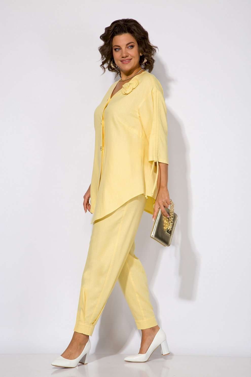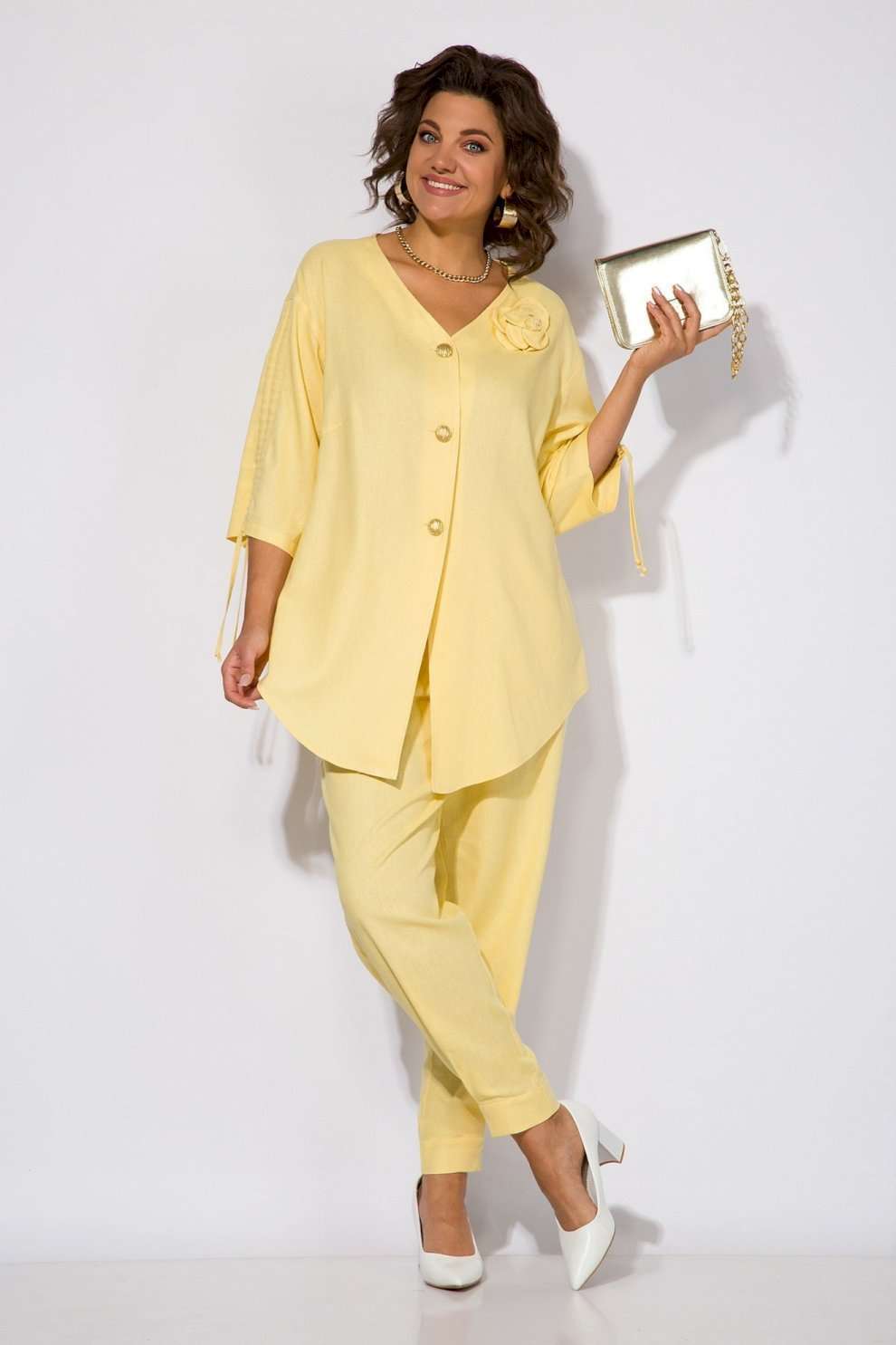 Костюм брючный 1450н яблоко Liliana-style. Этот эффектный летний комплект создан для жаркой погоды из натурального льна с добавлением вискозы, обеспечивающих комфорт и легкость. Блузка свободного силуэта с V-образной горловиной и центральной застежкой на пуговицы. Интересная деталь — кулиска с утяжкой на рукавах длиной 3/4. Спинка дополнена изящной шлицей с декоративными клапанами. Брюки с завышенной посадкой оснащены круговой резинкой и рабочими карманами, а складки нанизу добавляют стильный акцент. Коллекция бренда Liliana-style воплощает сочетание стиля и функциональности. Идеальный выбор для летних променада и особых событий. Длина по спинке — 80 см, рукав — 40 см, брюки — 96-98 см. Приятный яблочный цвет добавит свежести вашему гардеробу.