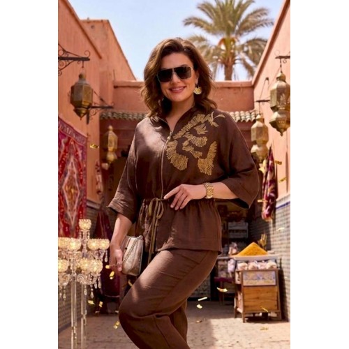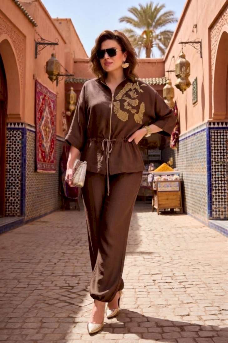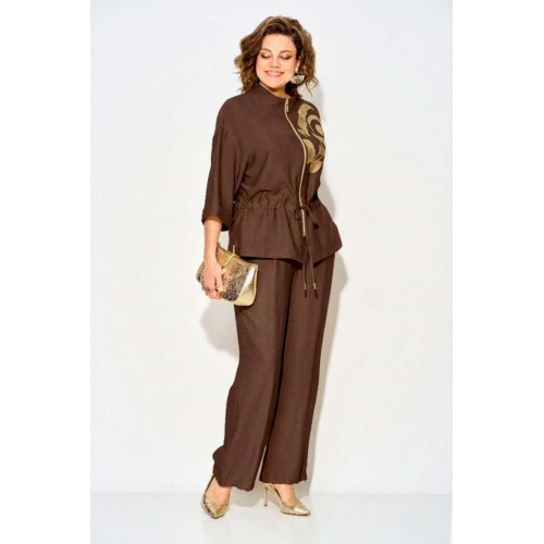 Костюм брючный 1527 светло-лимонный Liliana-style от бренда «ЛИЛИАНА» — это универсальное решение для весенне-летнего сезона. Коллекция бренда предлагает идеальный баланс между стилем и комфортом. Выполненный из мягкой вискозы, он обеспечивает комфорт и позволяет коже дышать, что особенно важно в теплое время года. Модель имеет оверсайз покрой, центральную застежку на металлическую молнию и кулиску по талии для индивидуальной посадки. Длина блузона составляет 65 см, а рукав в три четверти — примерно 45 см. Брюки с боковыми карманами средней посадки, длина которых варьируется от 104 до 106 см. Благодаря утяжке по низу брюки трансформируются в модные «султанки». Абстрактный золотистый принт завершает образ. Цвет костюма — светло-лимонный, что делает его подходящим для прогулок и встреч с друзьями.