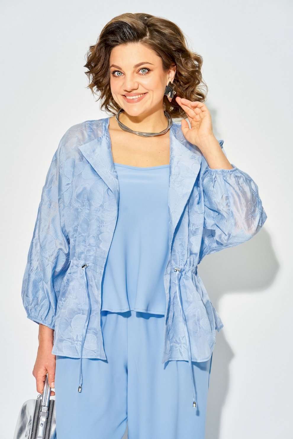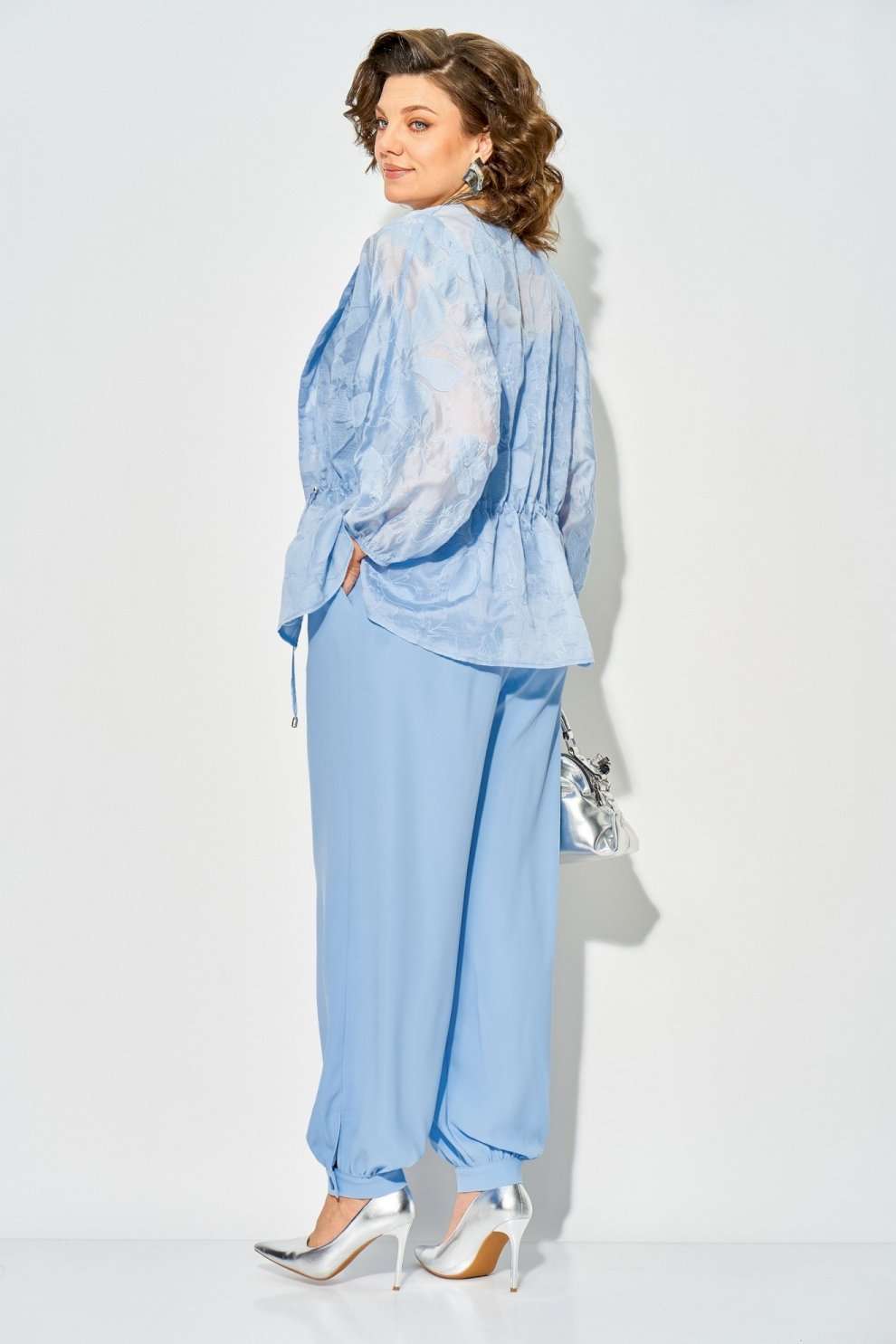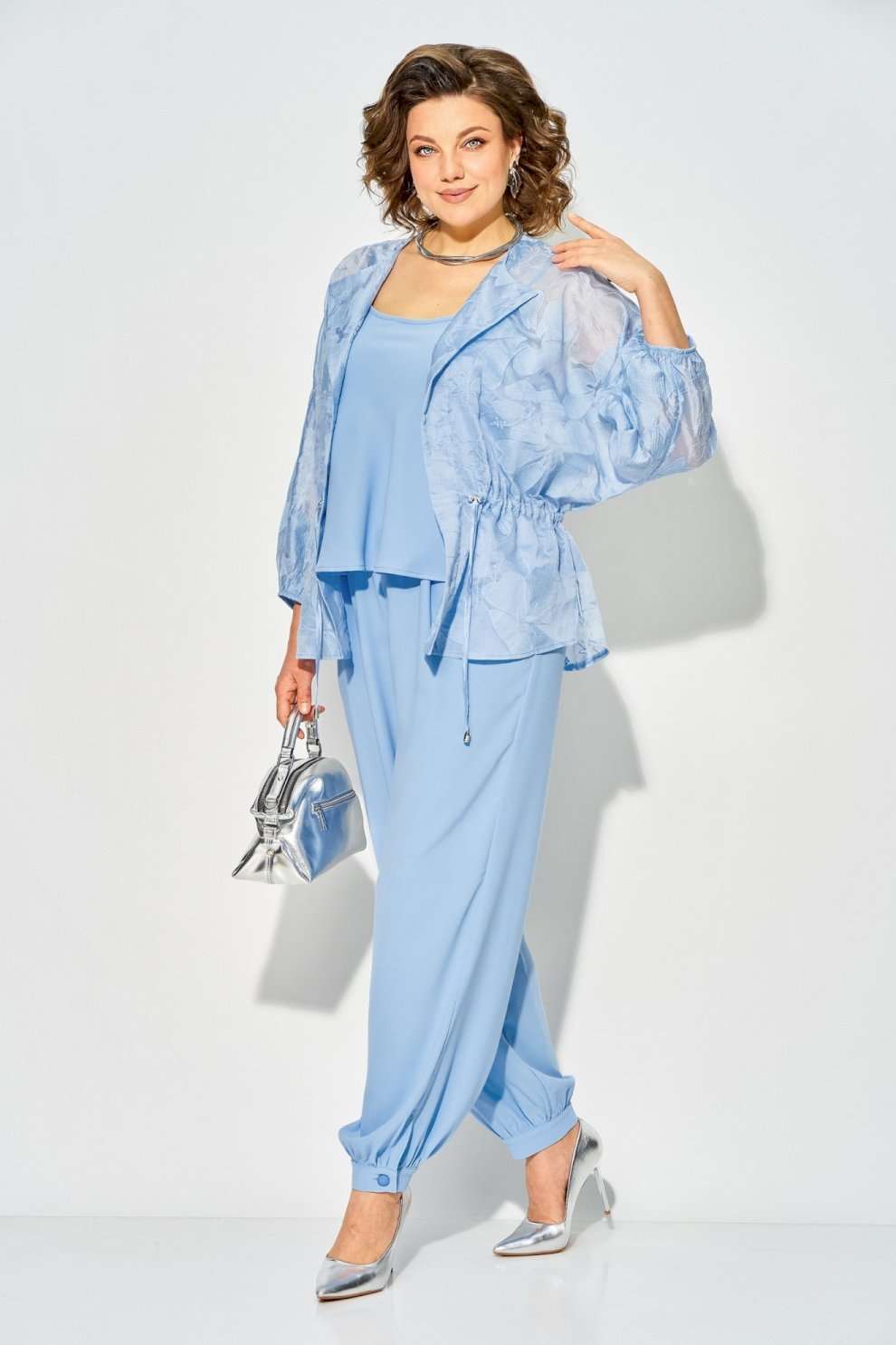 Костюм брючный 1535 экрю Liliana-style — идеальный выбор для стильных мероприятий. Коллекция бренда Liliana-style предлагает нарядный брючный костюм, состоящий из трёх элементов: брюк «султанок», топа на регулируемых бретелях и лёгкого блузона-накидки из батиста с хлопковой вышивкой. Блузон имеет свободный силуэт и ¾ длину рукава на резинке, а регулируемая кулиса подчёркивает талию. Брюки с завышенной посадкой и разрезами в боковых швах дополняются манжетами с пуговицей. Лёгкий и воздушный костюм, выполненный в нежном экрю цвете, подойдёт для весенне-летнего сезона и торжественных событий. Длина блузона — 70 см, длина рукава — около 50 см, брюки — 100-102 см, топ — около 55 см.