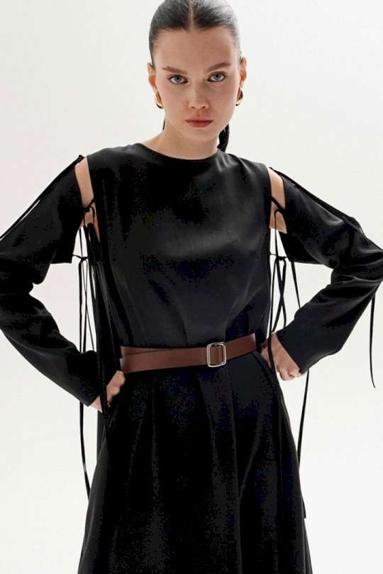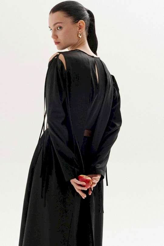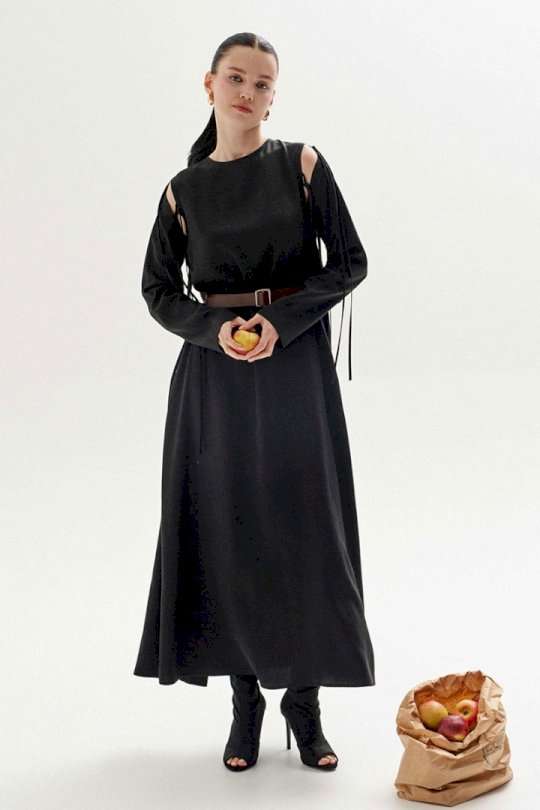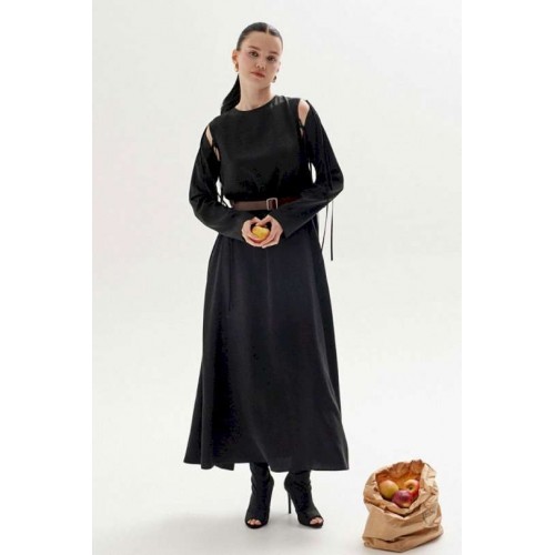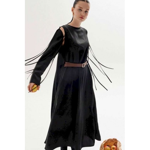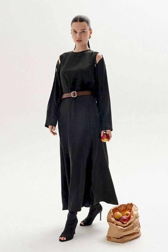 Платье в стиле \"Бохо\", свободного кроя А- силуэта из легкой, струящейся вискозы. Округлый вырез горловины, вытачки из проймы, в боковых швах карманы. Рукав длинный, съёмный, к изделию привязывается тесемками, которые вставлены в пройму и в рукав. По спинке средний шов, переходящий в застёжку на навесную петлю/пуговицу, и накладные отлетные детали, не доходящие до центра. В комплектацию входит съёмный пояс из экокожи. Платье можно носить как с поясом, так и без него. Длина платья по спинке 128 см. Длина рукава 60 см. ОГ: 108-112-116-120 см (размер 44-46-48-50) ОТ: 116-120-124-128 см (размер 44-46-48-50) ОБ: 138-142-146-150 см (размер 44-46-48-50)
