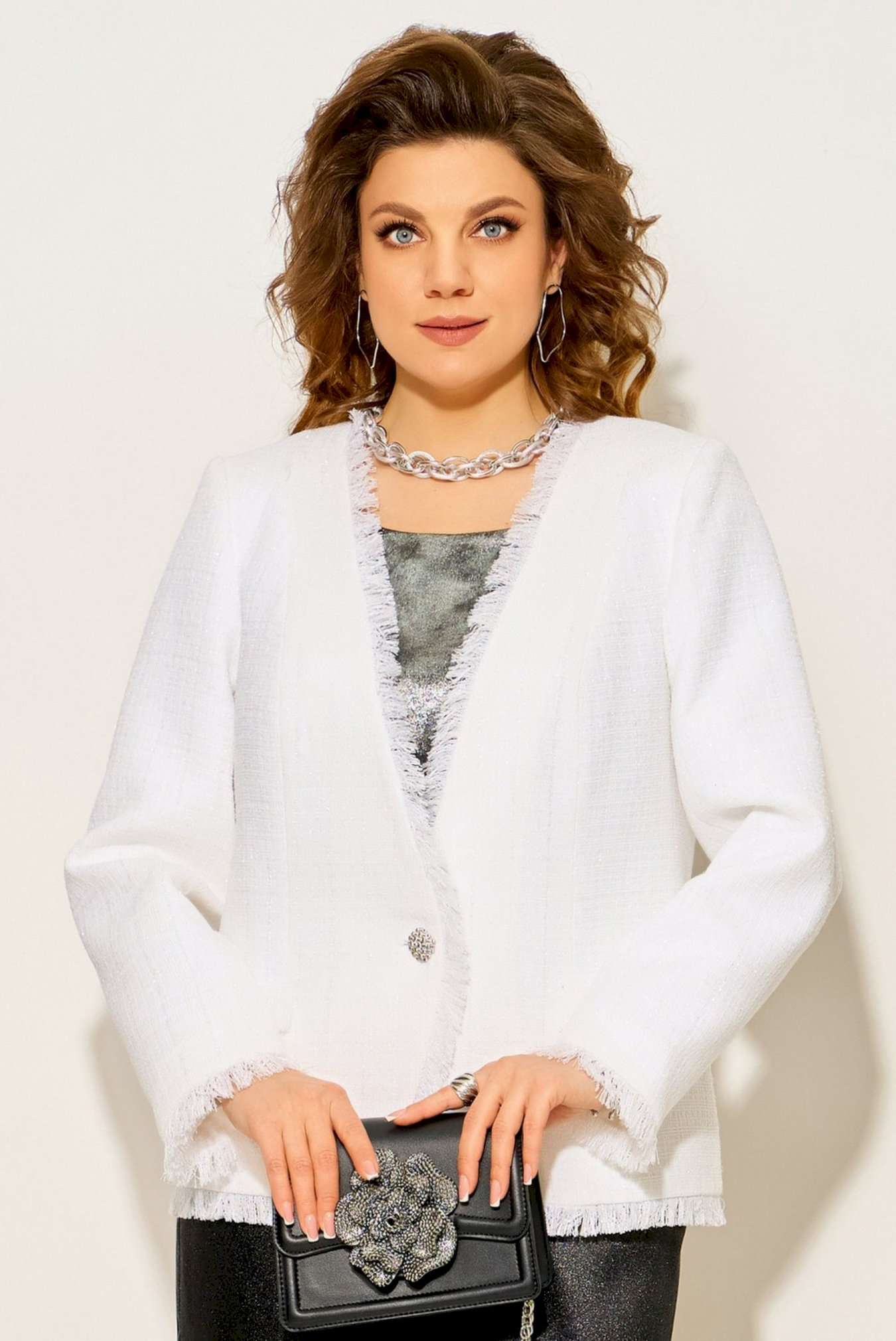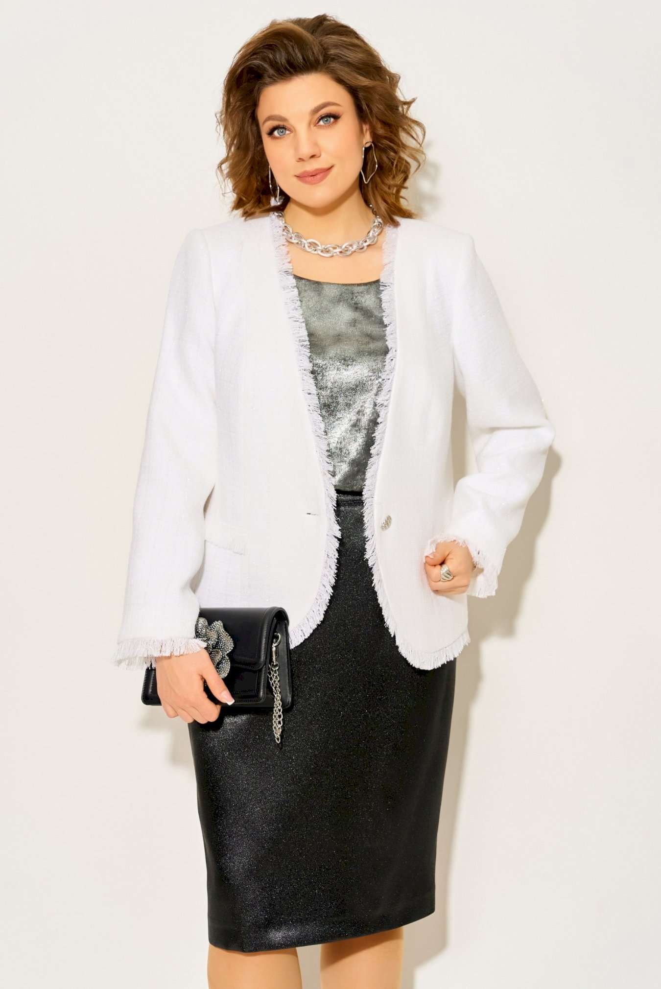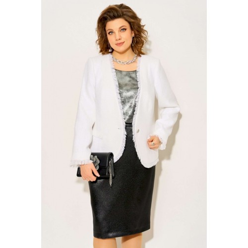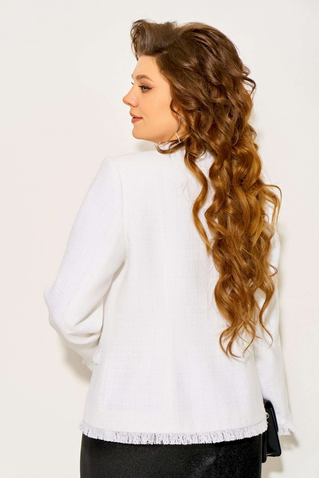 Нарядный жакет ""Яника"" — твидовая классика с изюминкой. Элегантный жакет полуприлегающего силуэта выполнен из твидовой ткани с флоковой нитью, жакет на подкладке. Однобортная застёжка на пуговицу, рельефные линии по полочке и спинке подчёркивают фигуру. Декоративная трепка по краю борта, низу изделия и рукавам добавляет фактурности и оригинальности. Карман-обманка в виде настроченной трепки — стильный акцент, придающий образу индивидуальность. Идеален для деловых встреч, торжественных мероприятий и стильных повседневных образов.
