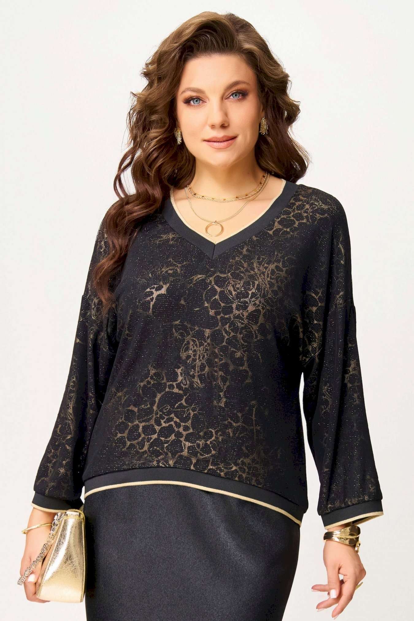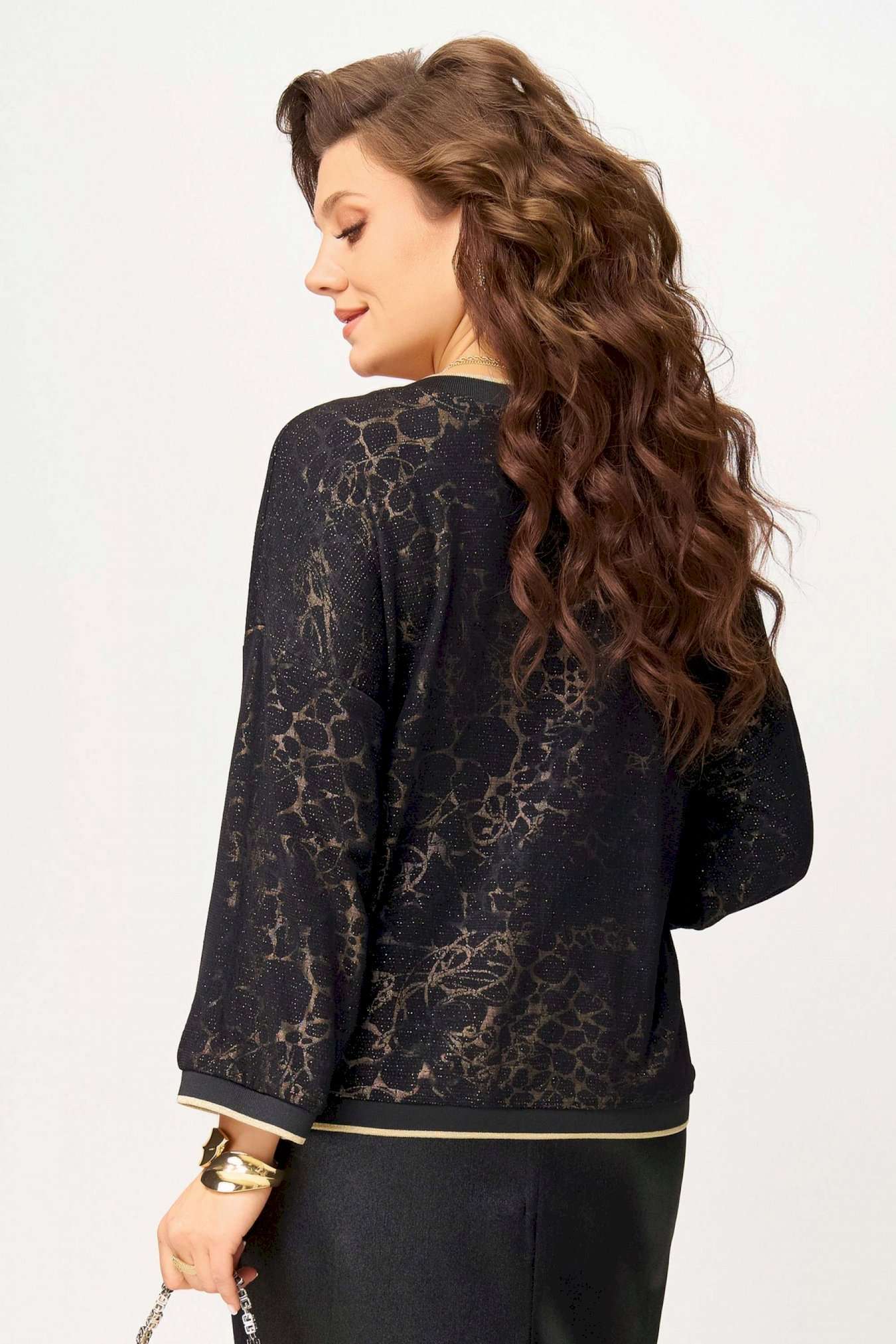 \"\"Ираида\"\" — джемпер, который работает на ваш стиль. Свободный крой, воздушная сетка и выразительный V-вырез — всё, чтобы выглядеть эффектно и чувствовать себя комфортно. Довяз по горловине, рукавам и низу придаёт изделию завершённость и подчёркивает форму. Нарядный, но практичный — \"\"Ираида\"\" легко адаптируется к вашему гардеробу.