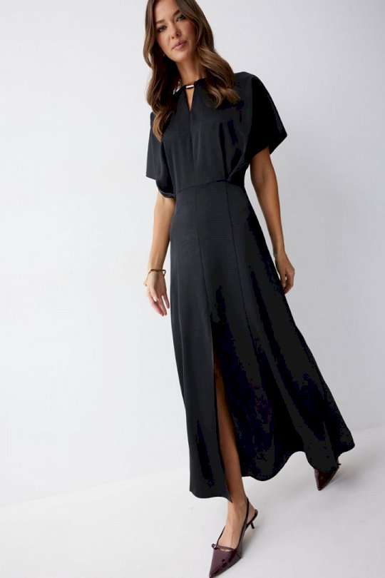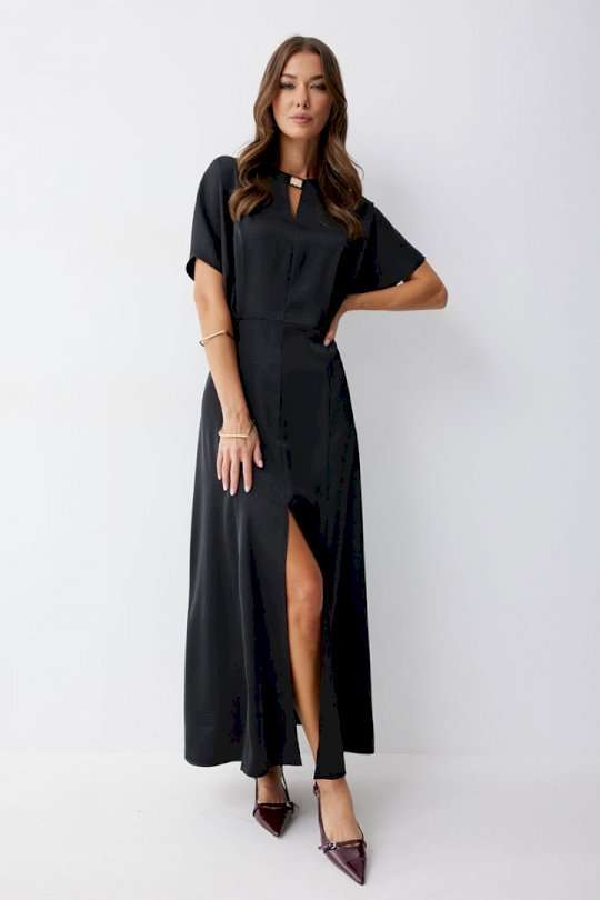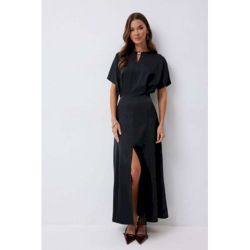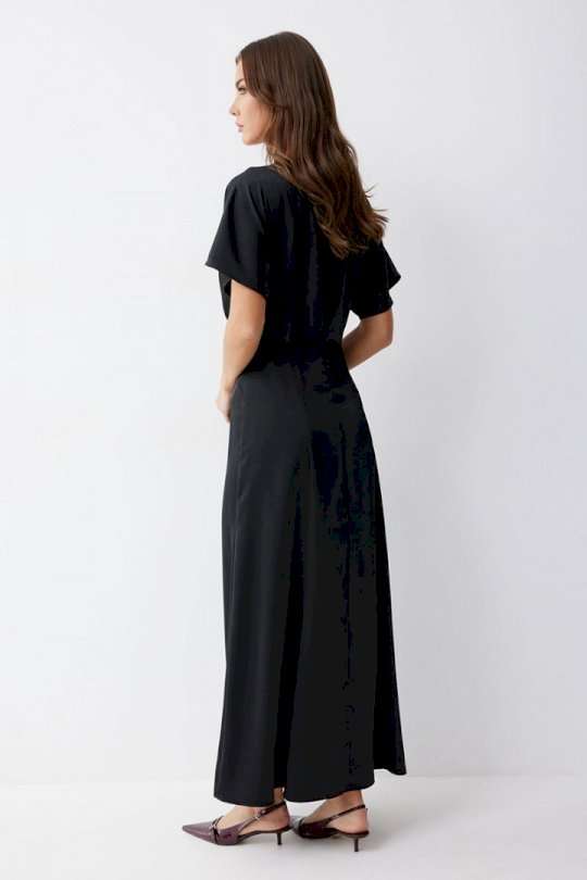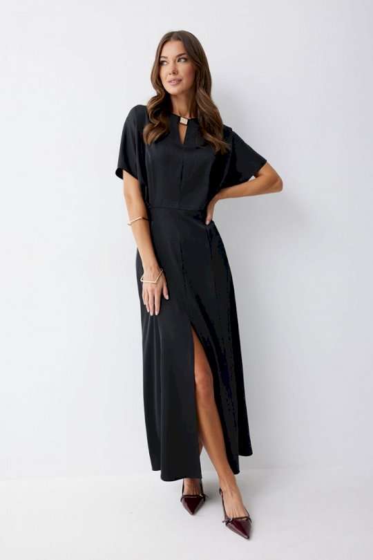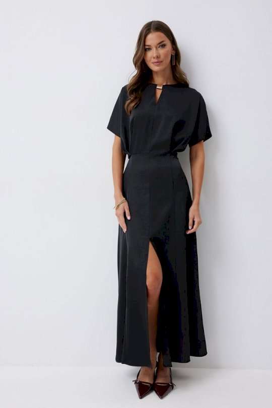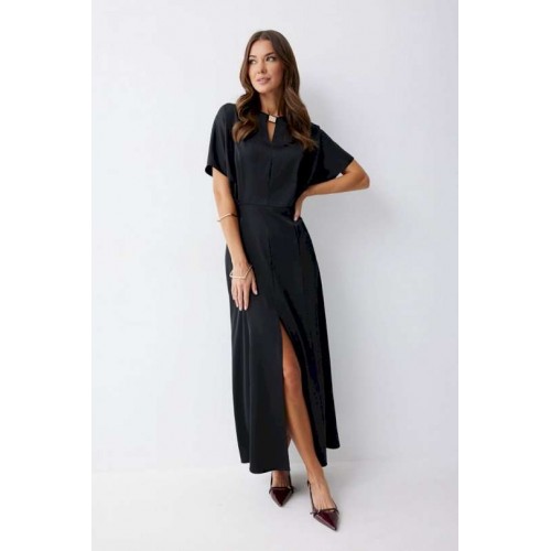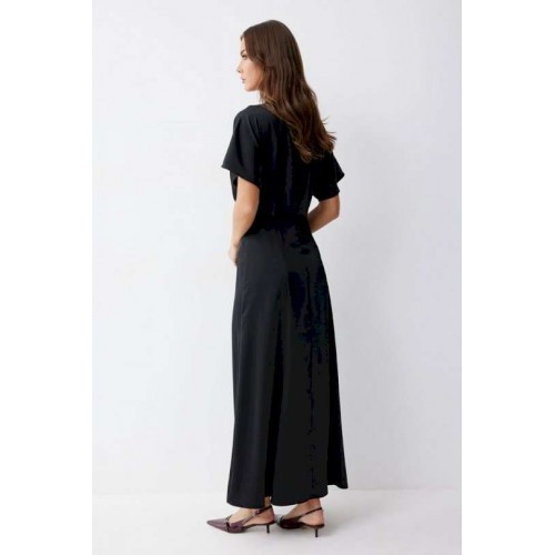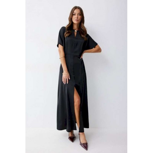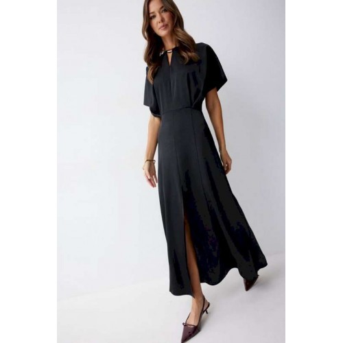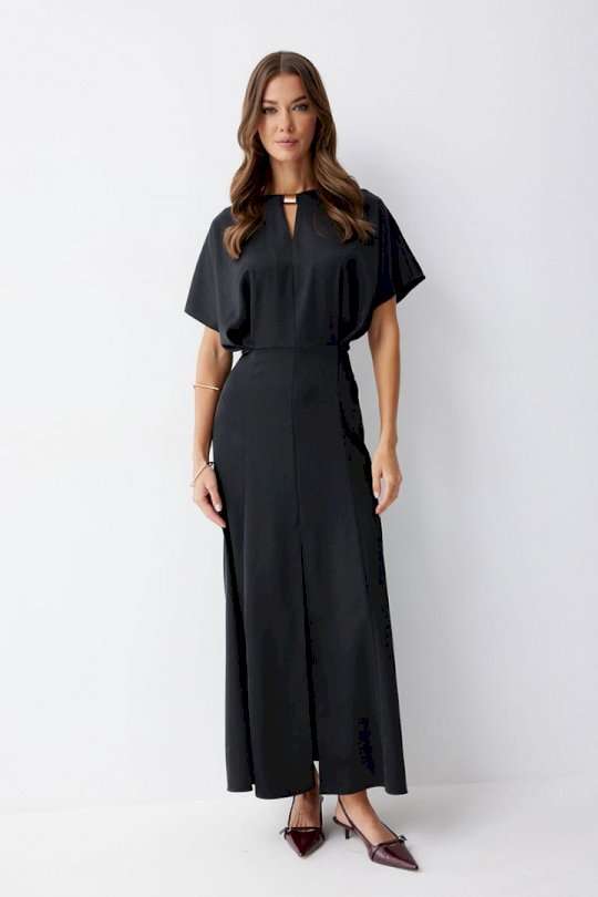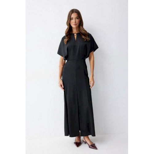 Нарядное платье из струящейся ткани длины макси. Рукав цельнокроеный. Платье отрезное по линии талии, на полочке заложены складки. Горловина округлая, с декоративно протяжкой по центру. По спинке средний шов с застежкой на потайную молнию. Юбка расширенна книзу от бедра. Обращаем ваше внимание, что фурнитура может незначительно отличаться от фото. Подходит на рост 164-170 см. Длина платья 137 см. Длина рукава от горловины (44-48р – 32см)(50-54р – 34см).