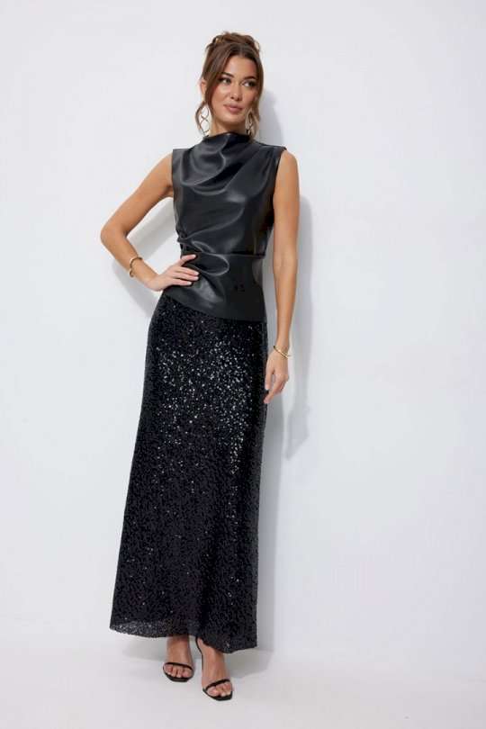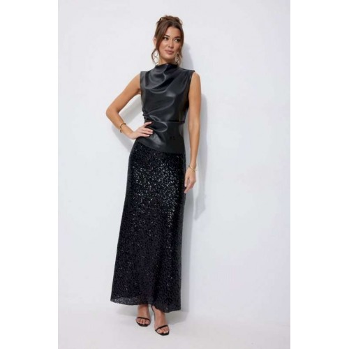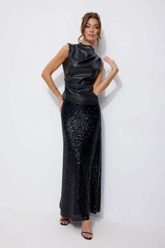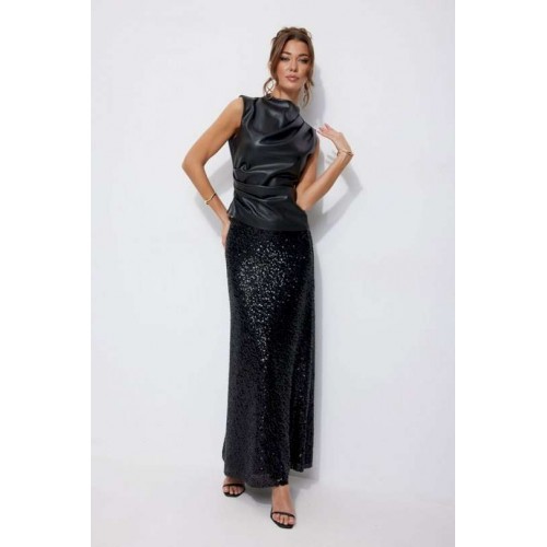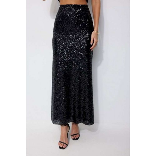 Юбка полуприлегающего силуэта расширенная книзу длиной макси из ткани с пайеткой. Юбка с резинкой по линии талии. Юбка на подкладке. Длина юбки 100 см (±3см).