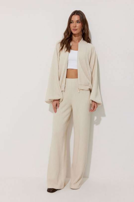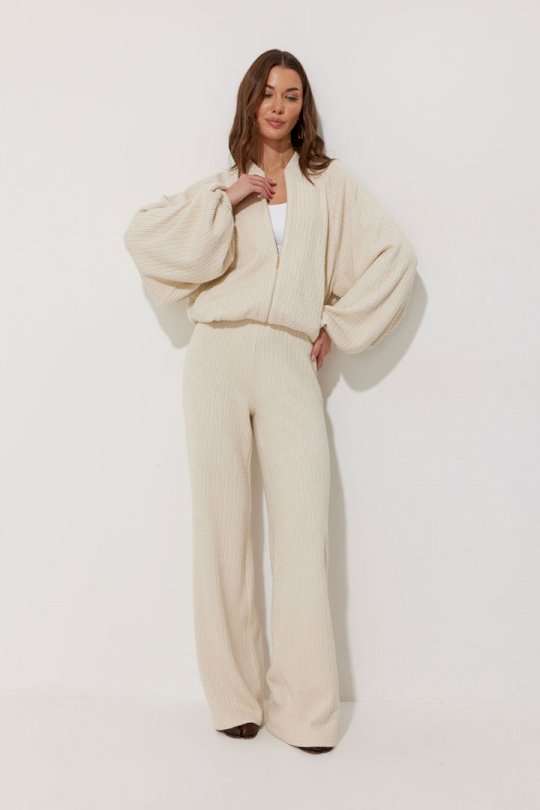 Жакет прямого силуэта из комфортного трикотажного полотна. Горловина-стойка, по центру застежка на молнию. Рукав реглан, по низу манжета. По переду функциональные карманы с листочками, по низу жакета притачной пояс. На спинке декоративная нашивка. Обращаем ваше внимание, что ремень в комплект не входит. Брюки прямого силуэта из комфортного трикотажного полотна. По верху брюк резинка. Подходит на рост 164-170 см. Длина жакета (44-48р - 55см)(50-54р - 60см). Длина рукава от горловины 74см. Длина брюк (44-48р - 112см)(50-54р - 113см).