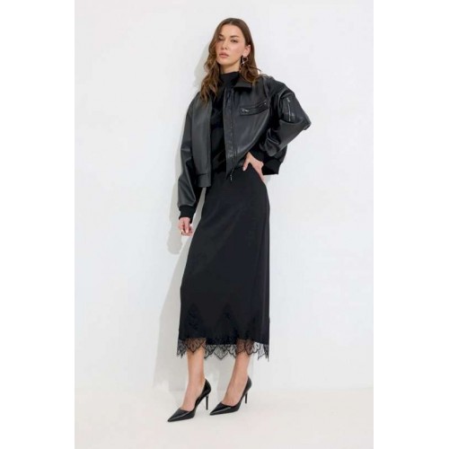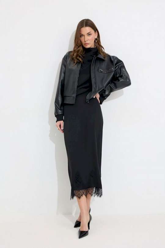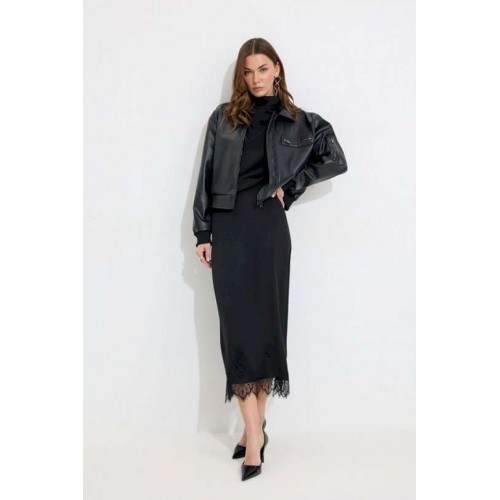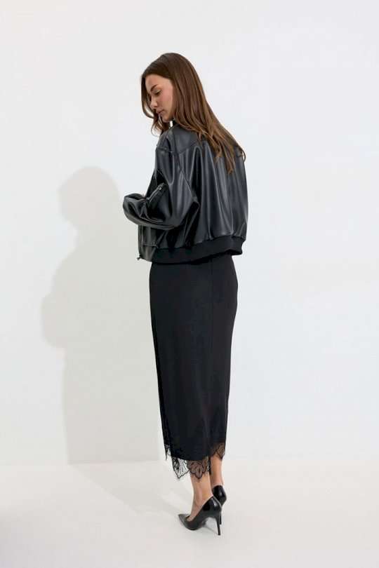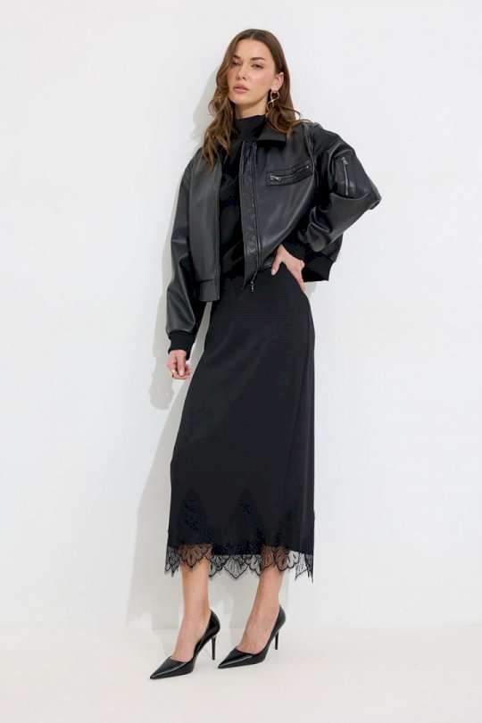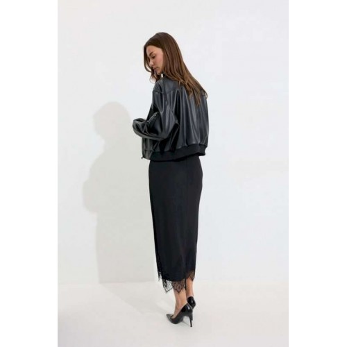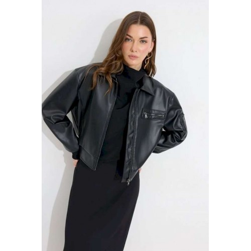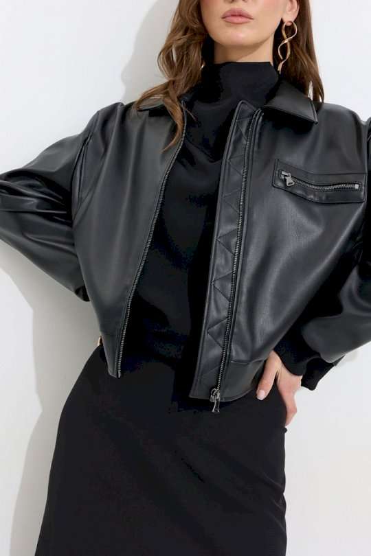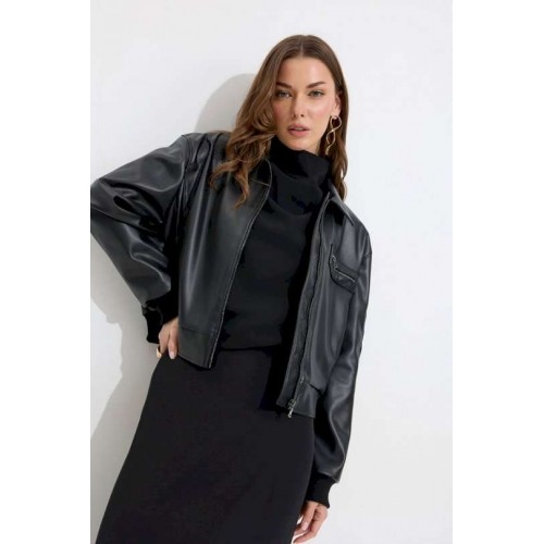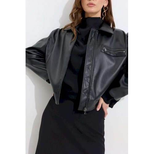Жакет прямого силуэта из экокожи. Воротник отложной, по центру застежка на молнию. Жакет с удлиненной линией плеча, рукав одношовный втачной, по низу рукава манжета (из трикотажного полотна). По переду рельефы с функциональными карманами и декоративный элемент с молнией. На спинке кокетка. По низу жакета притачной пояс (из трикотажного полотна). Жакет на подкладке. Обращаем ваше внимание, что фурнитура может отличаться от фото. Подходит на рост 164-170 см. Длина жакета (44-48р -50см)(50-54р - 55см). Длина рукава от горловины (44-48р -76см)(50-54р - 78см).