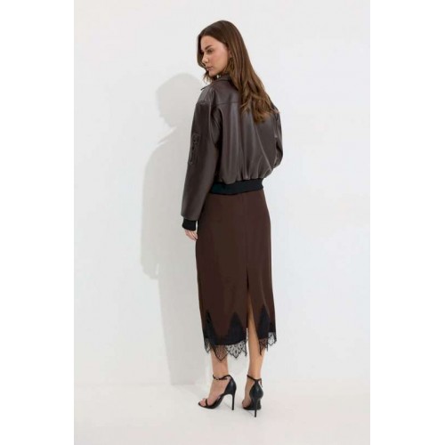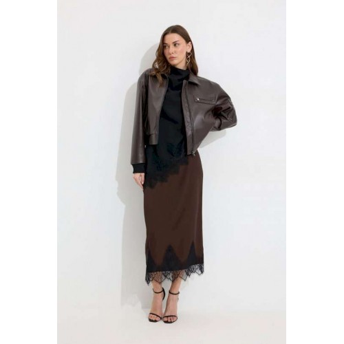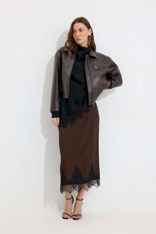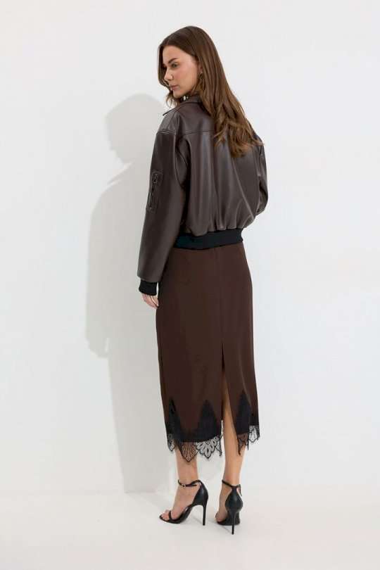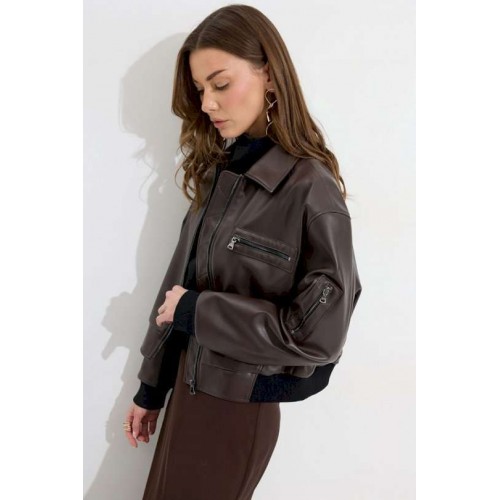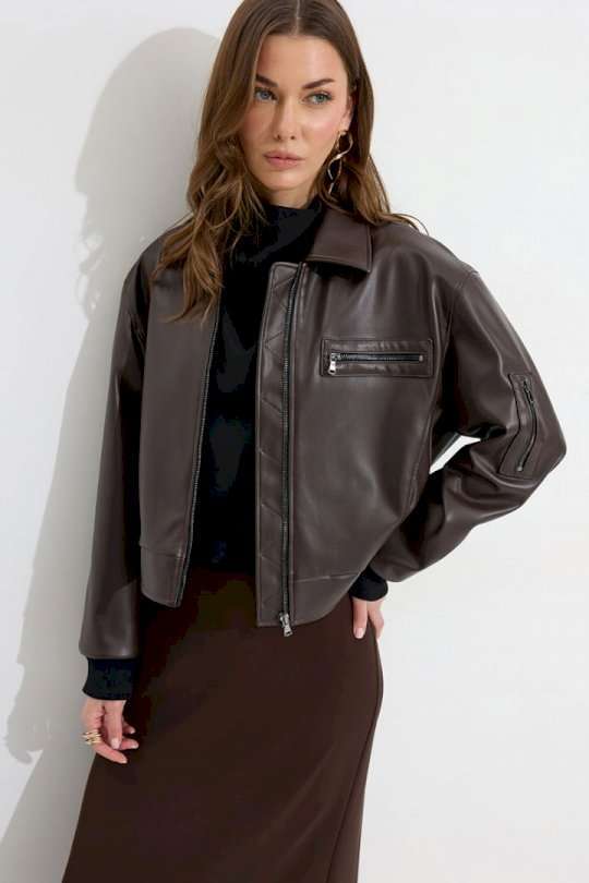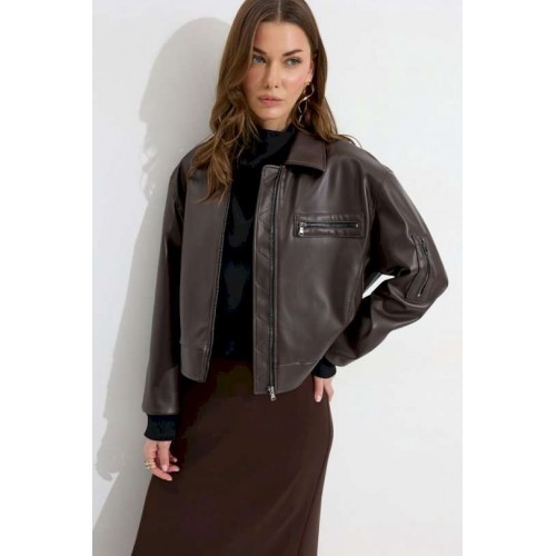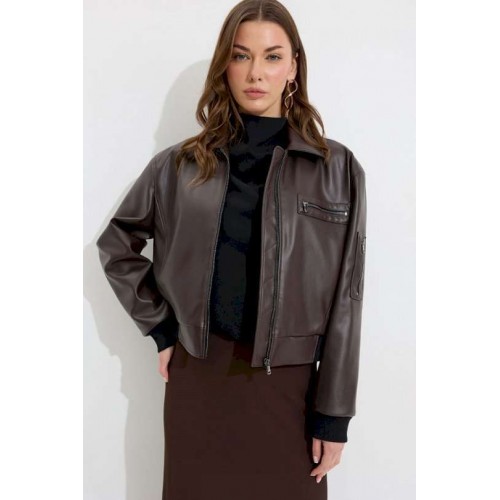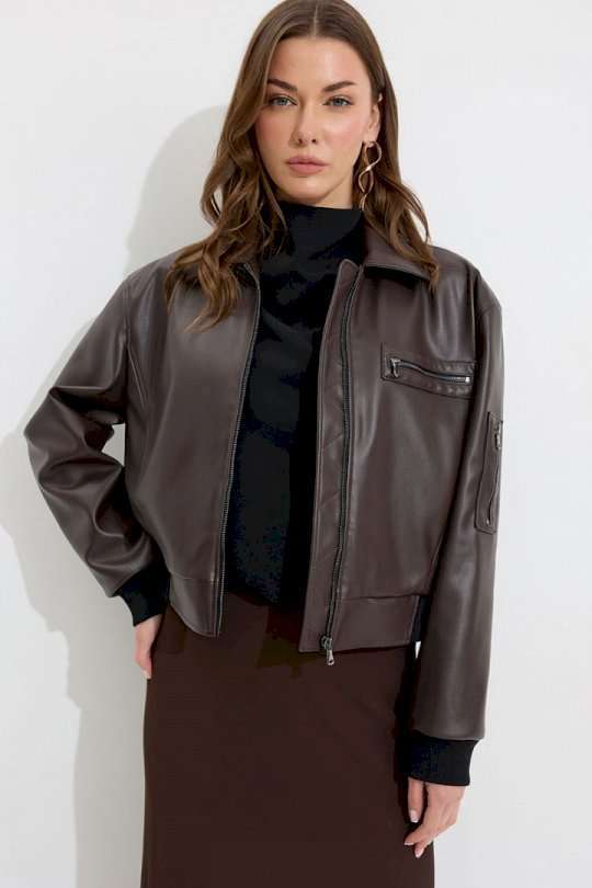 Жакет прямого силуэта из экокожи. Воротник отложной, по центру застежка на молнию. Жакет с удлиненной линией плеча, рукав одношовный втачной, по низу рукава манжета (из трикотажного полотна). По переду рельефы с функциональными карманами и декоративный элемент с молнией. На спинке кокетка. По низу жакета притачной пояс (из трикотажного полотна). Жакет на подкладке. Обращаем ваше внимание, что фурнитура может отличаться от фото. Подходит на рост 164-170 см. Длина жакета (44-48р -50см)(50-54р - 55см). Длина рукава от горловины (44-48р -76см)(50-54р - 78см).