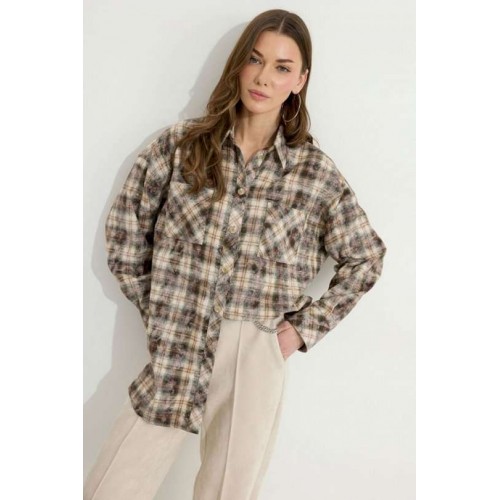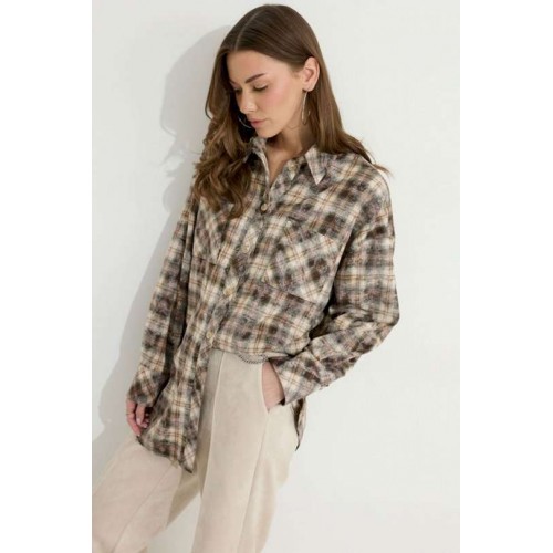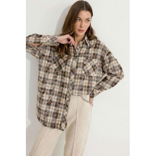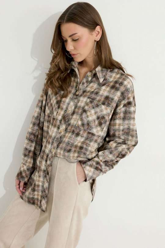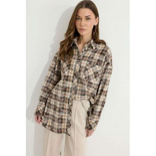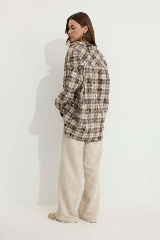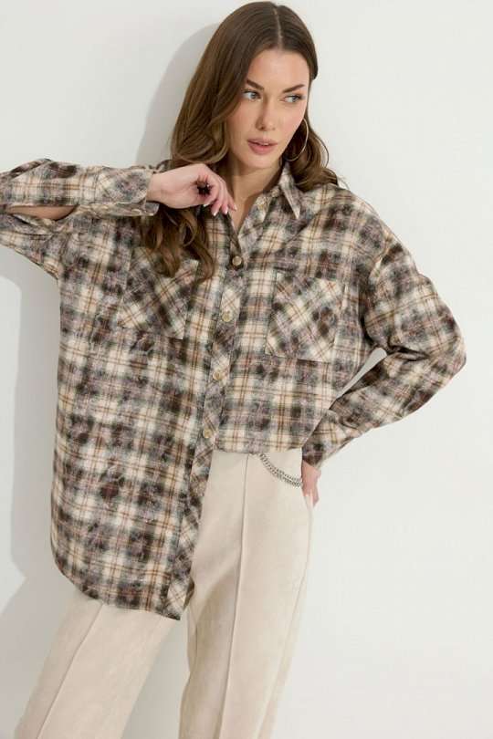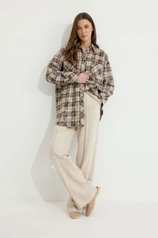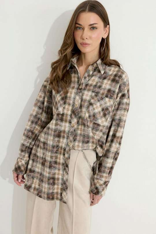 Блузка прямого силуэта из плательно-костюмной ткани с фигурным низом. Воротник стояче-отложной с отрезной стойкой, по центру застежка на петли и пуговицы. Рукав со спущенной линией плеча, по низу манжета с застежкой на петли и пуговицы. По переду накладные карманы. На спинке кокетка со складками. Обращаем ваше внимание, что фурнитура может отличаться от фото. Подходит на рост 164-170 см. Длина блузки (44-48р – 79см)(50-54р - 79см)(54-60р - 81см). Длина рукава от горловины(44-48р - 76см)(50-54р - 76,5см)(54-60р - 77см).