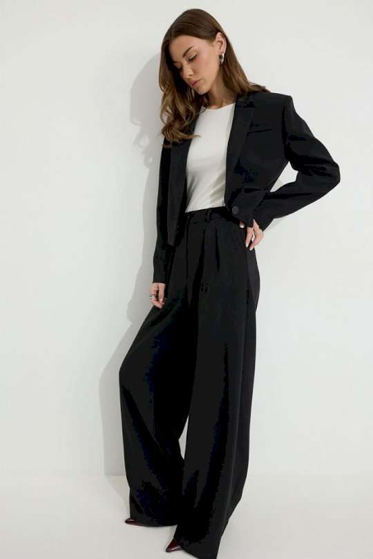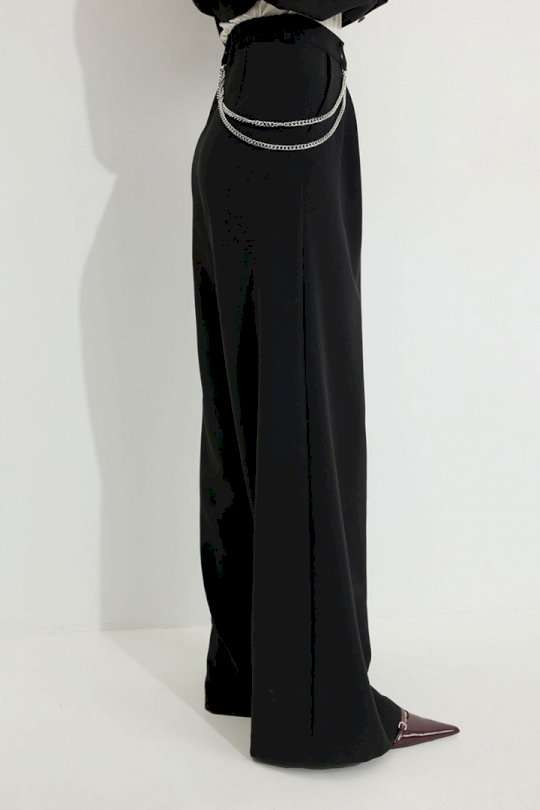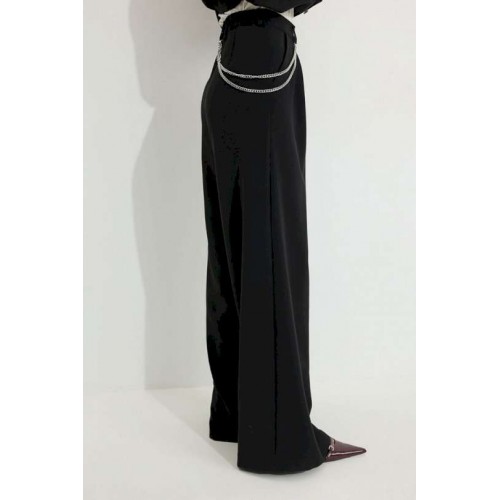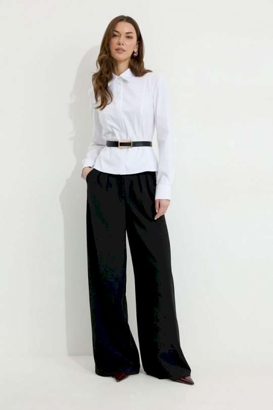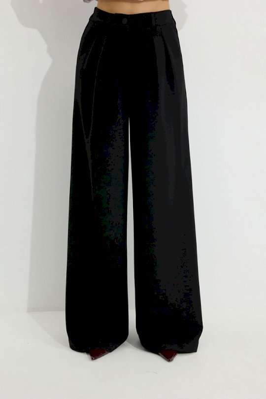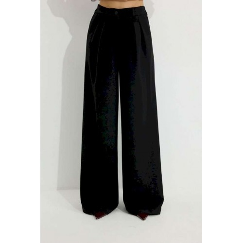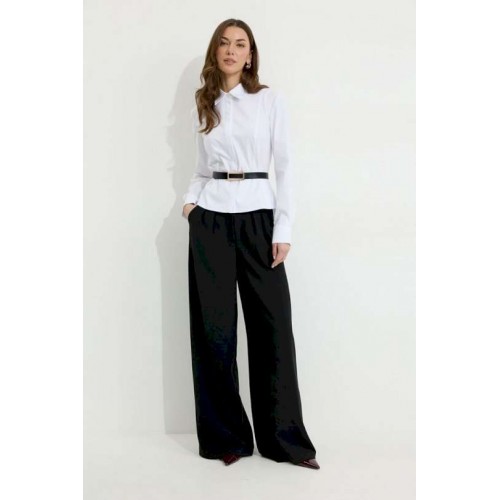 Брюки из поливискозной ткани, прямого, расширенного силуэта. На передних половинах брюк по две складки, выходящих из-под пояса, складки застрочены на несколько сантиметров. По переду застежка на молнию по типу гульфик. Брюки по переду с карманами в отрезных бочках. Пояс по переду с застежкой на петлю и пуговицу. Со шлевками по переду и спинке. По спинке в пояс вставлена резинка. На задних половинах брюк вытачки. Обращаем Ваше внимание, что фурнитура может незначительно отличаться от фото. Подходит на рост 164-170 см. Длина брюк (44-48р 111 см, пояс 4,5 см) (50-54р 112 см, пояс 4,5 см).