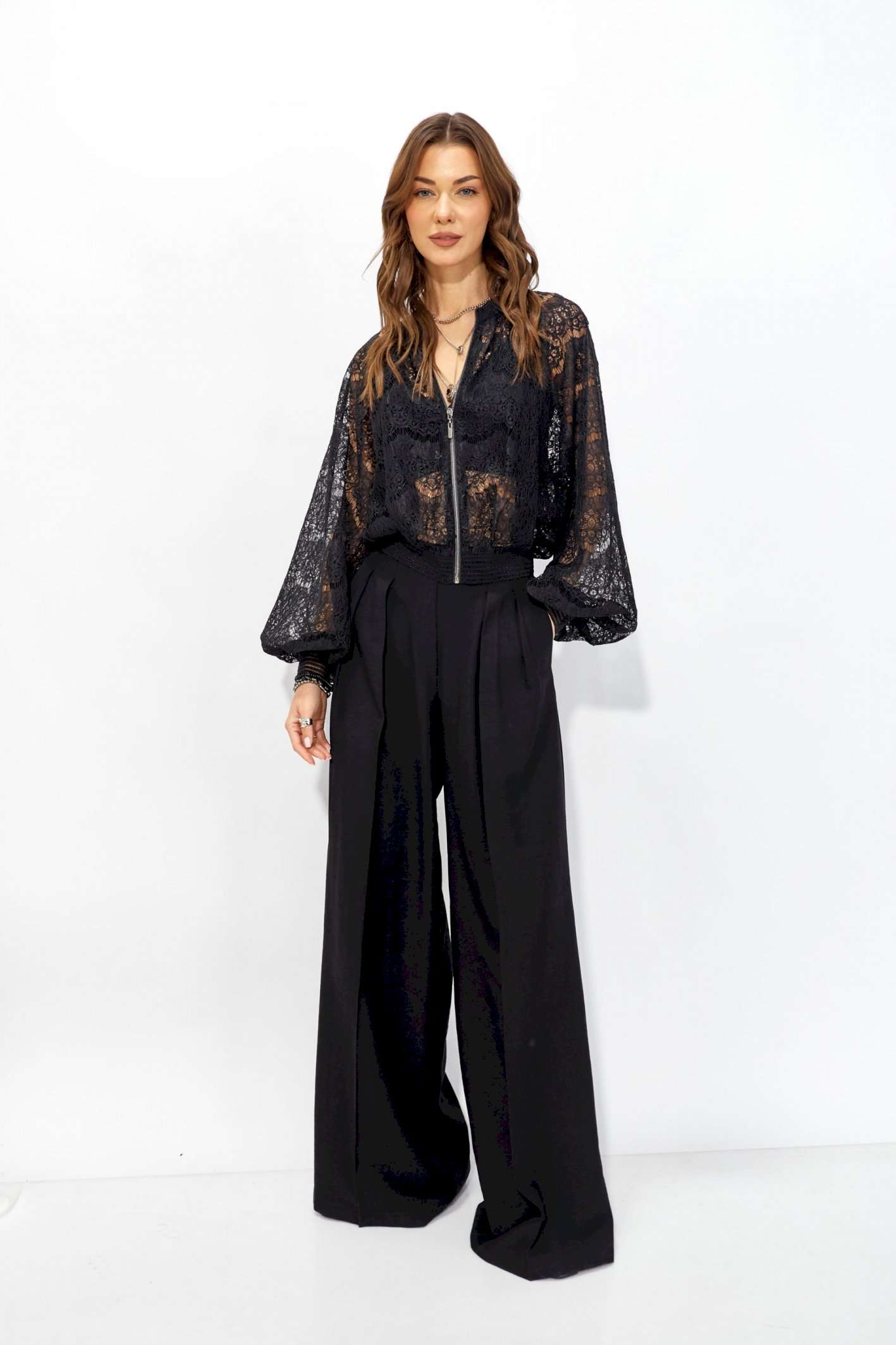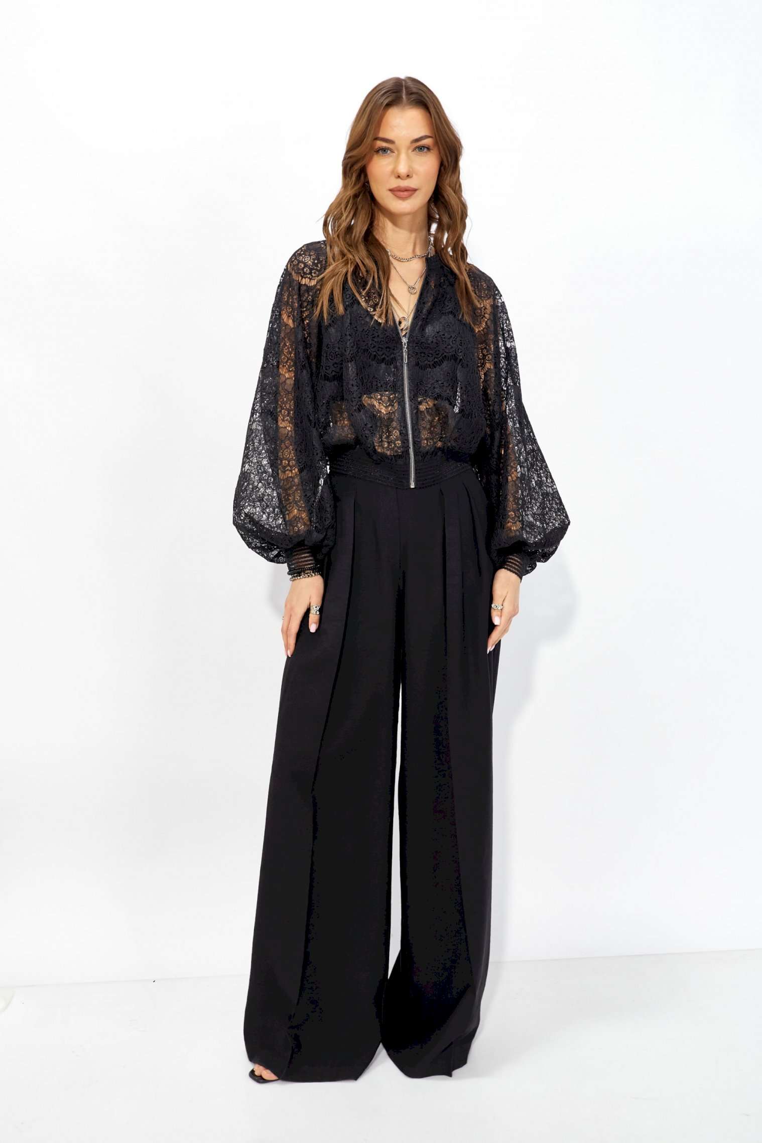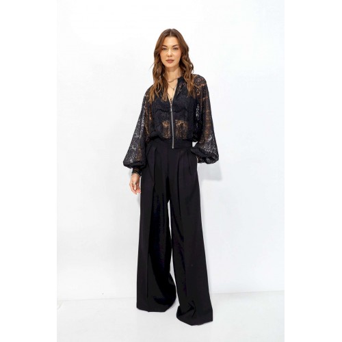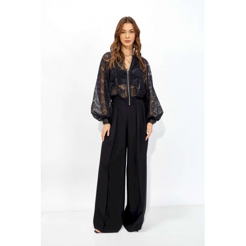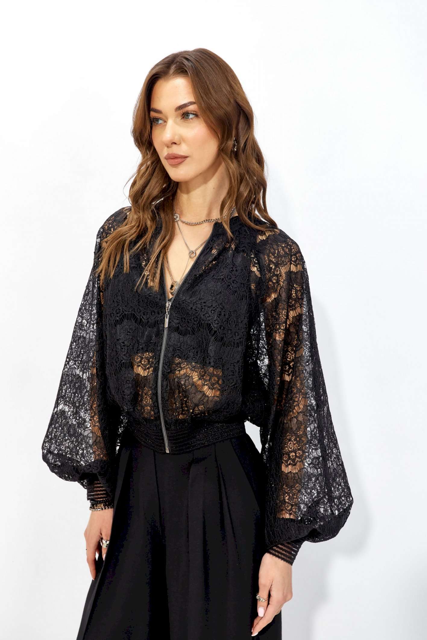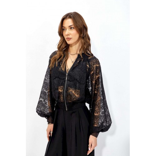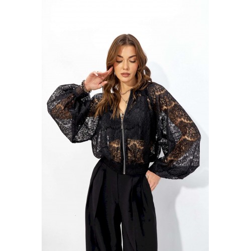 Жакет прямого силуэта из кружева. Горловина обработана декоративной резинкой, по центру застежка на молнию. Рукав со спущенной линией плеча, по низу декоративная резинка. По низу жакета притачная резинка. Обращаем ваше внимание, что фурнитура может отличаться от фото. Длина жакета (44-48р – 53см)(50-54р – 61см) Длина рукава от горловины (44-48р - 76,5см)(50-54р - 77,5см)