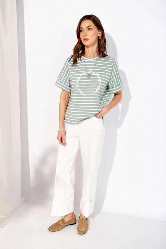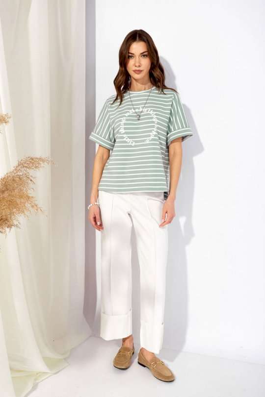 Джемпер прямого силуэта из трикотажного полотна. Горловина округлая. Рукав втачной, по низу манжета. По бокам разрезы, спинка длиннее переда. По центру дизайнерская печать. Длина по спинке в 44-48р - 59см, в 50-54р - 64см, в 56-60р - 69см. Длина рукава в 44-48р – 23см, в 50-54р -23,5см, в 56-60р - 24см.