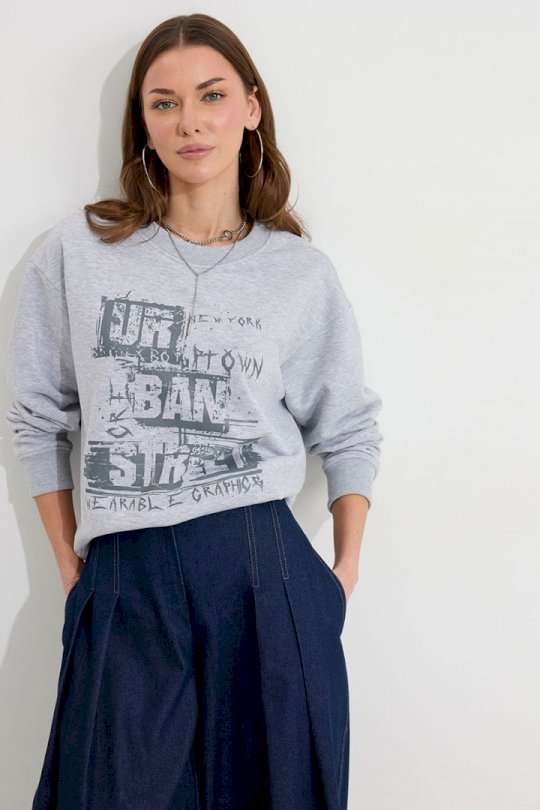 Джемпер прямого силуэта из трикотажного полотна. Горловина округлая. Рукав со спущенной линией плеча, по низу манжета. По переду дизайнерская печать. Подходит на рост 164-170 см. Длина джемпера (44-48р – 57см)(48-50р - 60см)(52-54р - 63см). Длина рукава от горловины (44-48р – 75см)(50-54р - 77см)(54-60р - 79см).