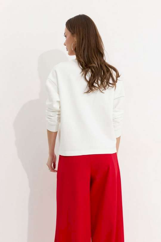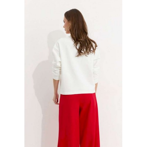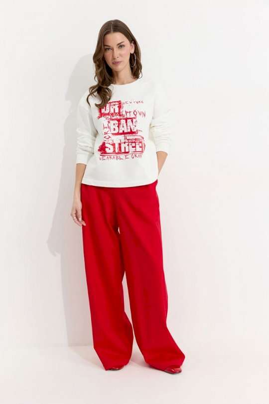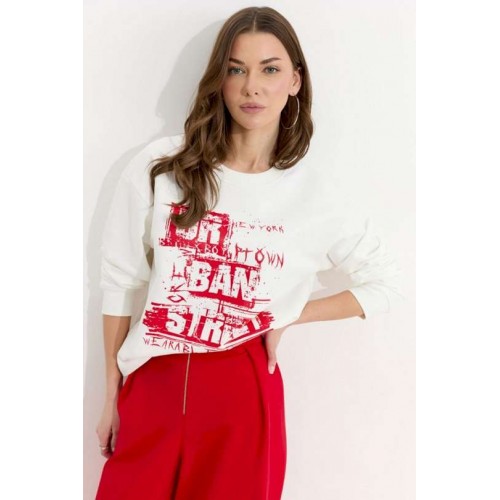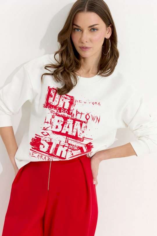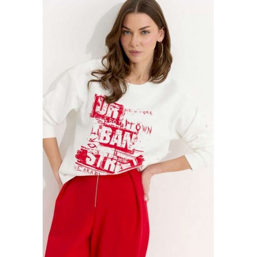 Джемпер прямого силуэта из трикотажного полотна. Горловина округлая. Рукав со спущенной линией плеча, по низу манжета. По переду дизайнерская печать. Подходит на рост 164-170 см. Длина джемпера (44-48р – 57см)(48-50р - 60см)(52-54р - 63см). Длина рукава от горловины (44-48р – 75см)(50-54р - 77см)(54-60р - 79см).