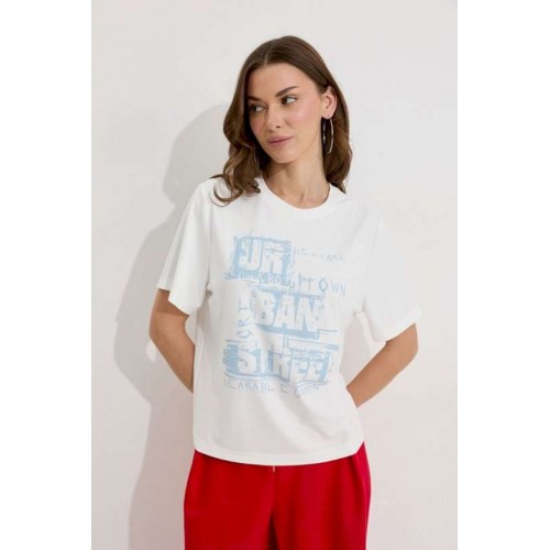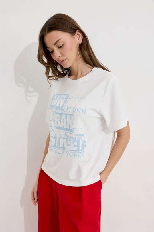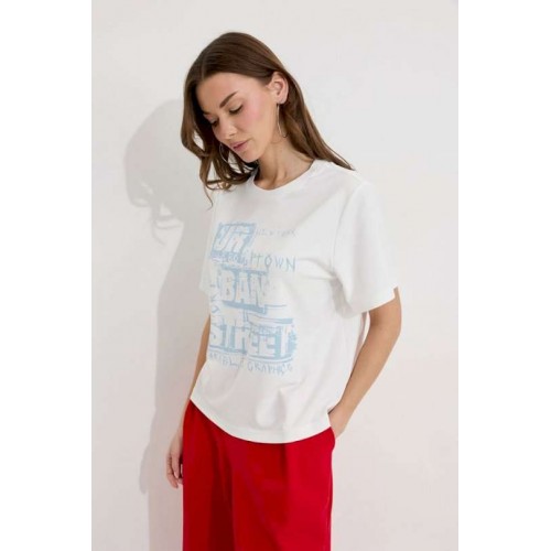 Джемпер полуприлегающего силуэта из трикотажного полотна. Горловина округлая. Рукав втачной короткий. По переду дизайнерский принт. Подходит на рост 164-170 см. Длина джемпера (44-48р 55 см) (50-54р 58см). Длина рукава (44-48р 22 см) (50-54р 22 см).