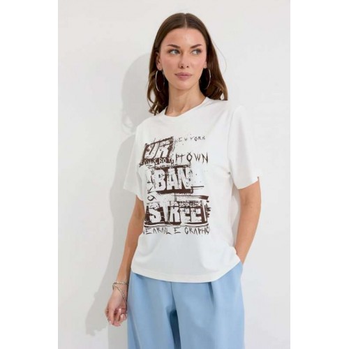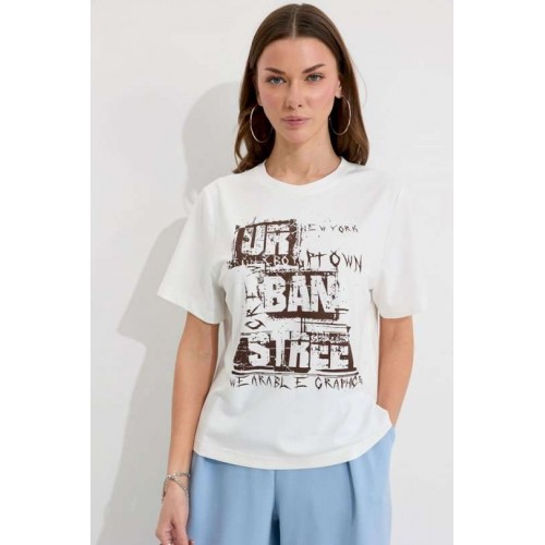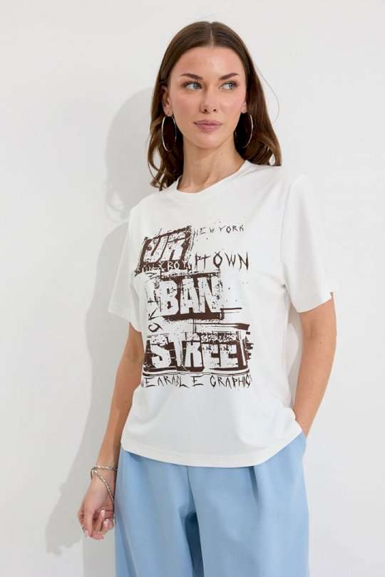 Джемпер полуприлегающего силуэта из трикотажного полотна. Горловина округлая. Рукав втачной короткий. По переду дизайнерский принт. Подходит на рост 164-170 см. Длина джемпера (44-48р 55 см) (50-54р 58см). Длина рукава (44-48р 22 см) (50-54р 22 см).