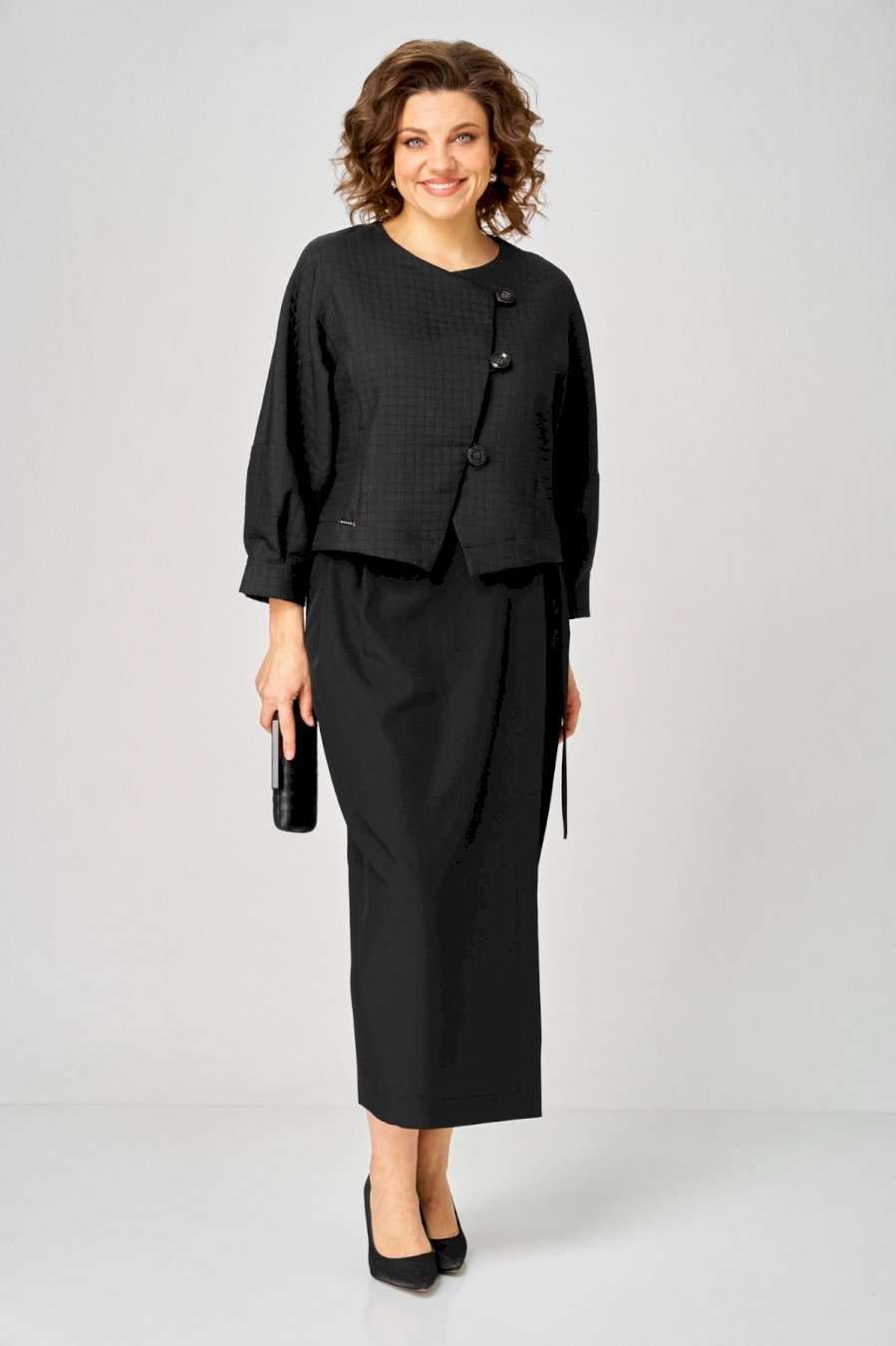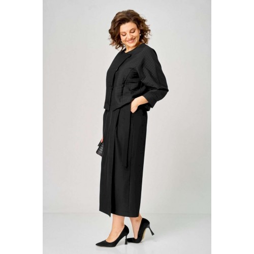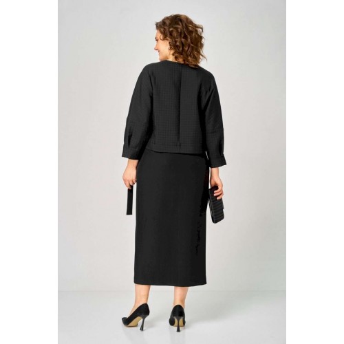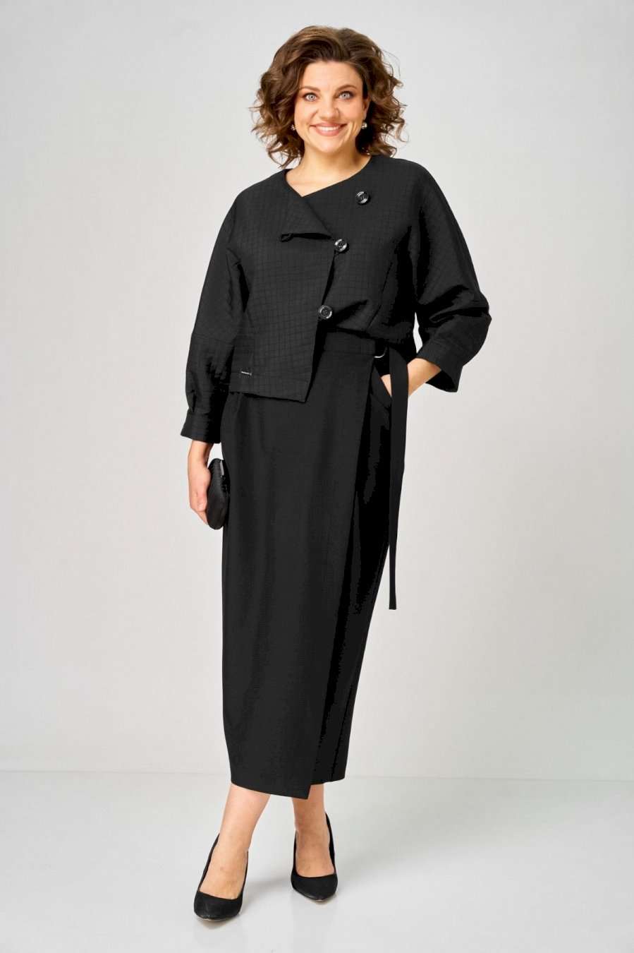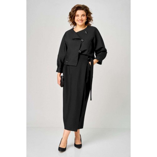Элегантный женский комплект от Michel Chic — воплощение стиля и комфорта для современных женщин. Этот изысканный дуэт идеально подойдет как для важных мероприятий, так и для ежедневных образов, придавая вашему стилю утонченность и уникальность. В его состав входят: • Уютный трикотажный жакет с узором кубики — оригинальный акцент, добавляющий нотки праздничности и актуальности в любой сезон. • Стильная юбка с запахом и драпировкой — эффектно подчеркивает фигуру, стройнит и создает выразительный силуэт. Этот комплект — универсальное решение для любого случая: будь то офисная встреча, деловой день или вечерний выход. Мягкая трикотажная ткань сохраняет свою форму и не мнется, обеспечивая комфорт и долговечность на длительное время. Стильный и практичный комплект, он легко адаптируется под любые обстоятельства, подчеркивает вашу индивидуальность и становится незаменимой частью гардероба. Выбирайте Michel Chic и подчеркните свою уникальность с элегантностью и уверенностью! Длина жакета по спинке 52 см +\\- 1 см, длина рукава 62 см +\\- 1 см, длина юбки по боковому шву 95 см +\\- 1 см. Изделие подойдет на рост 170 см.
