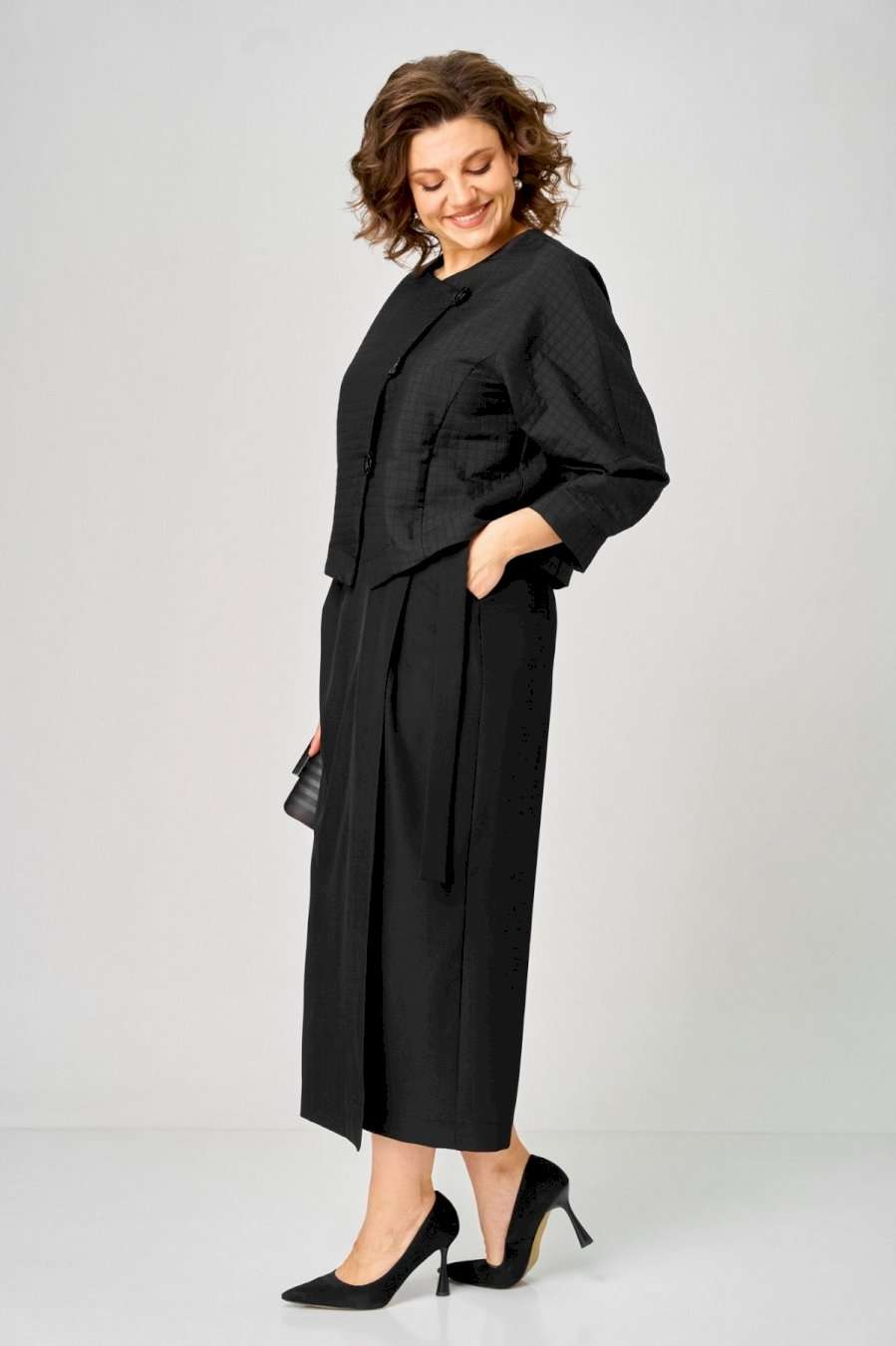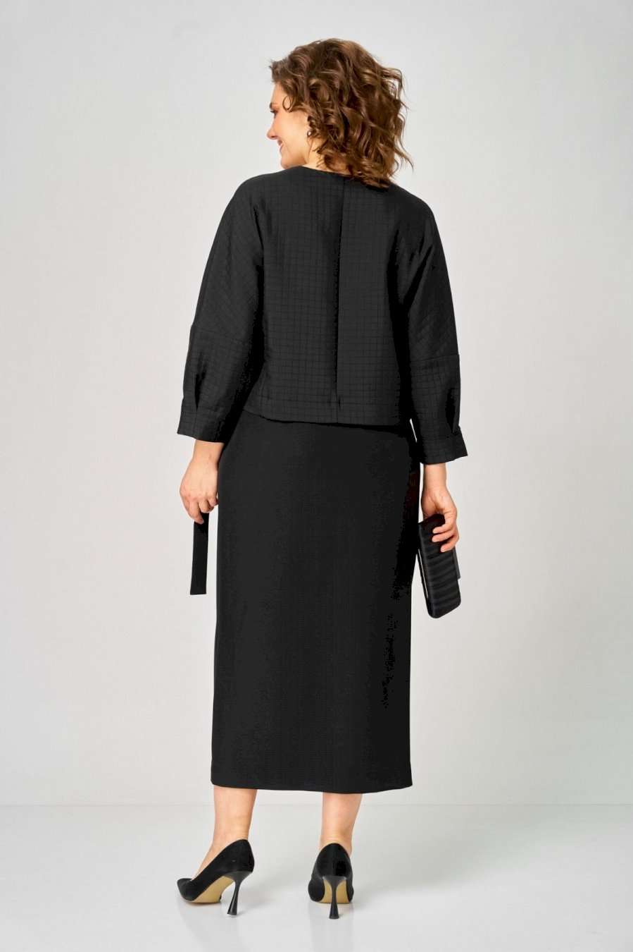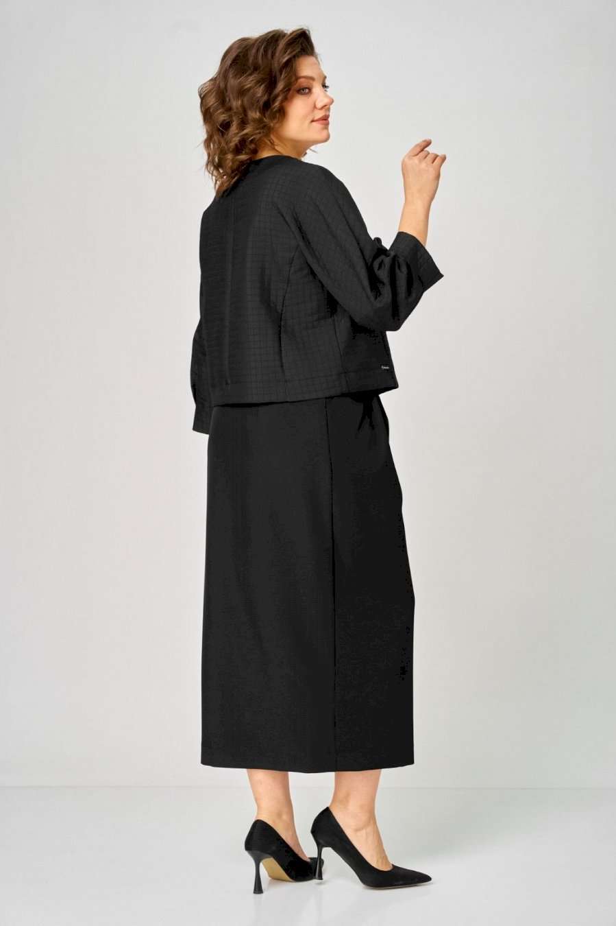 Элегантный женский комплект от Michel Chic — воплощение стиля и комфорта для современных женщин. Этот изысканный дуэт идеально подойдет как для важных мероприятий, так и для ежедневных образов, придавая вашему стилю утонченность и уникальность. В его состав входят: • Уютный трикотажный жакет с узором кубики — оригинальный акцент, добавляющий нотки праздничности и актуальности в любой сезон. • Стильная юбка с запахом и драпировкой — эффектно подчеркивает фигуру, стройнит и создает выразительный силуэт. Этот комплект — универсальное решение для любого случая: будь то офисная встреча, деловой день или вечерний выход. Мягкая трикотажная ткань сохраняет свою форму и не мнется, обеспечивая комфорт и долговечность на длительное время. Стильный и практичный комплект, он легко адаптируется под любые обстоятельства, подчеркивает вашу индивидуальность и становится незаменимой частью гардероба. Выбирайте Michel Chic и подчеркните свою уникальность с элегантностью и уверенностью! Длина жакета по спинке 52 см +\\- 1 см, длина рукава 62 см +\\- 1 см, длина юбки по боковому шву 95 см +\\- 1 см. Изделие подойдет на рост 170 см.