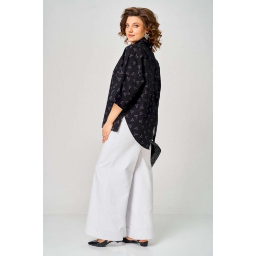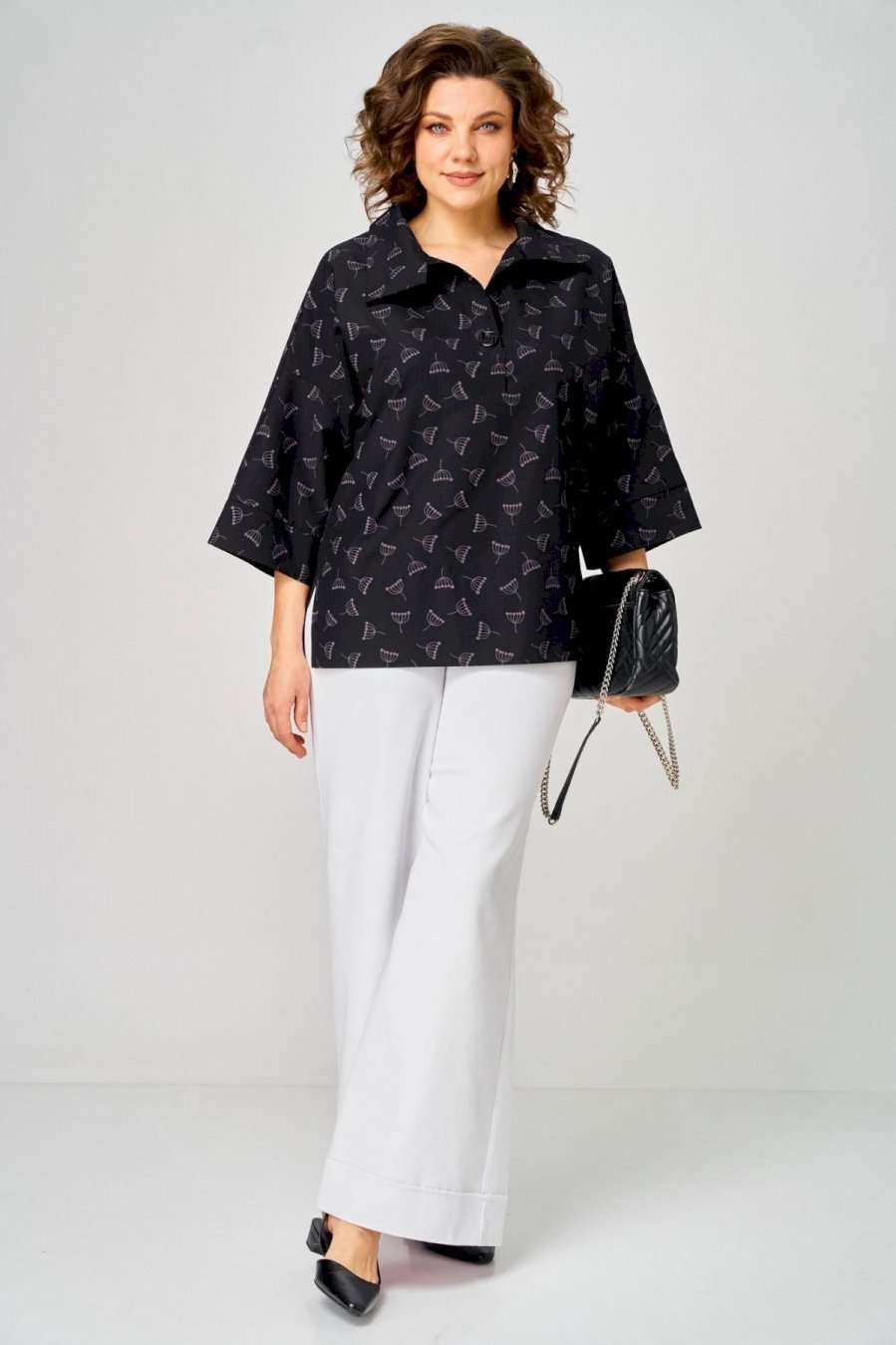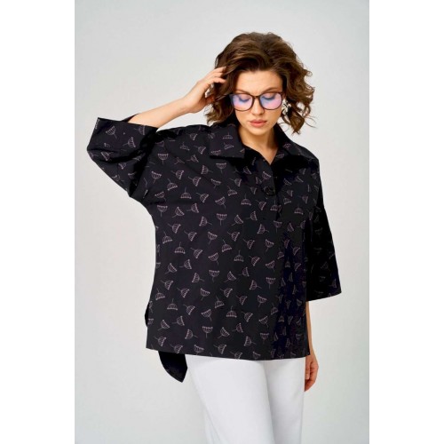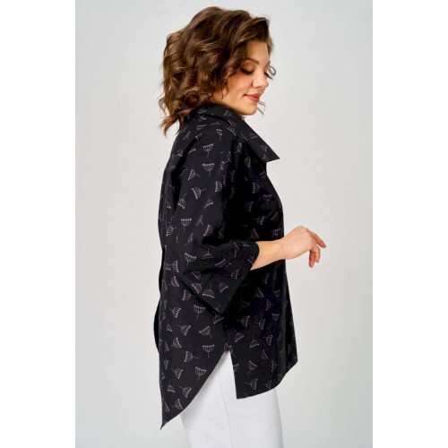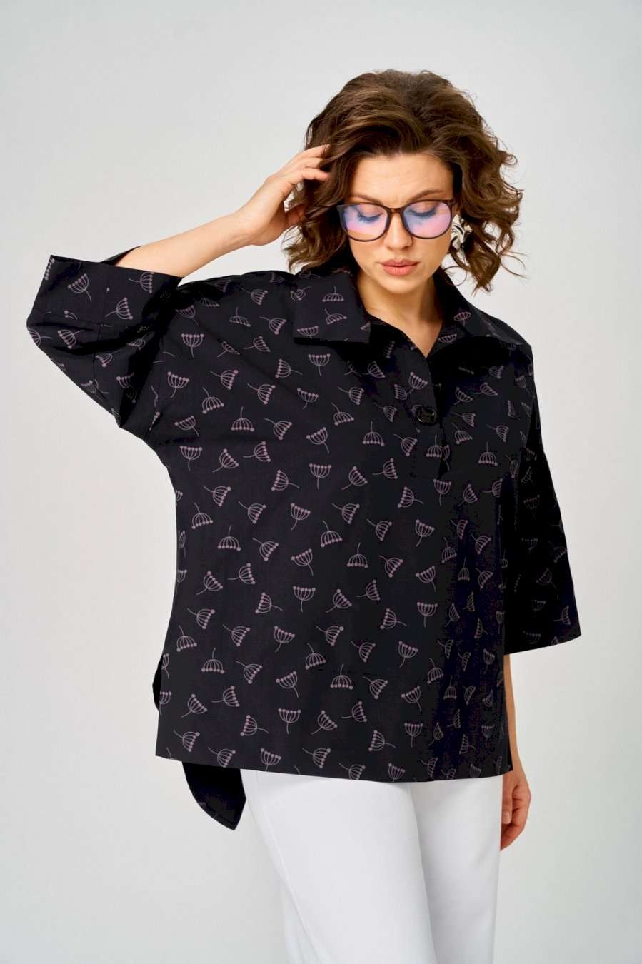 Блузка из коллекции Michel Chic — стильный и лёгкий «бохо»-шик из 100% хлопка, дарящего мягкость и комфорт на протяжении всего дня. Свободный крой с изящной планкой-застежкой и плавным фигурным низом подчёркивает достоинства любой фигуры и создаёт непринуждённый, но утончённый силуэт. Рукава 3/4 с аккуратной манжетой создают ощущение свободы и лёгкости движений. Черный цвет — универсальный тон, который легко гармонирует с любыми брюками, юбками и обувью — от классики до спорта. Добавьте в свой гардероб эту блузку, которая объединяет комфорт, элегантность и непревзойдённый стиль Michel Chic! Длина блузки по спинке — 77 см +/- 1 см, длина рукава 50 см +/- 1 см. Изделие подойдет на рост 170 см.