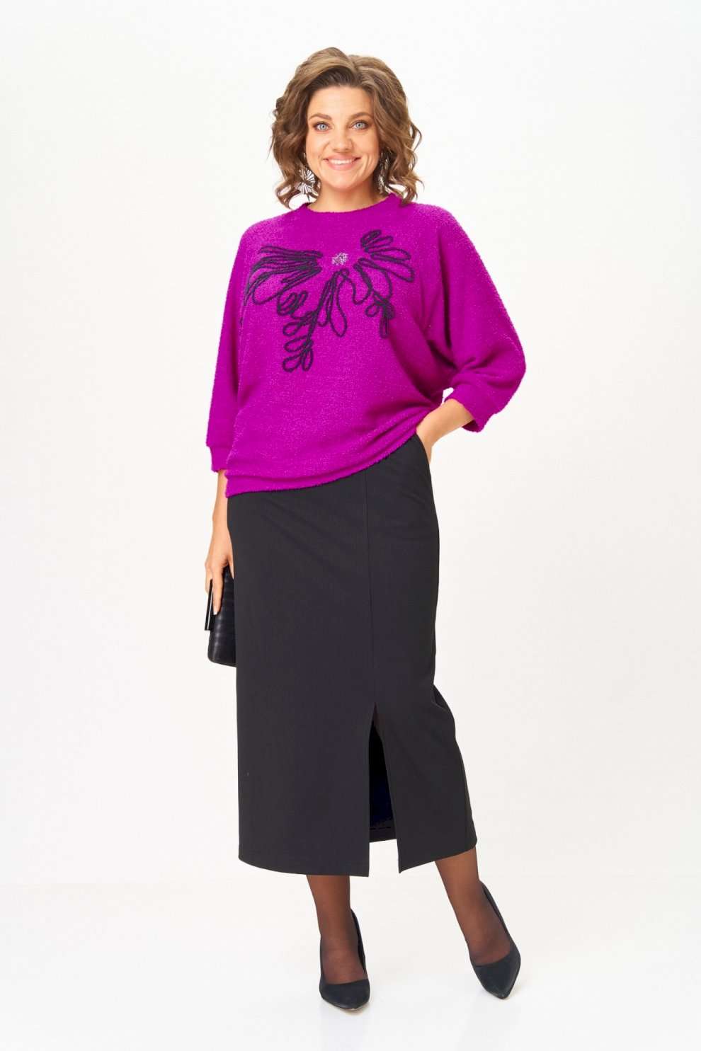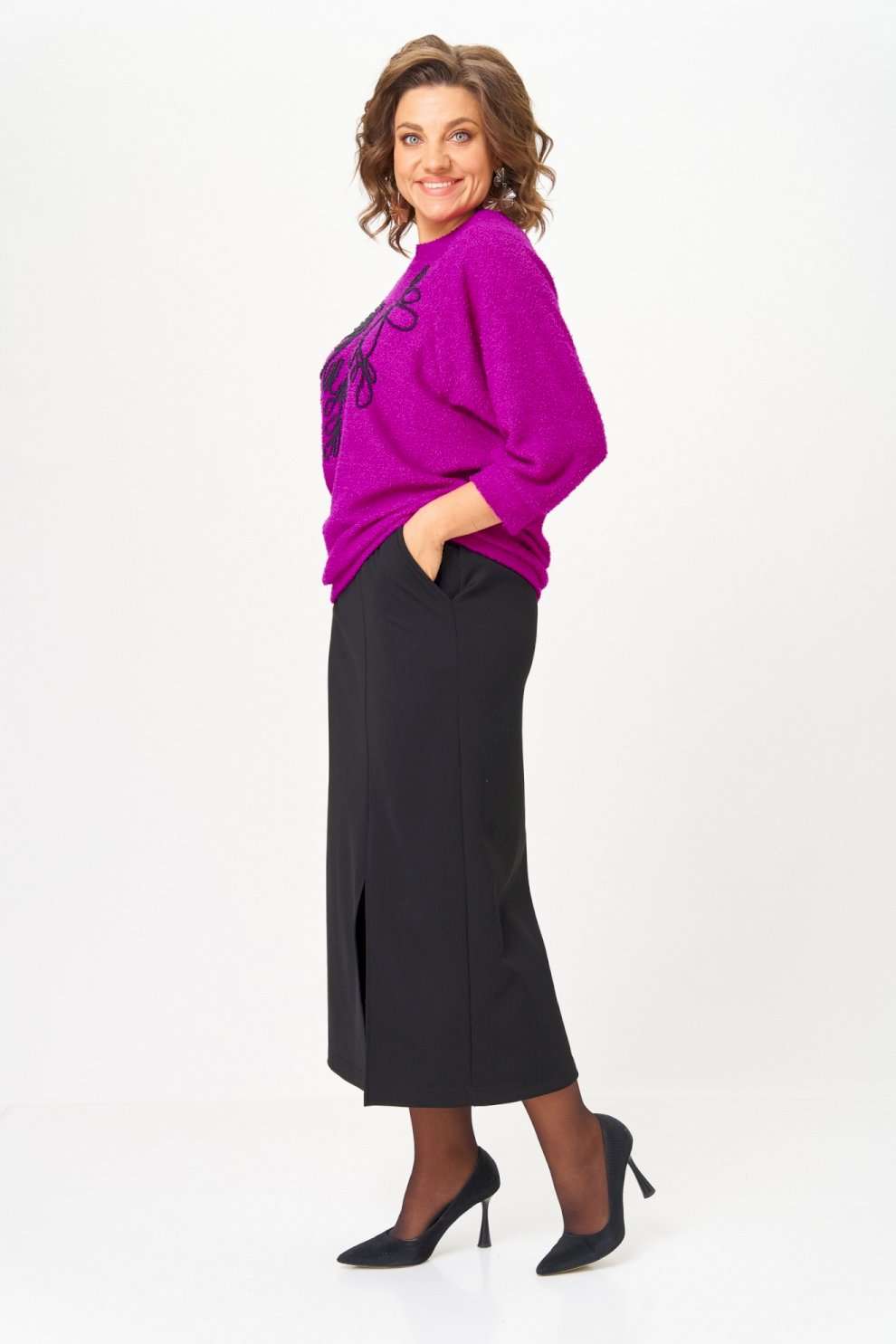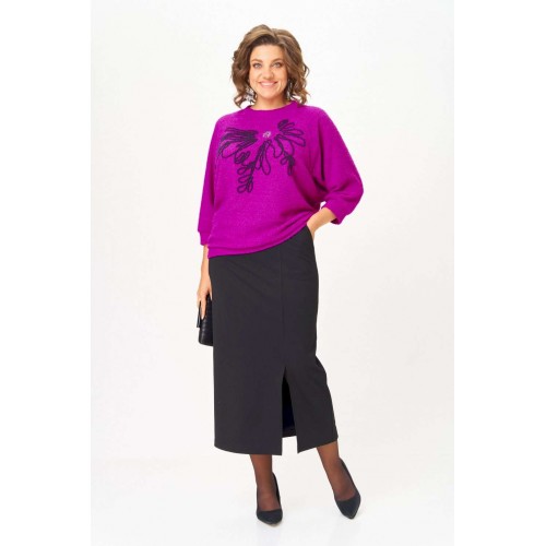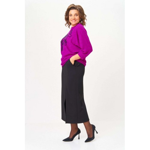Универсальный женский юбочный комплект — идеальный вариант для повседневных образов и торжественных мероприятий. В состав входит свободный джемпер и длинная юбка, создавая стильный и комфортный ансамбль. Джемпер выполнен из плотного трикотажа, с круглой горловиной и рукавами реглан «летучая мышь». Перед украшен изящной вышивкой, что придает изделию нарядный вид. Манжеты на рукавах и по низу выполнены из основной ткани. Юбка прямого силуэта, удлиненная, с декоративной молнией спереди. Оснащена притачным поясом с резинкой и двумя функциональными карманами на боковых швах. Этот комплект станет незаменимой частью вашего осенне-зимнего гардероба благодаря своей универсальности и стильному дизайну. Длина джемпера по спинке 65 см +/- 1 см , длина рукава от горловины 62 см +/- 1 см. Длина юбки по боковому шву 92 см +/- 1 см. Изделие подойдёт на рост 170 см.