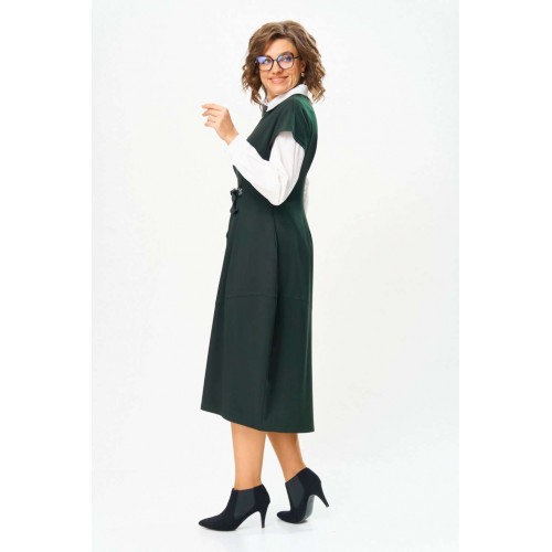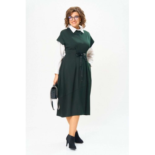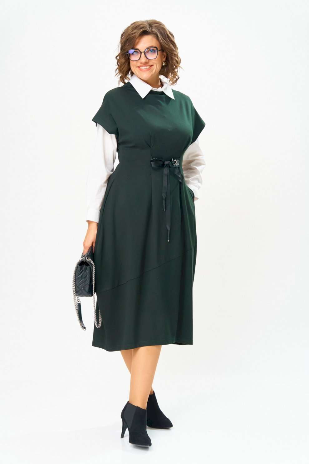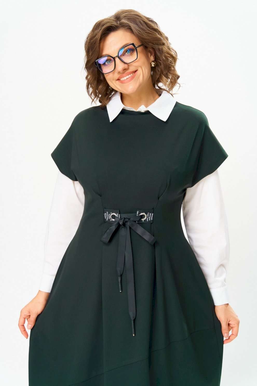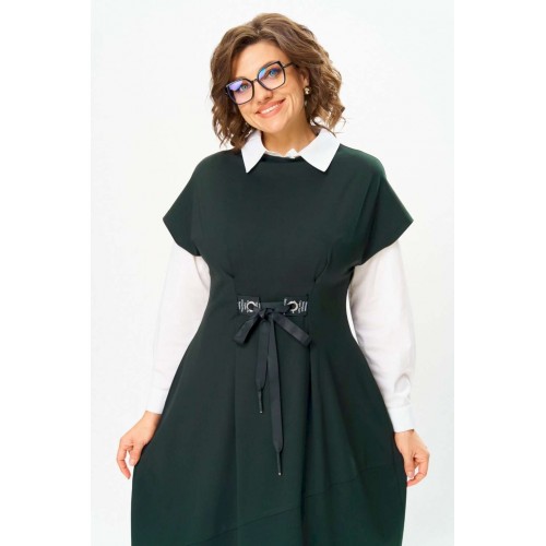 Универсальное платье в стиле \"бохо\". Эффектное, вместе с тем, прекрасно подходящее для повседневной жизни платье выполнено из средней плотности трикотажа приятного к телу. Платье со спущенным рукавом прекрасно носится как в одиночку, так и в сочетании с тонкой водолазкой либо блузкой. Горловина цельнокроеная переходит в стоечку, по переду на уровне талии вставлены блочки со стразами, сквозь которые продевается пояс-тесьма, фиксирующий прилегание изделия по талии; по спинке продольные вытачки. Асимметрично отрезная деталь низа с поперечным швом придает юбке объем. Длина изделия 125+-1см, длина рукава от горловины 55+-1см.