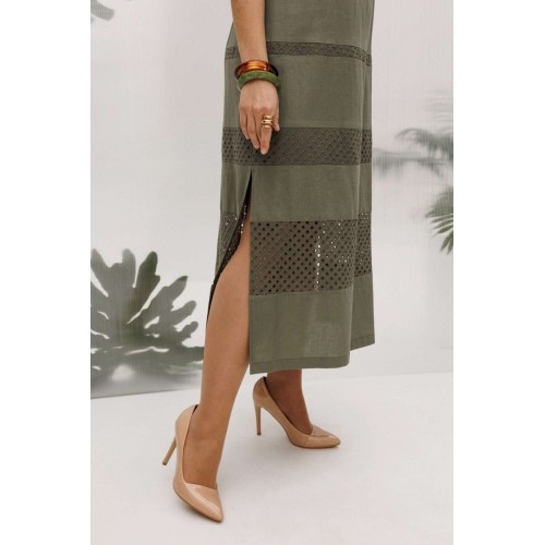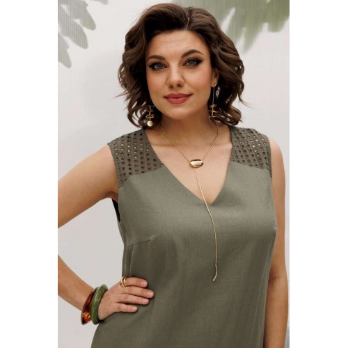 Платье 5667 Mira Fashion — идеальный выбор для летних дней. Коллекция бренда Mira Fashion предлагает легкое и воздушное платье из смеси льна и вискозы, обеспечивающее комфорт даже в жару. Натуральный материал и узор шитья подчеркивают изысканность V-образного выреза и свободного фасона. Кокетки, вытачки и разрезы по бокам делают это платье стильным и удобным для повседневной носки. Оливковый цвет и длина изделия 125 см добавляют универсальности, позволяя сочетать платье с различными аксессуарами для создания любого образа на каждый день или для отдыха.