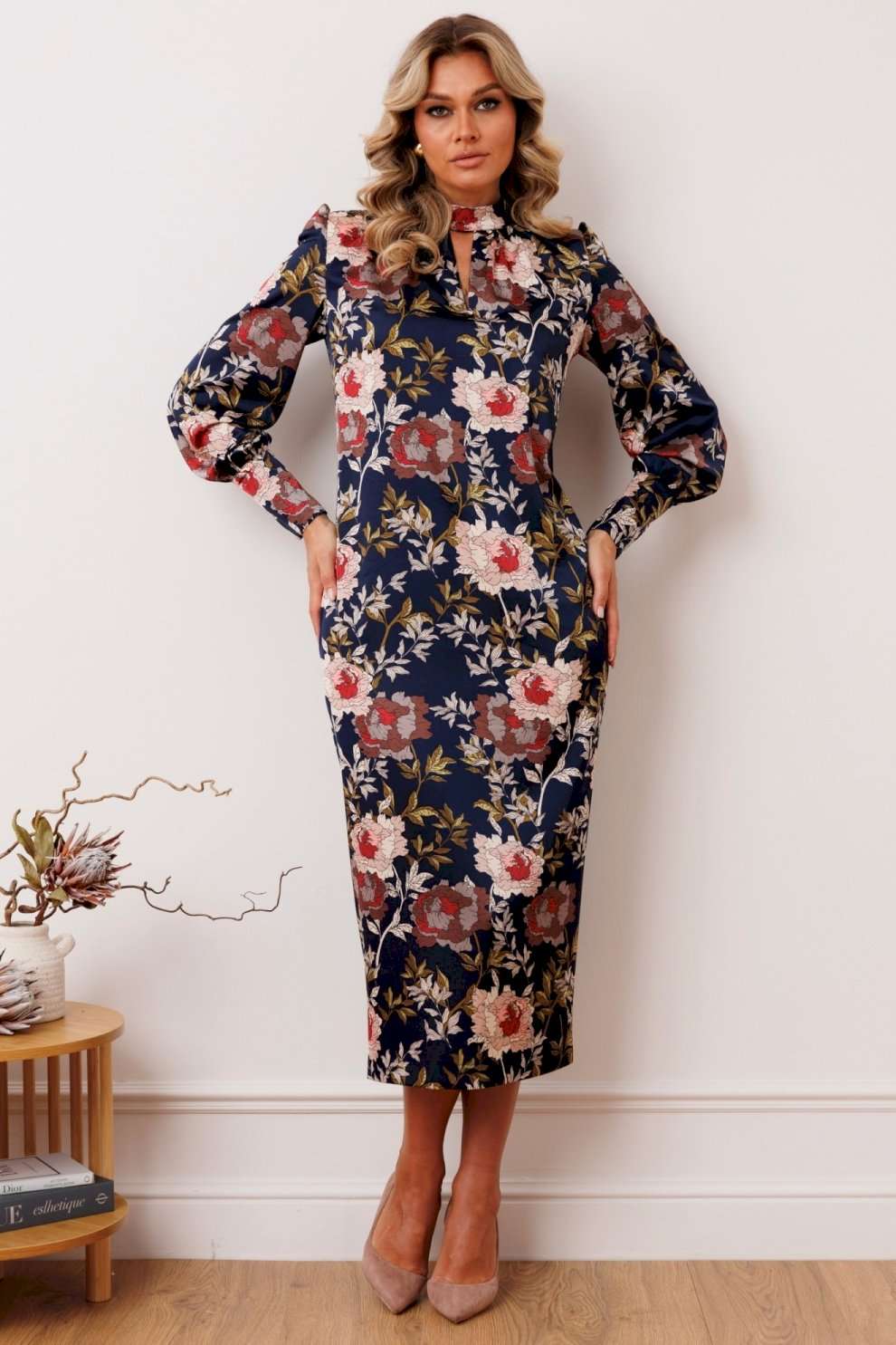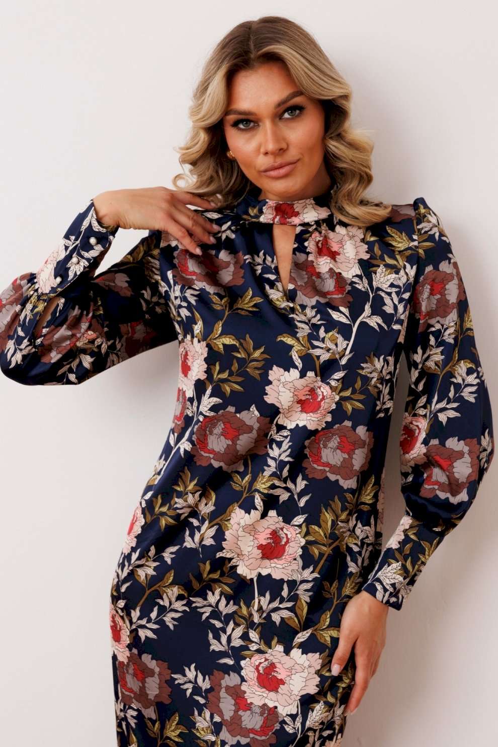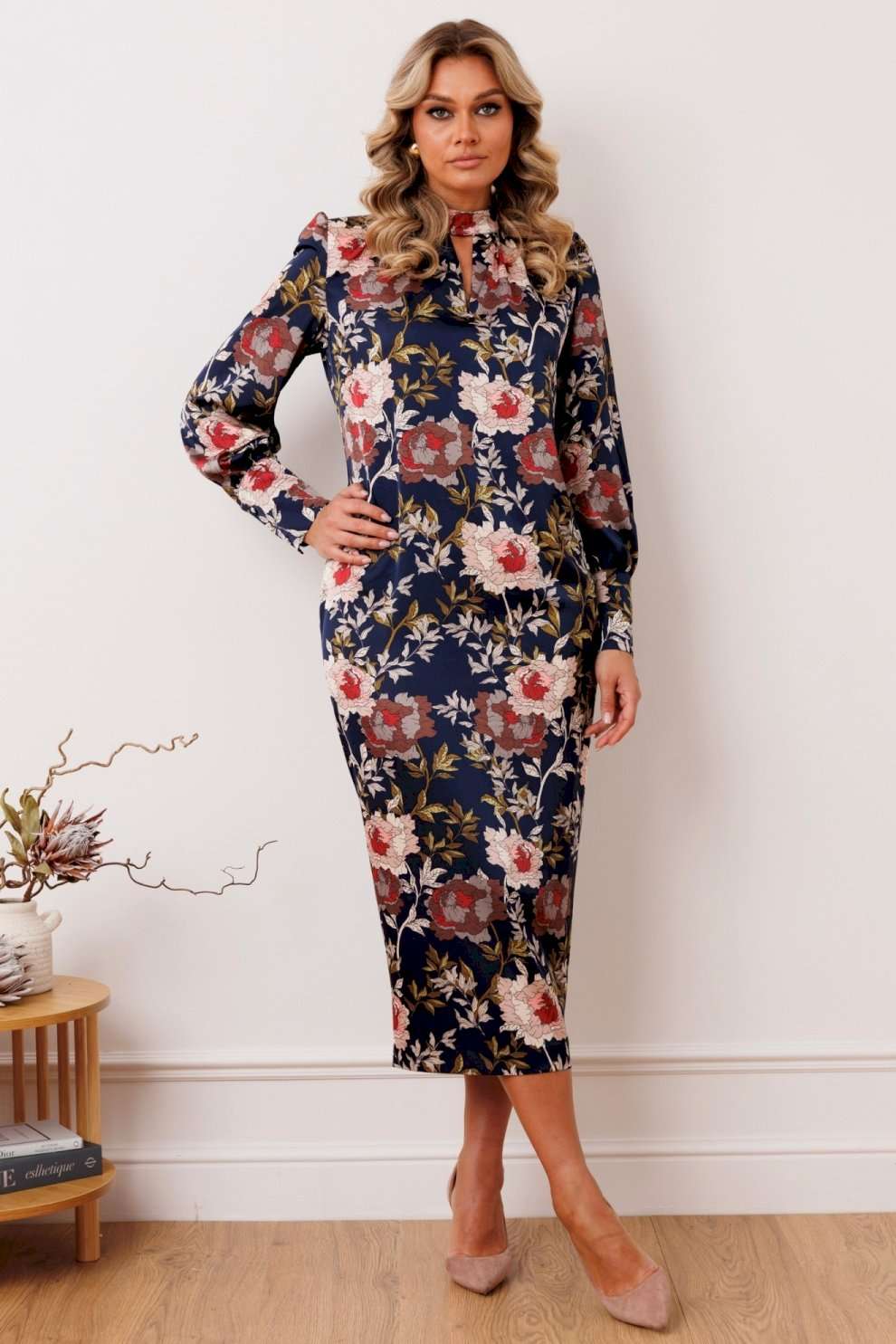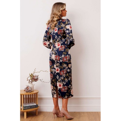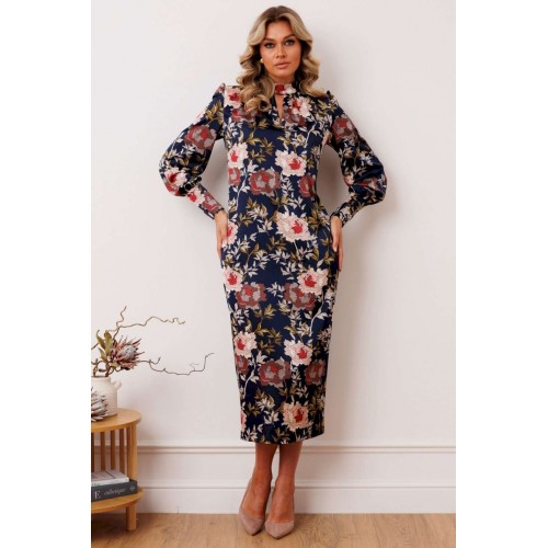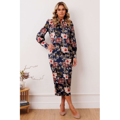 Платье 2915 темно-синий + цветы Мода-Юрс — изысканная модель, идеальная для особых случаев. Коллекция бренда Мода-Юрс предлагает полуприлегающий силуэт, который подчеркивает фигуру. Атласный материал с добавлением полиэстера и спандекса обеспечивает комфорт и легкий блеск. Воротник-стойка и декоративная сборка придают платью утонченность. Длинные рукава с манжетами и высокий разрез делают образ завершенным и стильным. Это платье, украшенное цветочным принтом, идеально подходит для вечерних выходов, свадеб и коктейльных мероприятий. Темно-синий цвет с цветами добавляет яркости и весеннего настроения. Длина по спинке составляет 126 см, а рукава — 62 см, что обеспечивает изящный вид и комфорт.