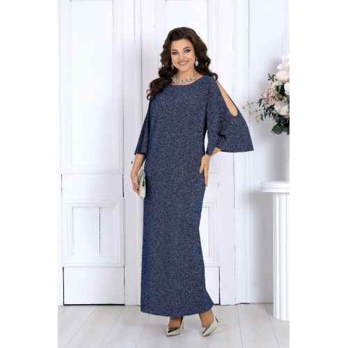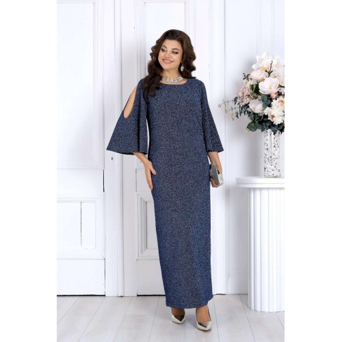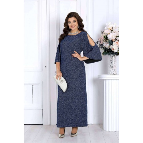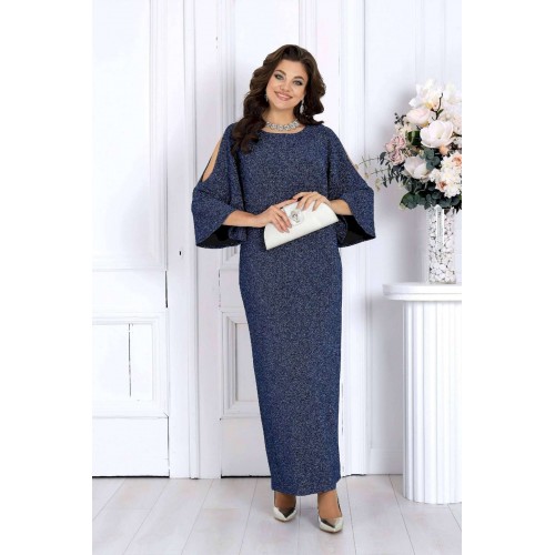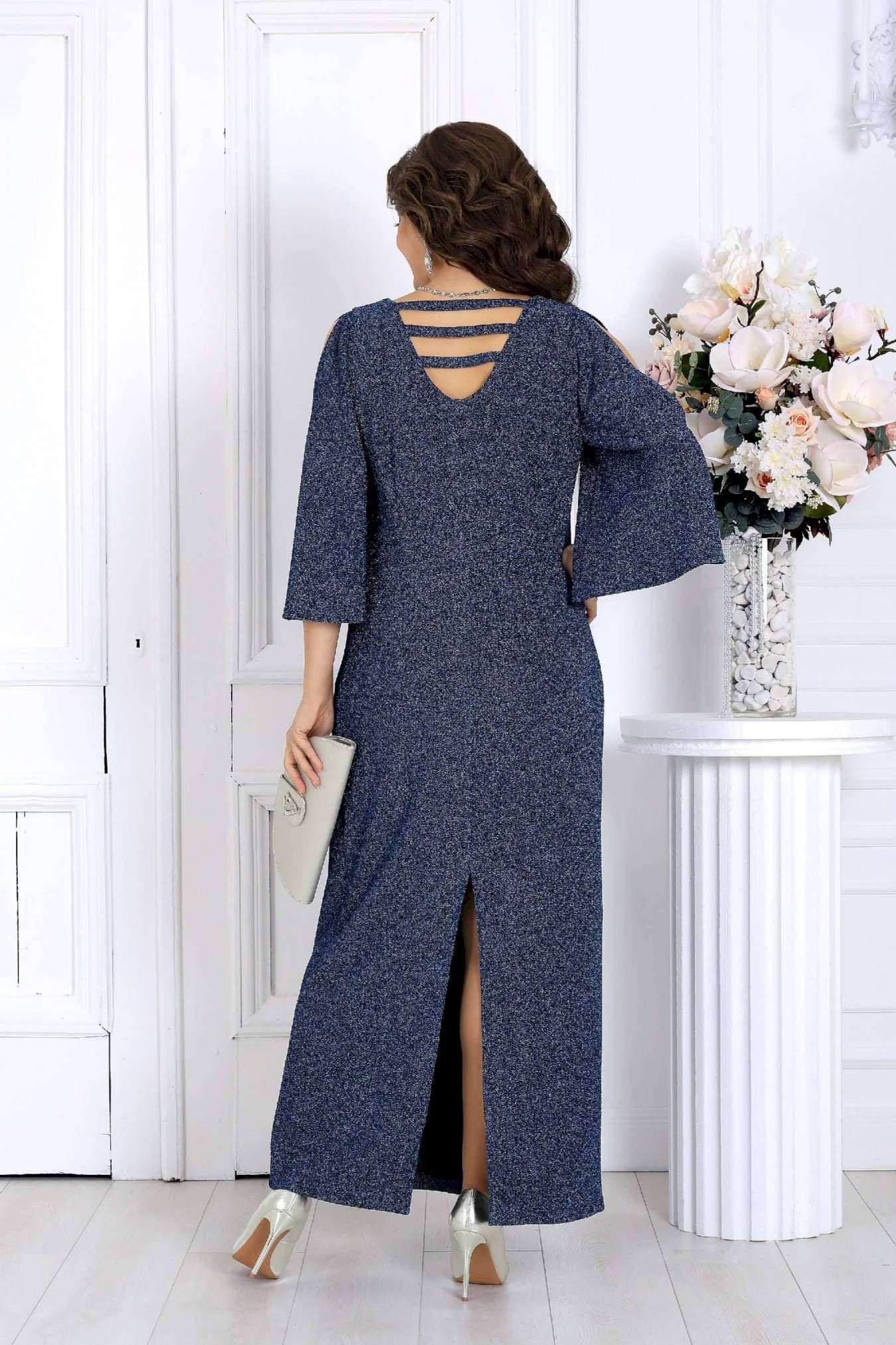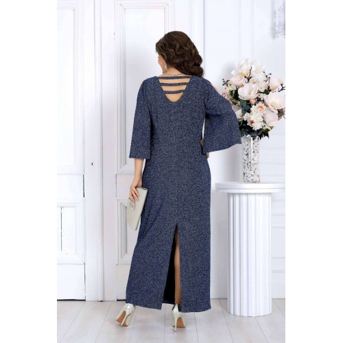 Это длинное вечернее платье из ткани с люрексом создано, чтобы подчеркнуть вашу женственность и уверенность. Блестящее трикотажное полотно мягко играет при каждом движении, не сковывая и красиво струясь по фигуре. Благодаря полуприлегающему силуэту и трикотажной подкладке, модель обеспечивает идеальную посадку на фигуре и комфорт на протяжении всего вечера. Рукава 3/4 с изящными разрезами «капля» открывают плечи, придавая образу лёгкость и торжественность. На спинке — эффектная деталь: V-образный вырез с декоративными перемычками, подчёркивающий линию плеч и добавляющий утончённости. Разрез сзади делает походку свободной и визуально вытягивает силуэт. Платье идеально подойдёт для любого особенного события — праздника, свадьбы, банкета, новогоднего вечера или торжества. Его можно дополнить элегантными аксессуарами и блестящими туфлями — и вы готовы блистать! Платье женское полуприлегающего силуэта, выполнено из трикотажного полотна с фактурной лицевой стороной «люрекс». Модель на трикотажной подкладке, без застежки и плечевых накладок. Перед платья с нагрудными вытачками, направленными от проймы. Спинка с талиевыми вытачками и разрезом в нижней части среднего шва. Края V-образной горловины спинки фиксируются тремя перемычками из основного материала; горловина переда круглой формы. Рукав трехчетвертной, расширенный, с вырезом «капля» от плеча. Длина платья -- 144 см; длина рукава - 49 см.
