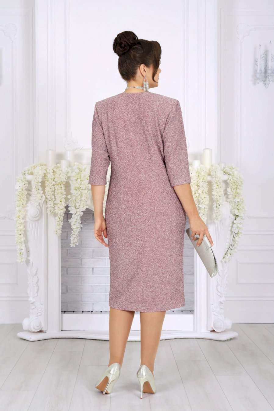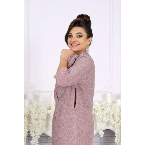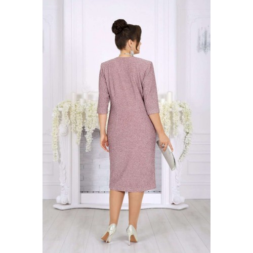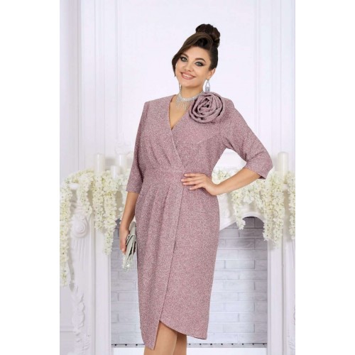 Когда хочется блистать — выбери платье, которое говорит само за себя. Модель из мерцающего трикотажа с люрексом создана для того, чтобы быть в центре внимания. Асимметричный крой, элегантный запах и акцентный цветок на плече — каждая деталь работает на эффектный образ. Это не просто платье — это ваше настроение, ваша уверенность, ваша женственность. Это платье не требует дополнительных украшений — оно уже само как украшение. Просто надень его, добавь любимые туфли, возьми клатч — и будь готова ловить восхищённые взгляды. Платье женское полуприлегающего силуэта, выполнено из трикотажного полотна с фактурной лицевой стороной «люрекс». Модель на трикотажной подкладке, с плечевыми накладками. На правой части переда, вдоль отрезного пояса, заложены косые односторонние складки; детали лифа и юбки скреплены на запах. Низ платья асимметричный: правая часть переда удлинена к центру и оформлена углом, левая -- скругленная и входит в правый боковой шов. На спинке обработаны талиевые вытачки. В левом боковом шве предусмотрена застежка на потайную тесьму-«молнию» (35 см). Рукав длиной 3/4, втачной. Платье дополнено съемным «цветком» из основного полотна. Длина платья-108 см; длина рукава-41 см.