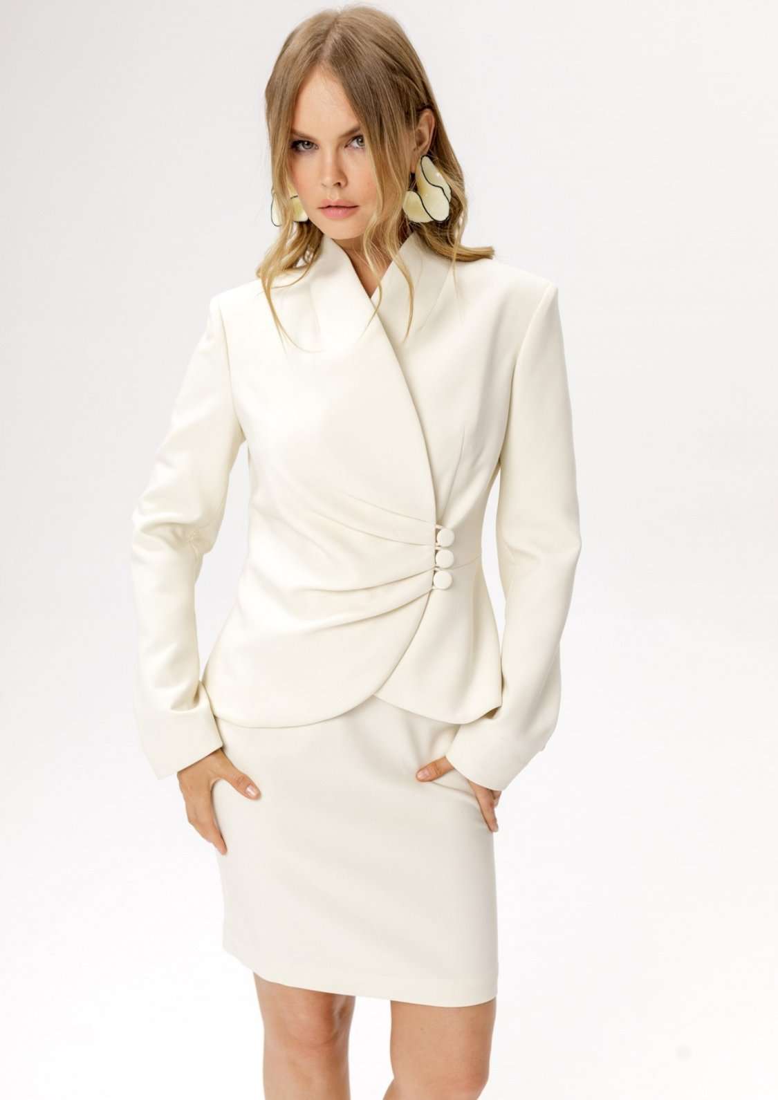 Прямая мини-юбка из текстильного материала (приобрести жакет с фото можно по арт. 6602, приобрести брюки с фото можно по арт. 6343). Детали: прямой силуэт, пояс юбки на обтачке, талиевые вытачки по переднему и заднему полотнищу, потайная молния в среднем шве спинки. Длина изделия по боковому шву около 55 см в размерах 40-46, около 57 см в размерах 48-52. (приобрести жакет с фото можно по арт. 6602, приобрести брюки с фото можно по арт. 6343)