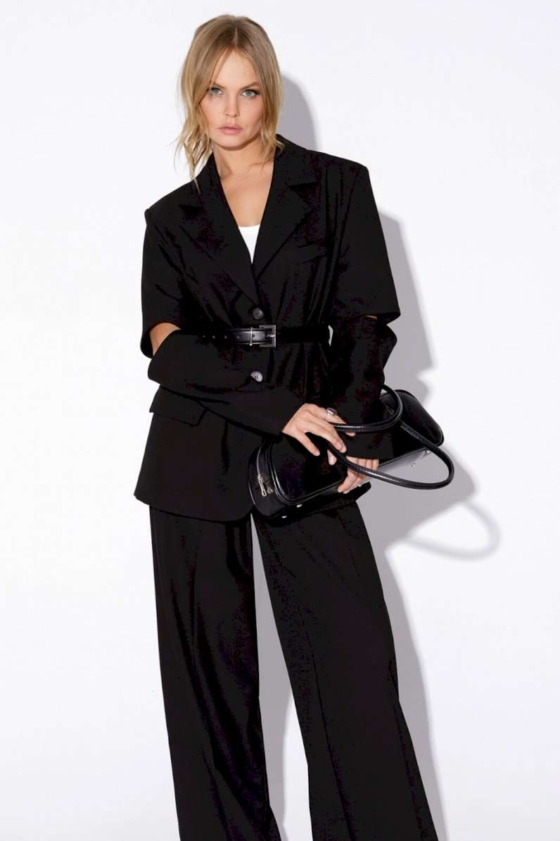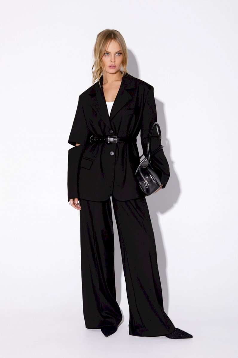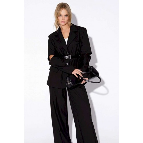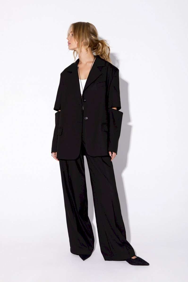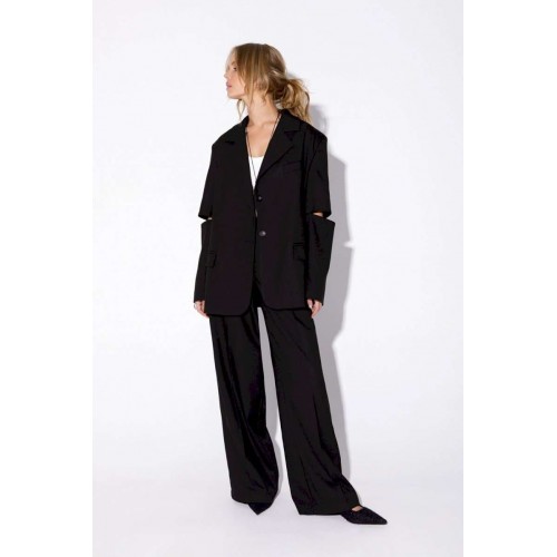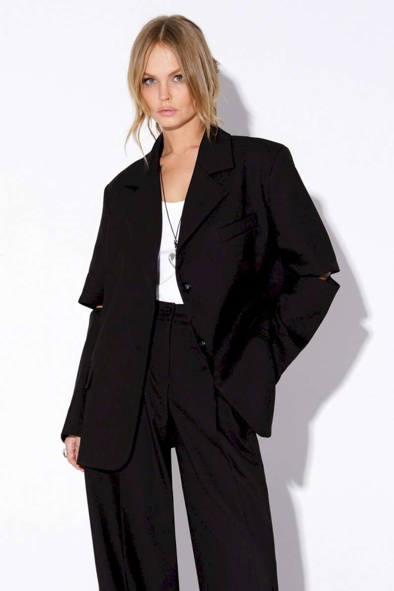 Оверсайз жакет с разрезами по рукавам. Детали: жакет свободного покроя, прямой силуэт, застежка на петли и пуговицы, функциональные карманы, жакет на подкладке. Длина по спинке около 71 см в размерах 40-48 и около 73 см в размерах 50-52, длина рукава около 61 см..