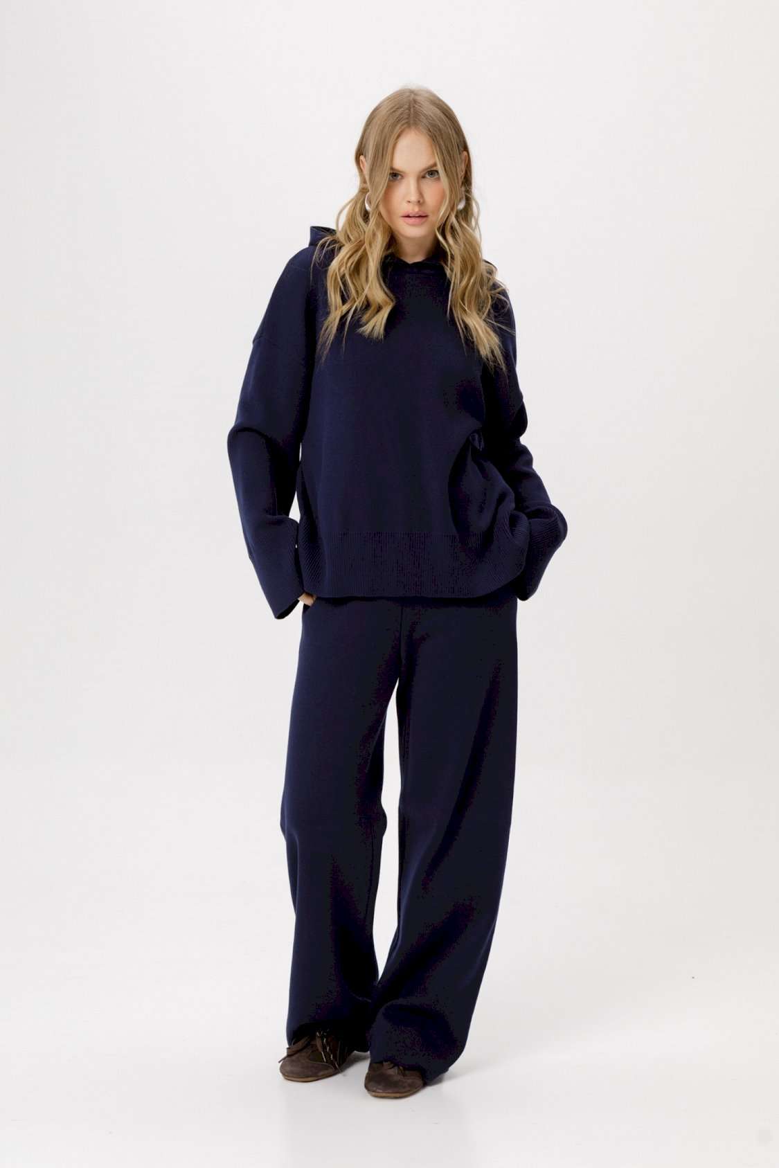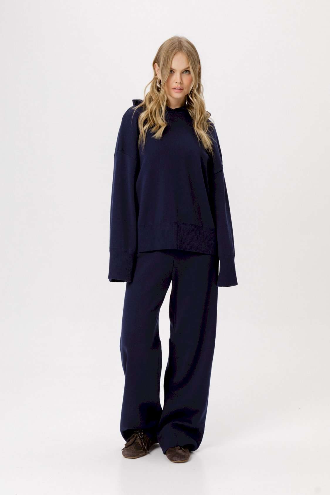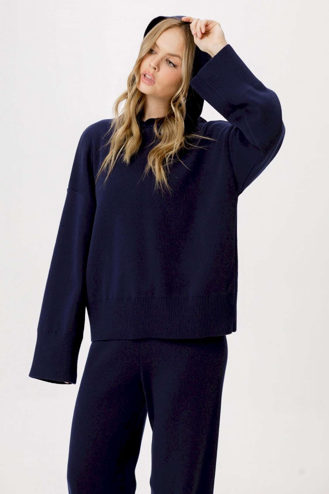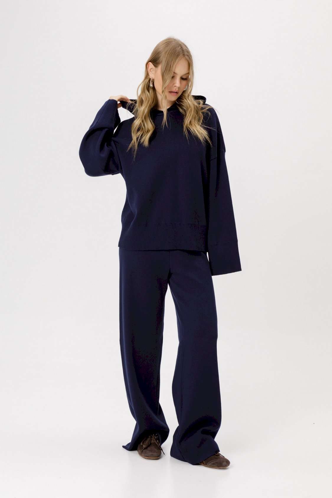Вязаное свободное худи из хлопковой пряжи