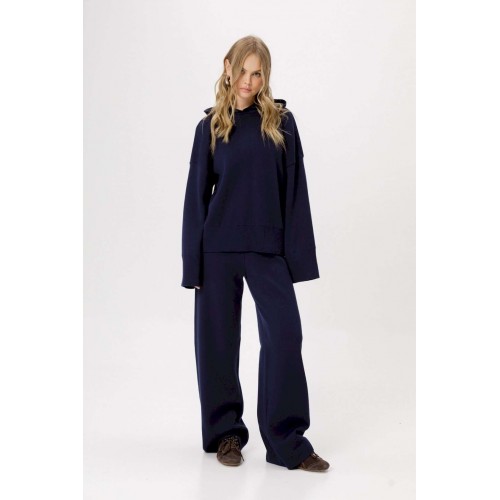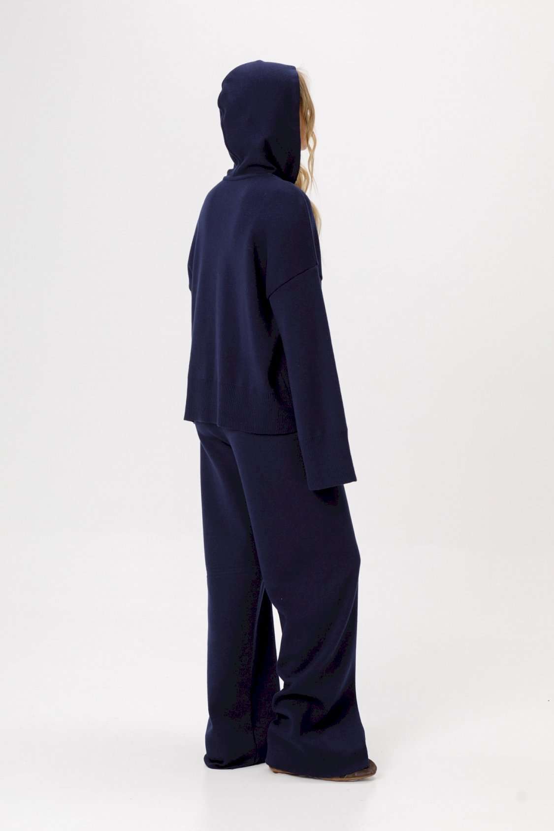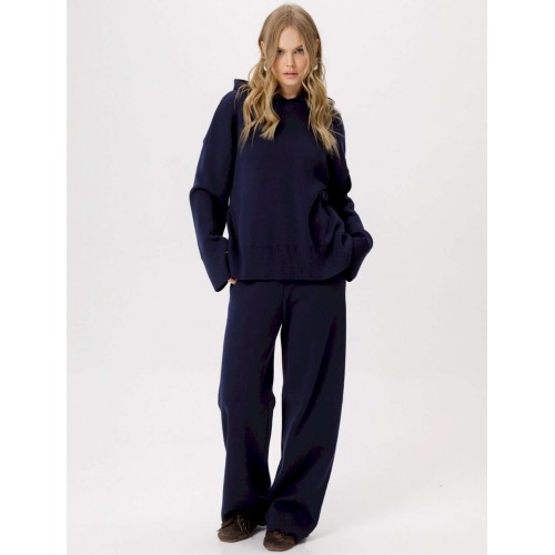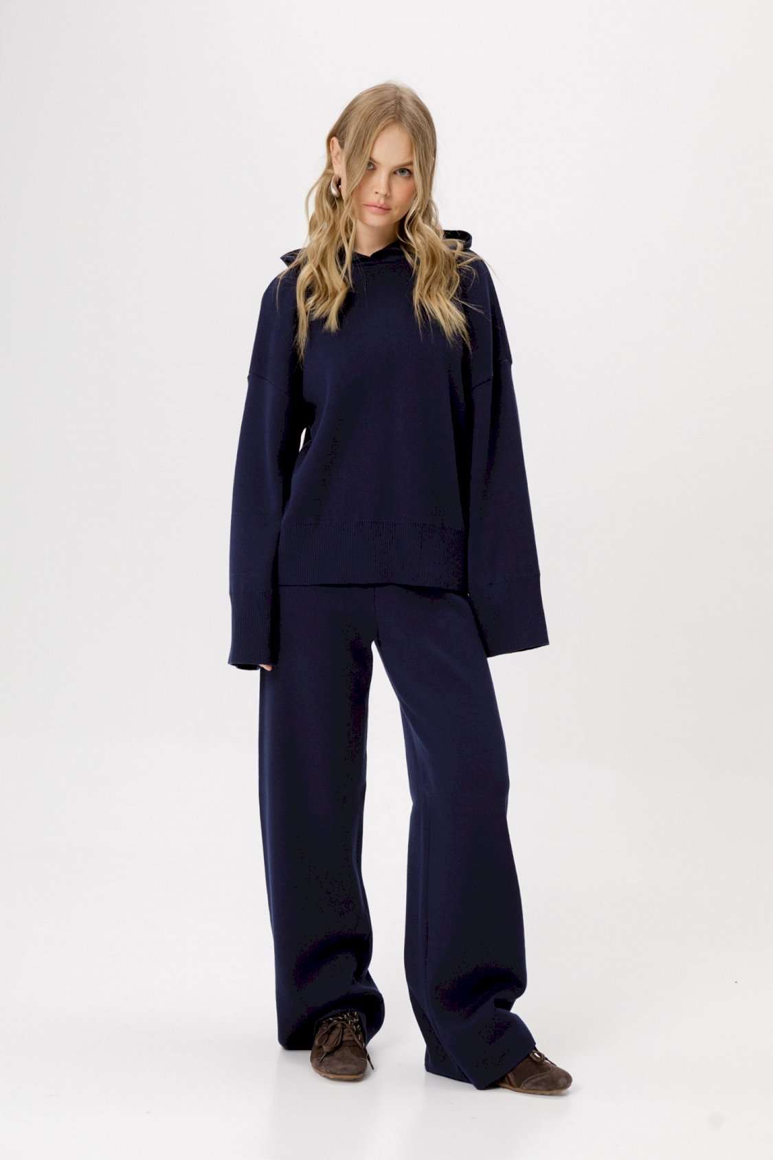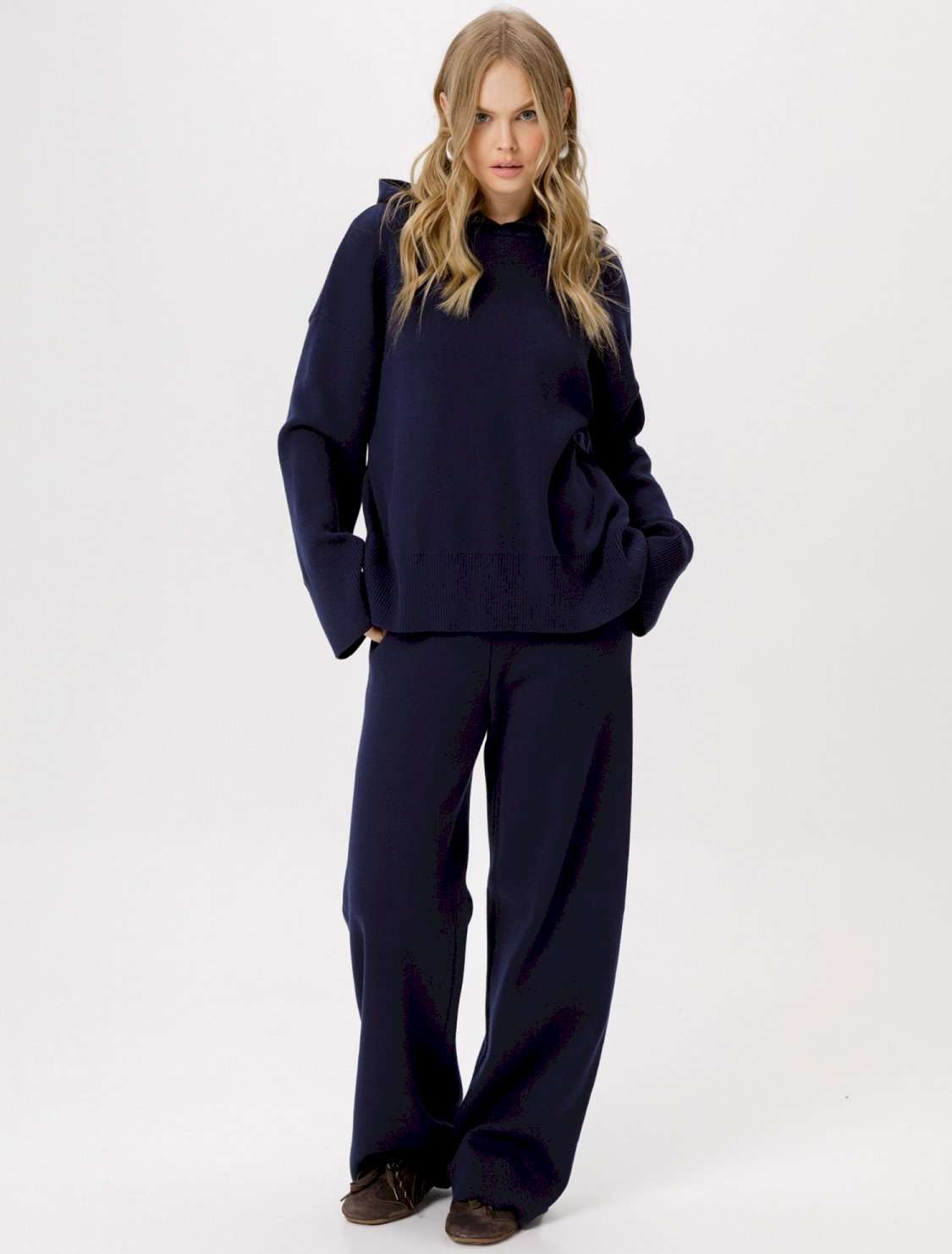 Вязаные прямые широкие брюки из хлопковой пряжи. Детали: высокая посадка, пояс с резинкой, без карманов