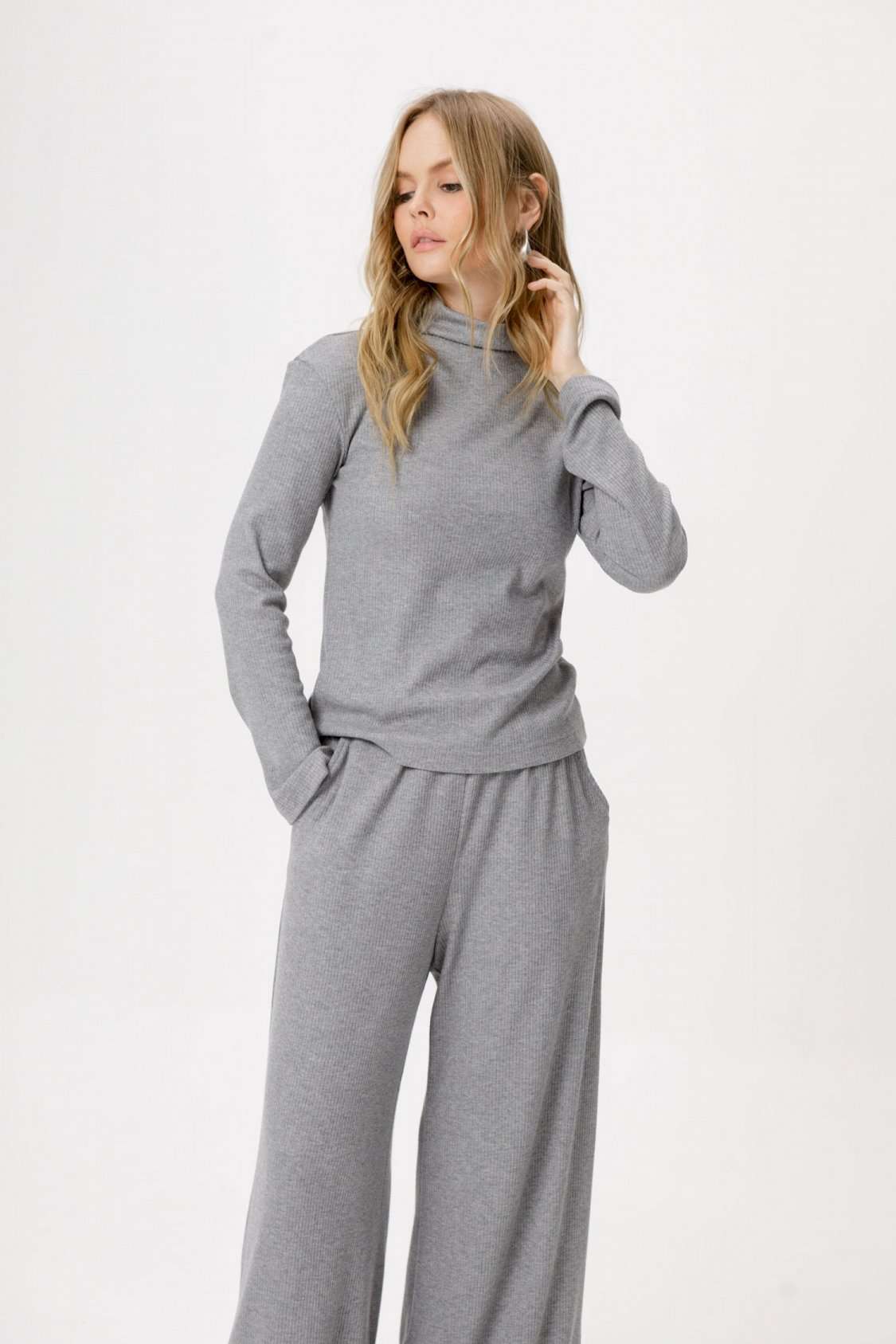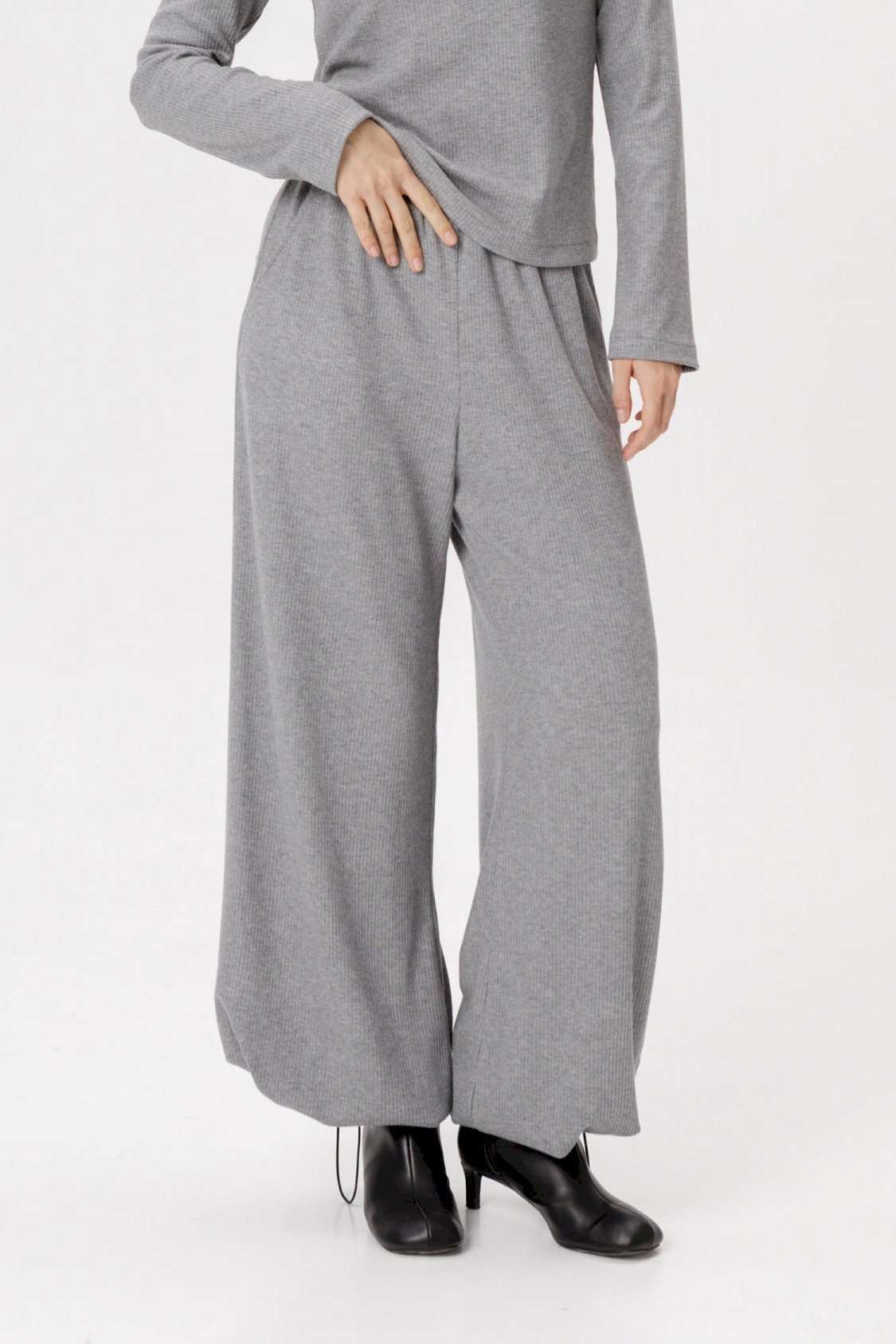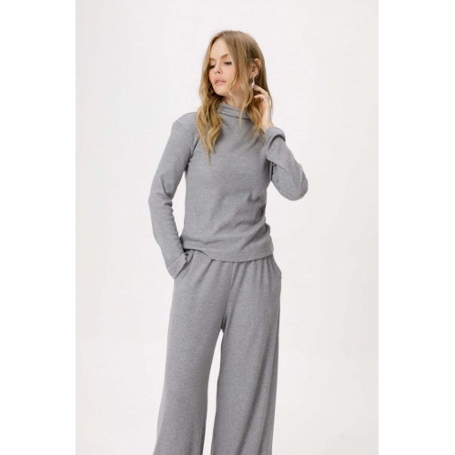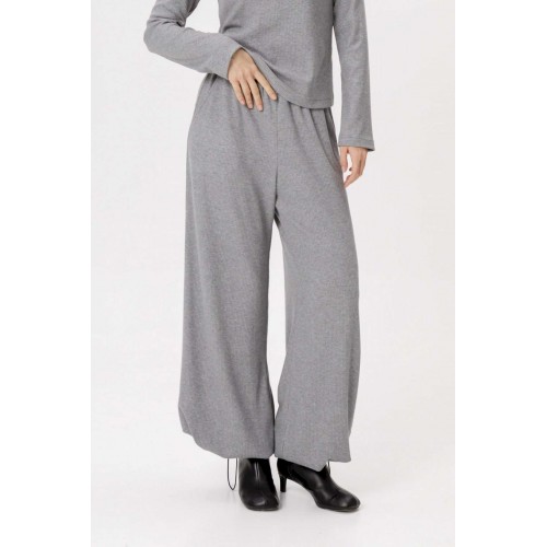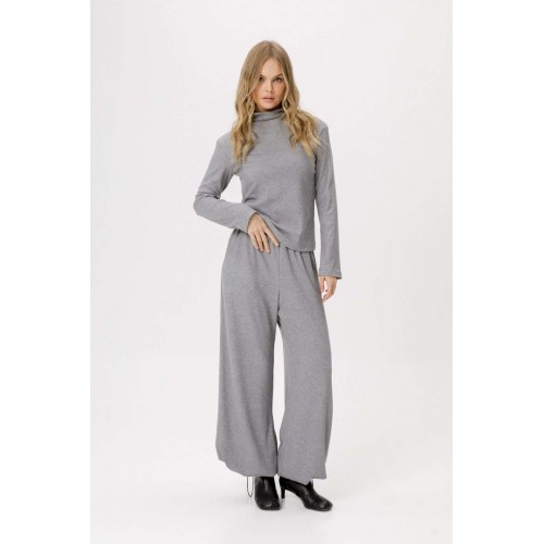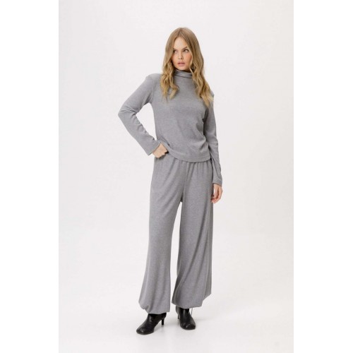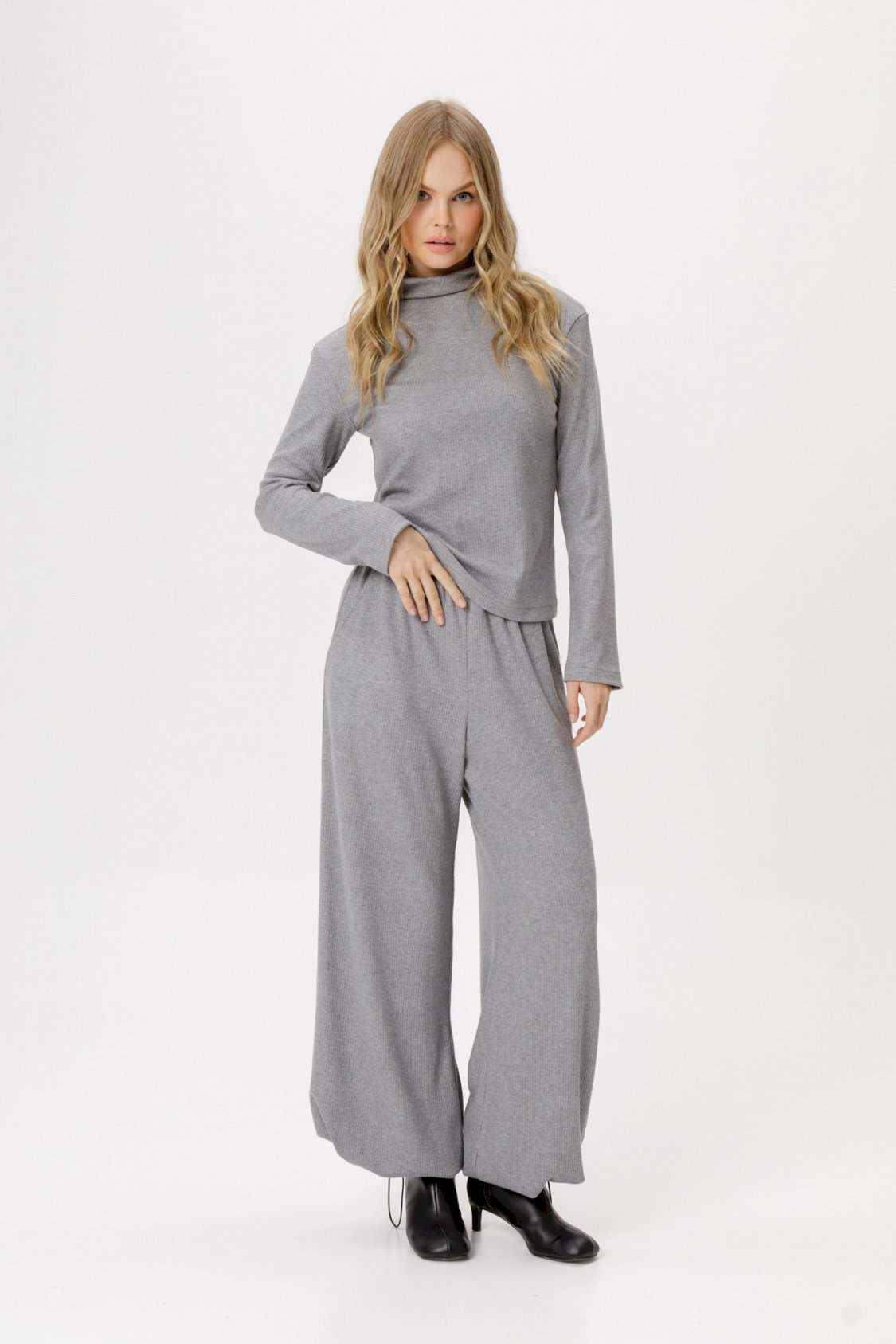 Трикотажные широкие брюки из трикотажа-лапша. Детали: брюки с высокой посадкой, эластичный пояс с резинкой, боковые карманы. Длина брюк с поясом около 105 см