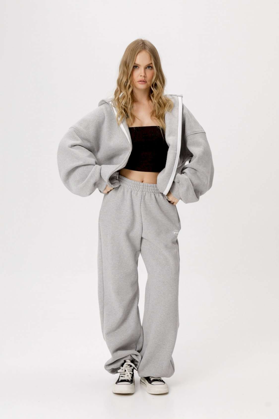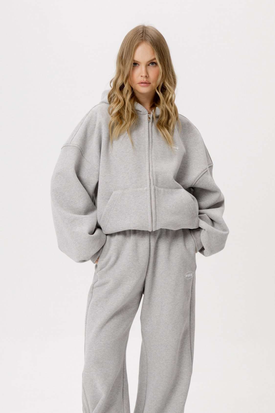 Оверсайз зип-худи из трехнитки с начесом. Детали: зип-худи на молнии с большим накладным карманом по переду и регулировкой по низу. По переду нанесен небольшой фирменный логотип. Длина по спинке около 62 см. Длина рукава со спущенным плечом около 54+15 см