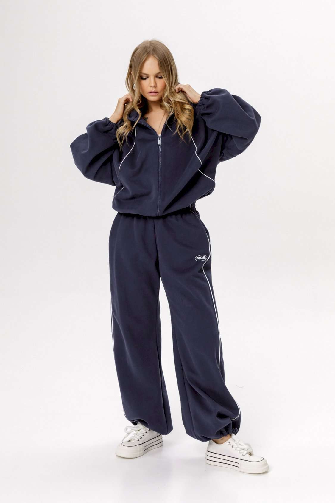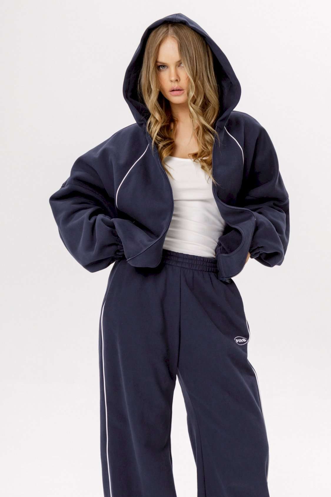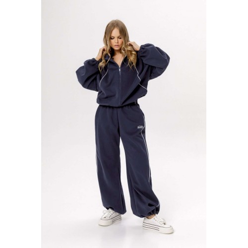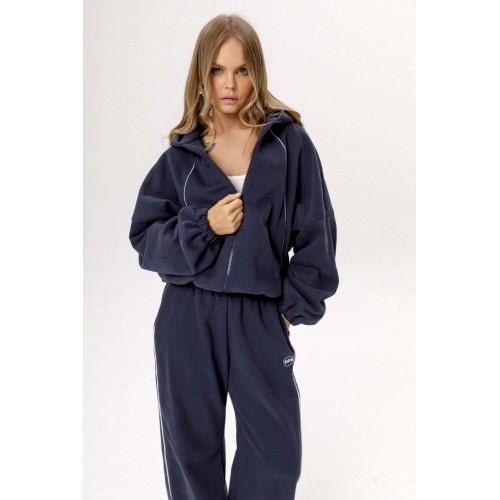 Хлопковый оверсайз зип-худи с ширкими рукавами и контрастным кантом (приобрести брюки с фото можно по арт. 6533). Детали: зип-худи на молнии, свободный покрой с цельнокроеными рукавами, регулировка по низу.