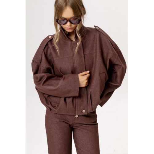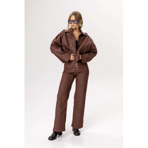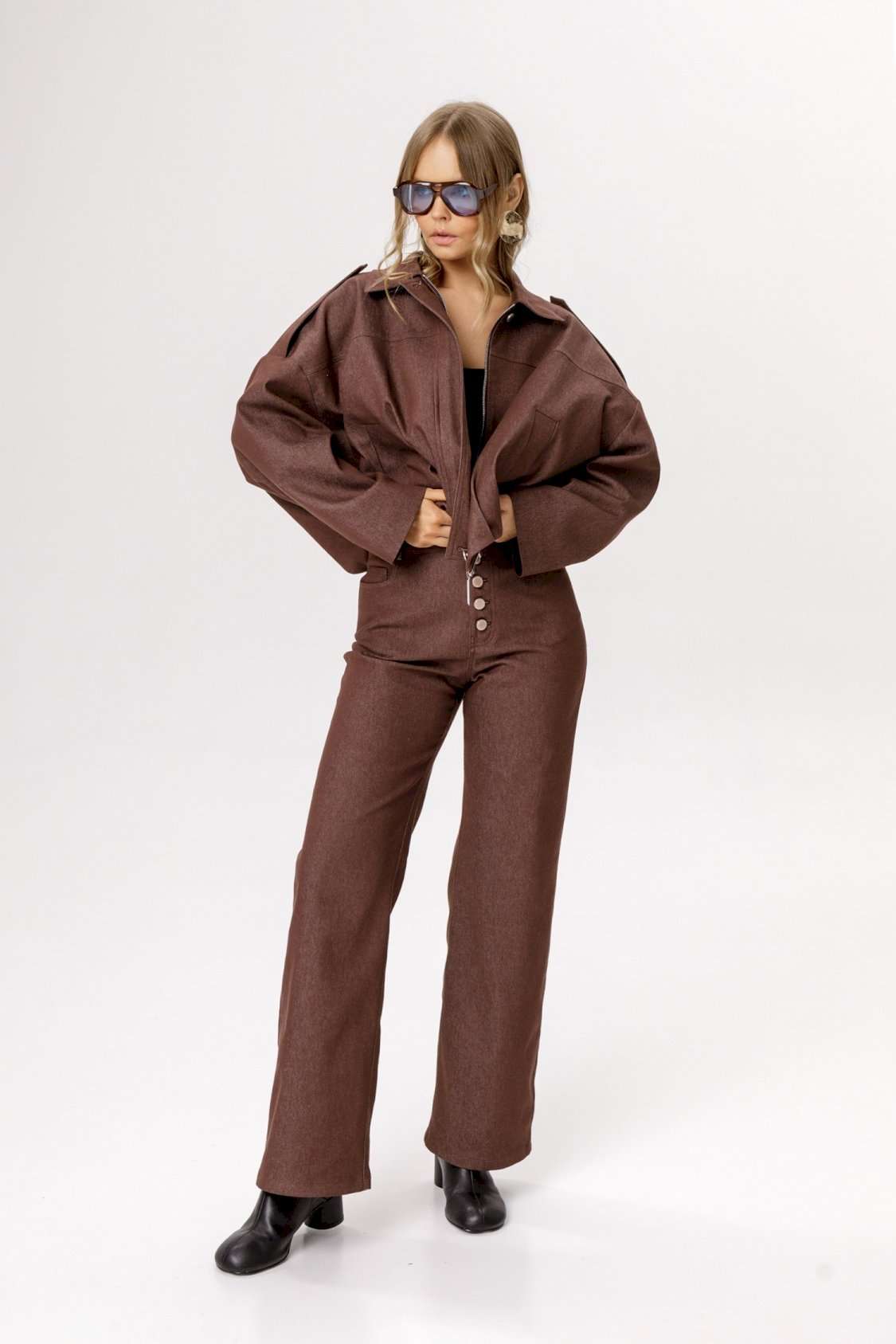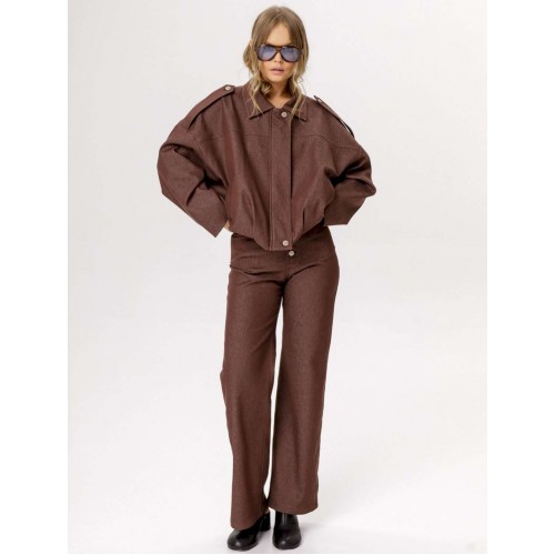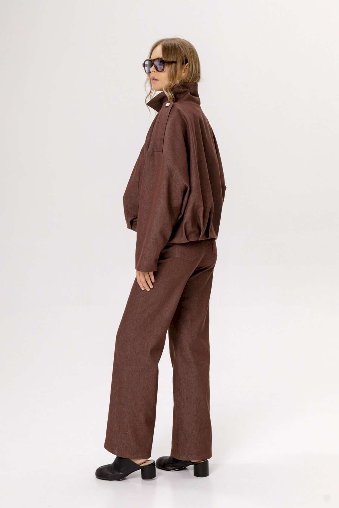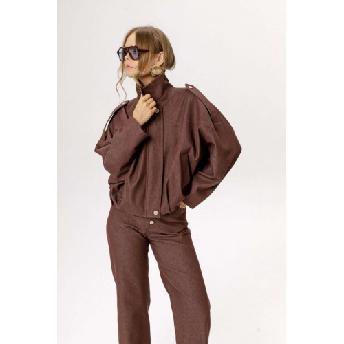 Оверсайз бомбер из хлопкового джинса (приобрести брюки с фото можно по арт. 6576). Детали: бомбер О-силуэта, свободный покрой и расширеные плечи, перед с кокеткой, стояче-отложной воротник, застёжка на молнию и металлические пуговицы, функциональные карманы, погоны, бомбер на подкладке. Длина по спинке около 54 см в размерах 40-46, около 59 см в 48-52, длина рукава с плечом около 73 см. Длина брюк по боковому шву с поясом около 104 см в размерах 40-46, около 105,5 см в 48-52, длина по внутреннему шву около 75 см (приобрести брюки с фото можно по арт. 6576)