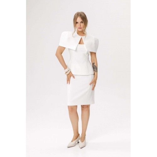 Прямая юбка выше колена с рельефами и разрезом (приобрести топ с фото можно по арт. 6643, приобрести кейп с фото можно по арт. 6640). Детали: прямой силуэт, талиевые вытачки переда и спинки, двойные рельефные швы, застежка в среднем шве спинки, шлица, на подкладке. Длина около 55,5 см в размерах 40-46, около 56,5 см в размерах 48-52.