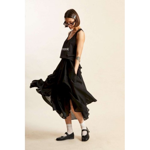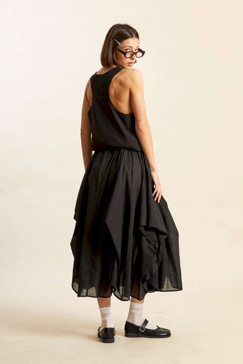 Юбка: - расклешённый силуэт; - пояс на резинке; - спереди и сзади средние швы и рельефы; - по рельефам расклешение и защипы; - линия низа фигурная; - в боковых швах карманы; - на подкладке.