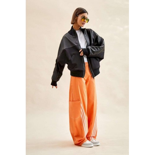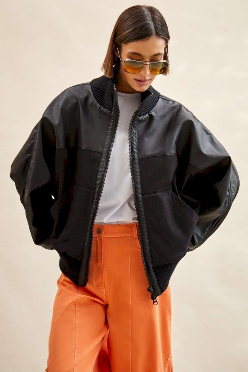 Куртка-бомбер: - О-силуэт; - на подкладке из флиса; - цельнокроеные рукава; - сзади с спереди кокетка из экокожи; - застежка спереди на молнию; - вставка по плечу со шнурами; - спереди накладные утепленные карманы; - воротник стойка из трикотажа; - по низу куртки и рукавов трикотажные манжеты в рубчик; - на спинке аппликация с логотипом.