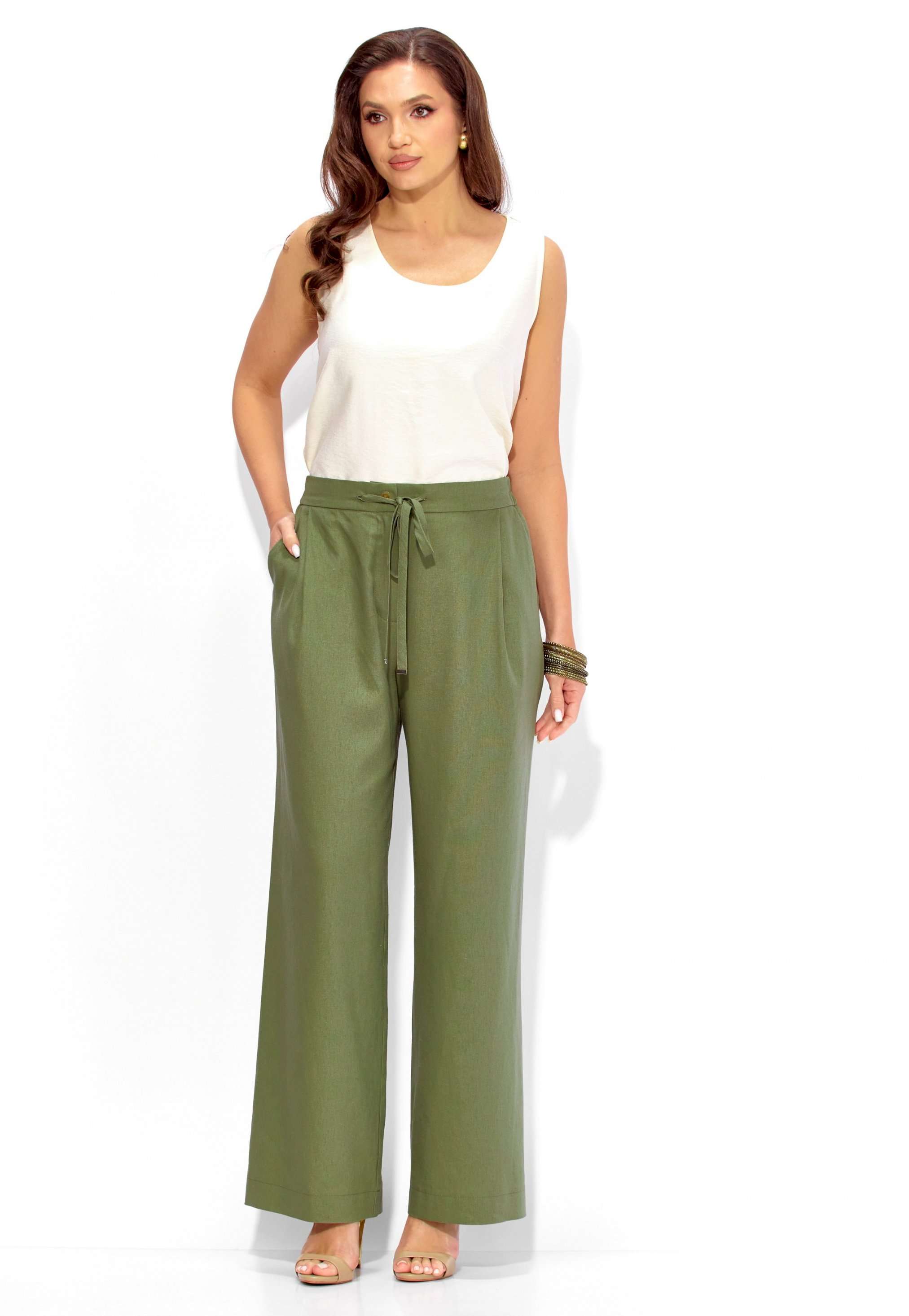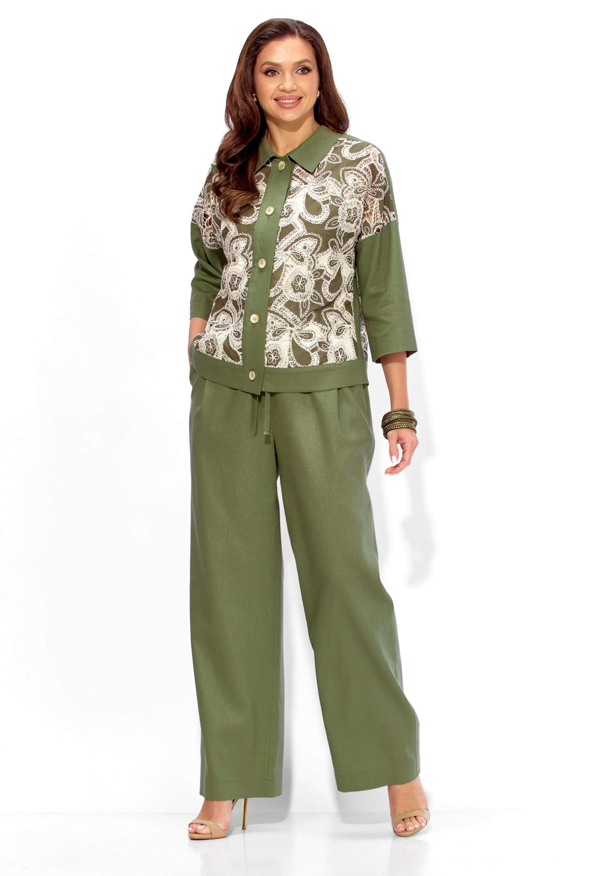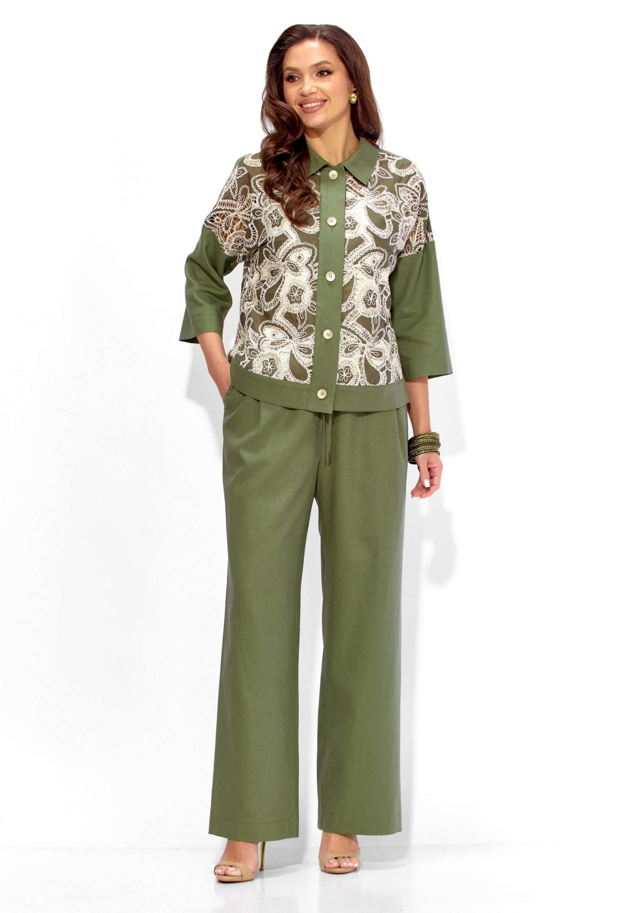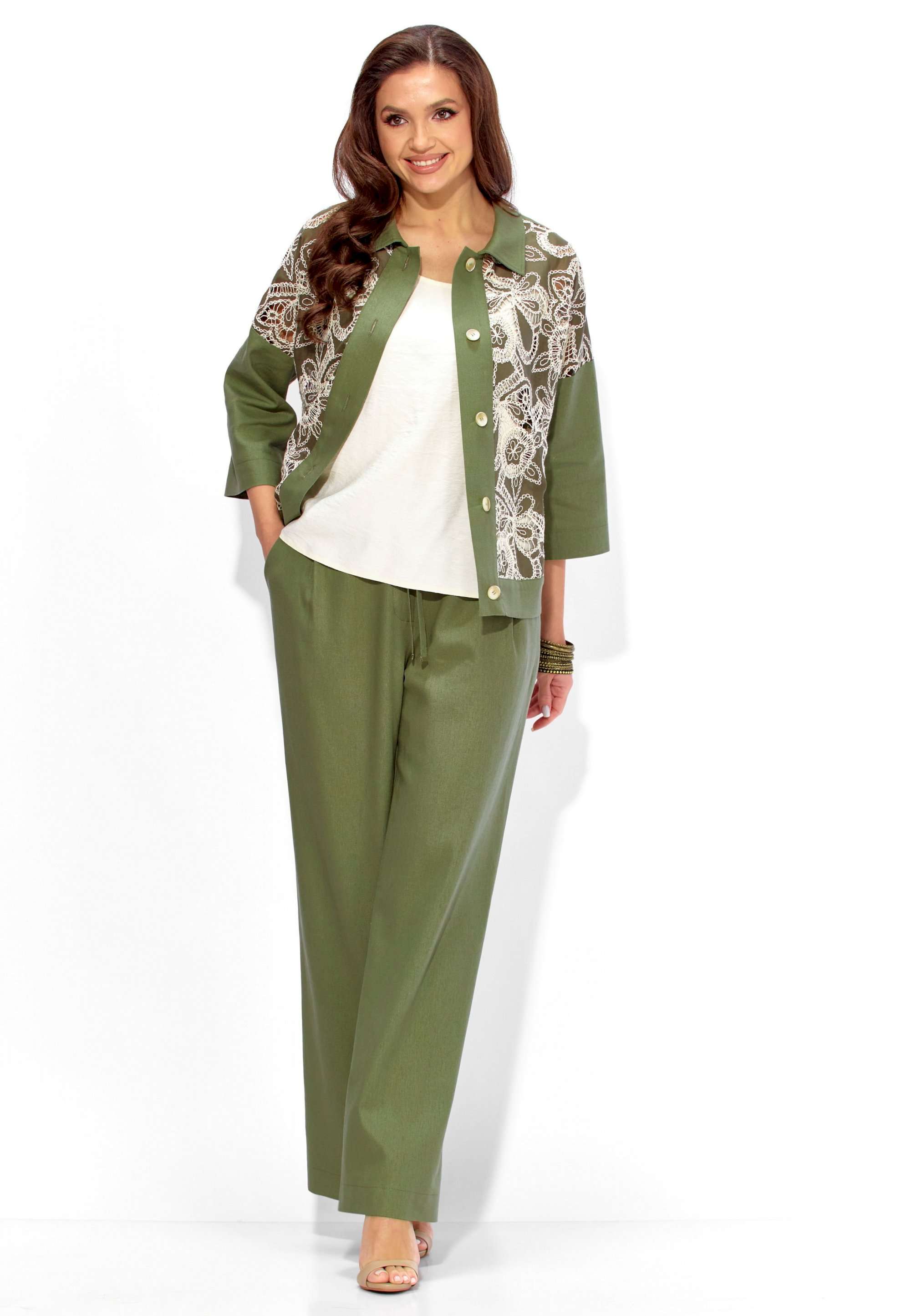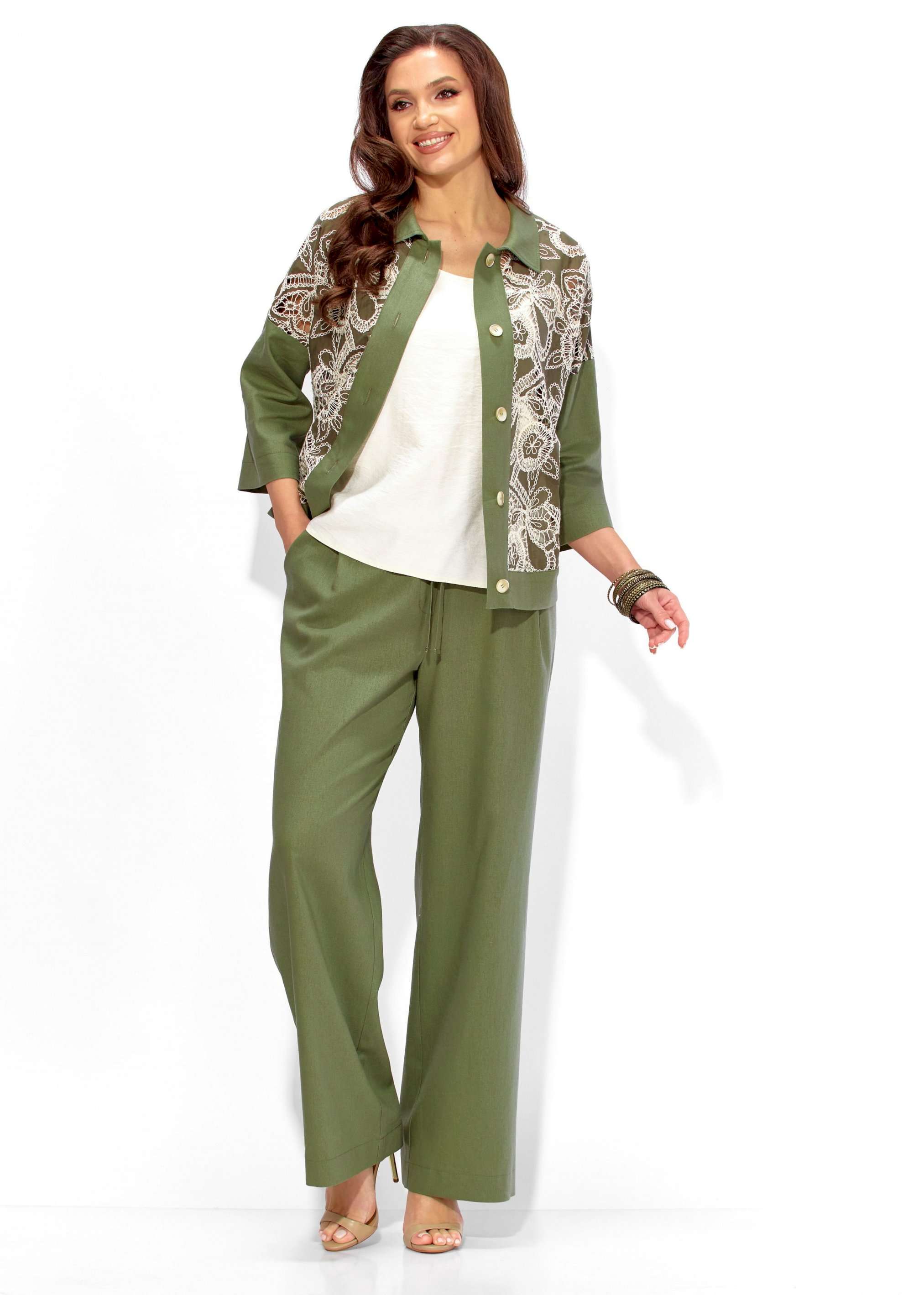 Состав: Жакет: хлопок 100%. Брюки: лен 70%, вискоза 30%. Топ: вискоза 75%, полиэстер 25%