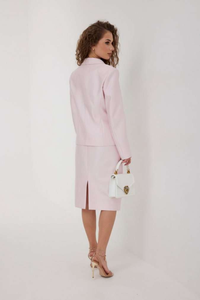 Юбка из костюмно-плательной ткани, зауженная к низу, ниже колена. Пояс цельнокроеный, по переду боковые карманы, застежка по центру заднего полотнища на потайную молнию, по низу разрез. Юбка на подкладке. Длина 68 см. Измерения по готовому изделию: 44 р-р: ОТ - 74 см., ОБ - 98 см. 46 р-р: ОТ - 78 см., ОБ - 102 см. 48 р-р: ОТ - 82 см., ОБ - 104 см. 50 р-р: ОТ - 86 см., ОБ - 108 см. 52 р-р: ОТ - 90 см., ОБ - 112 см.