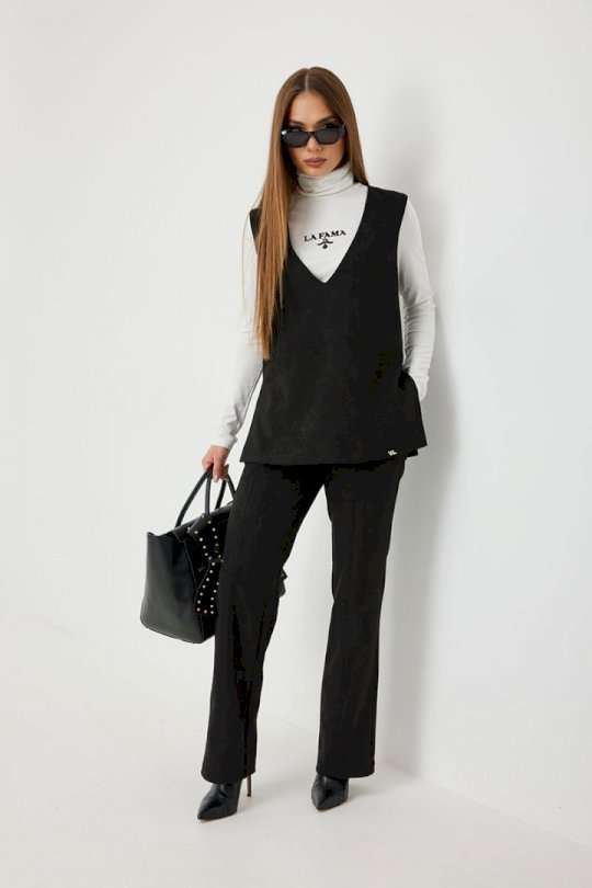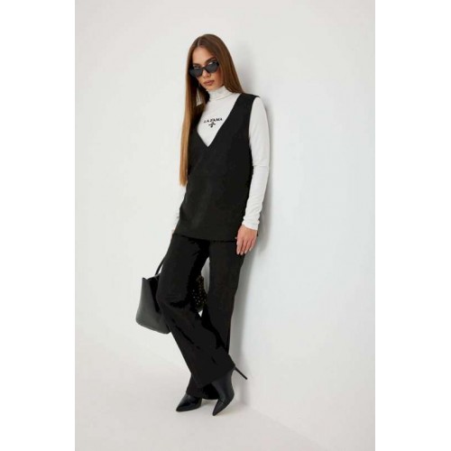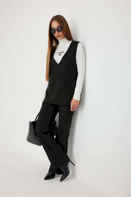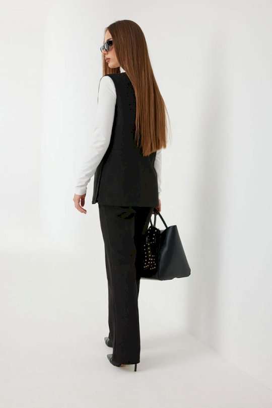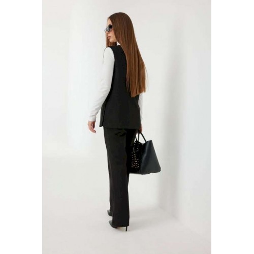 Жилет женский из ткани «под замшу» прямого силуэта на подкладке, вырез горловины глубокий V-образный, по боковым швам разрезы, по переду и спинке горизонтальные декоративные швы. Длина изделия 69 см. 44 р-р: ОГ - 100 см., ОТ - 103 см., ОБ - 108 см. 46 р-р: ОГ - 104 см., ОТ - 107 см., ОБ - 112 см. 48 р-р: ОГ - 108 см., ОТ - 111 см., ОБ - 116 см. 50 р-р: ОГ - 112 см., ОТ - 115 см., ОБ - 120 см. 52 р-р: ОГ - 116 см., ОТ - 119 см., ОБ - 124 см.